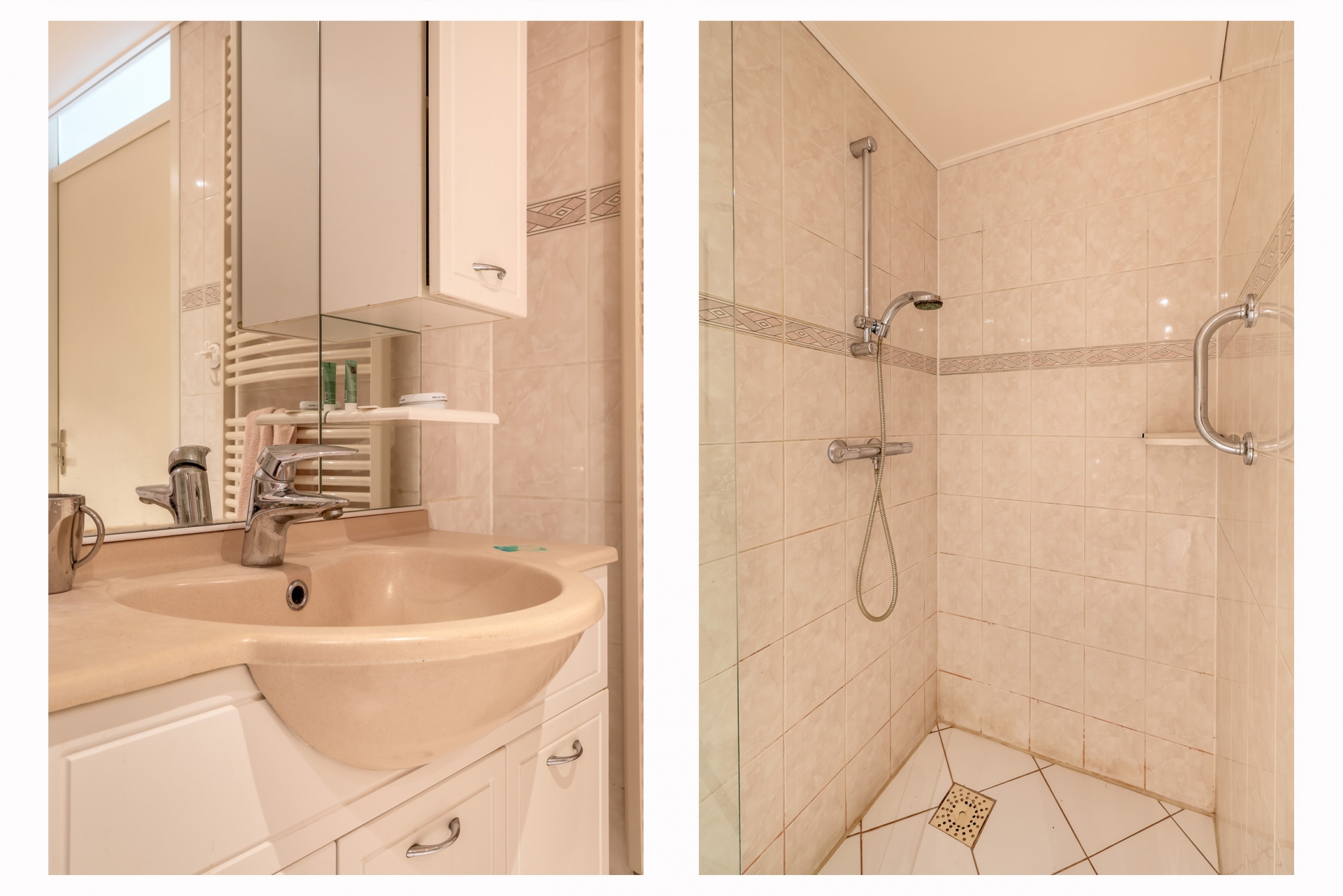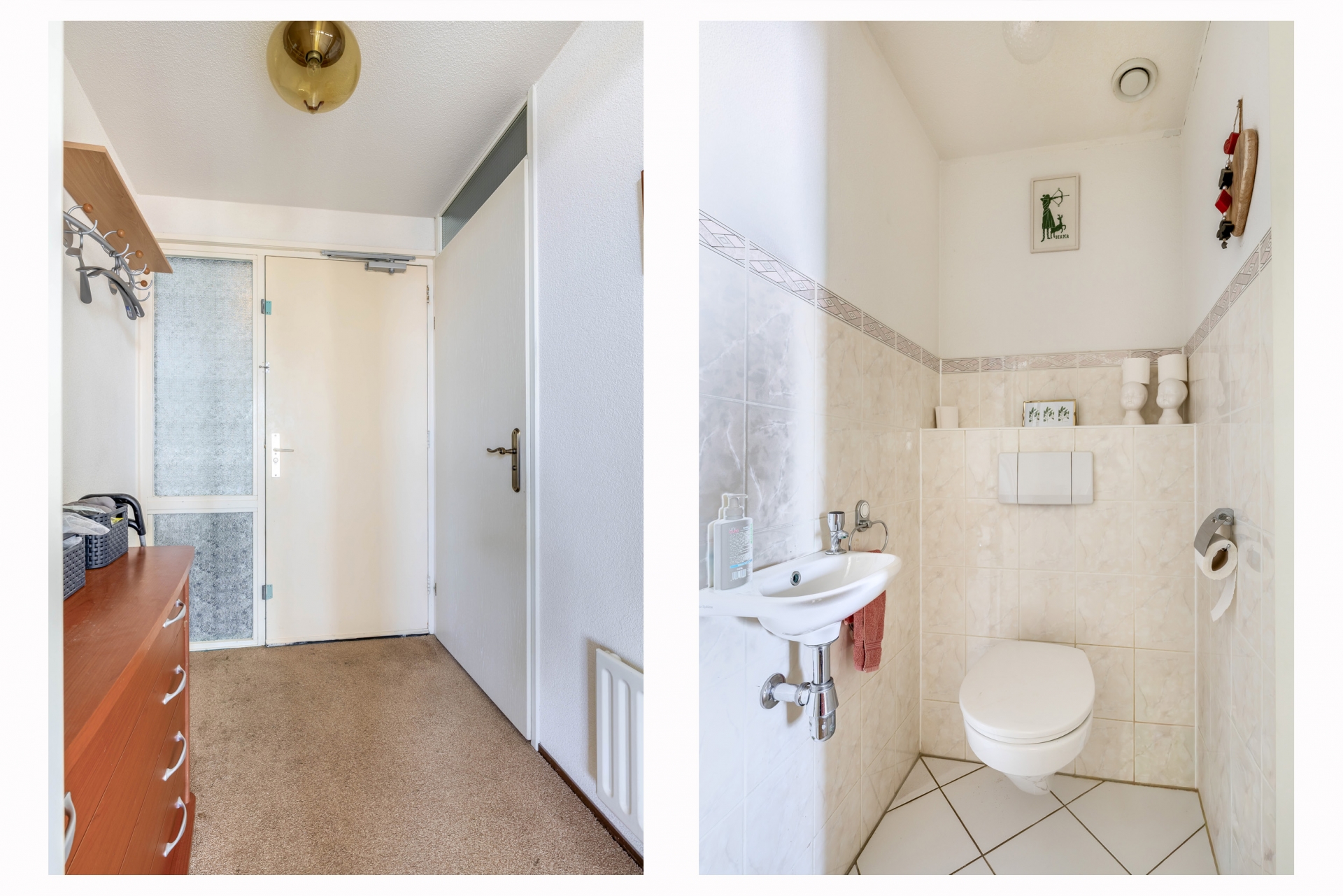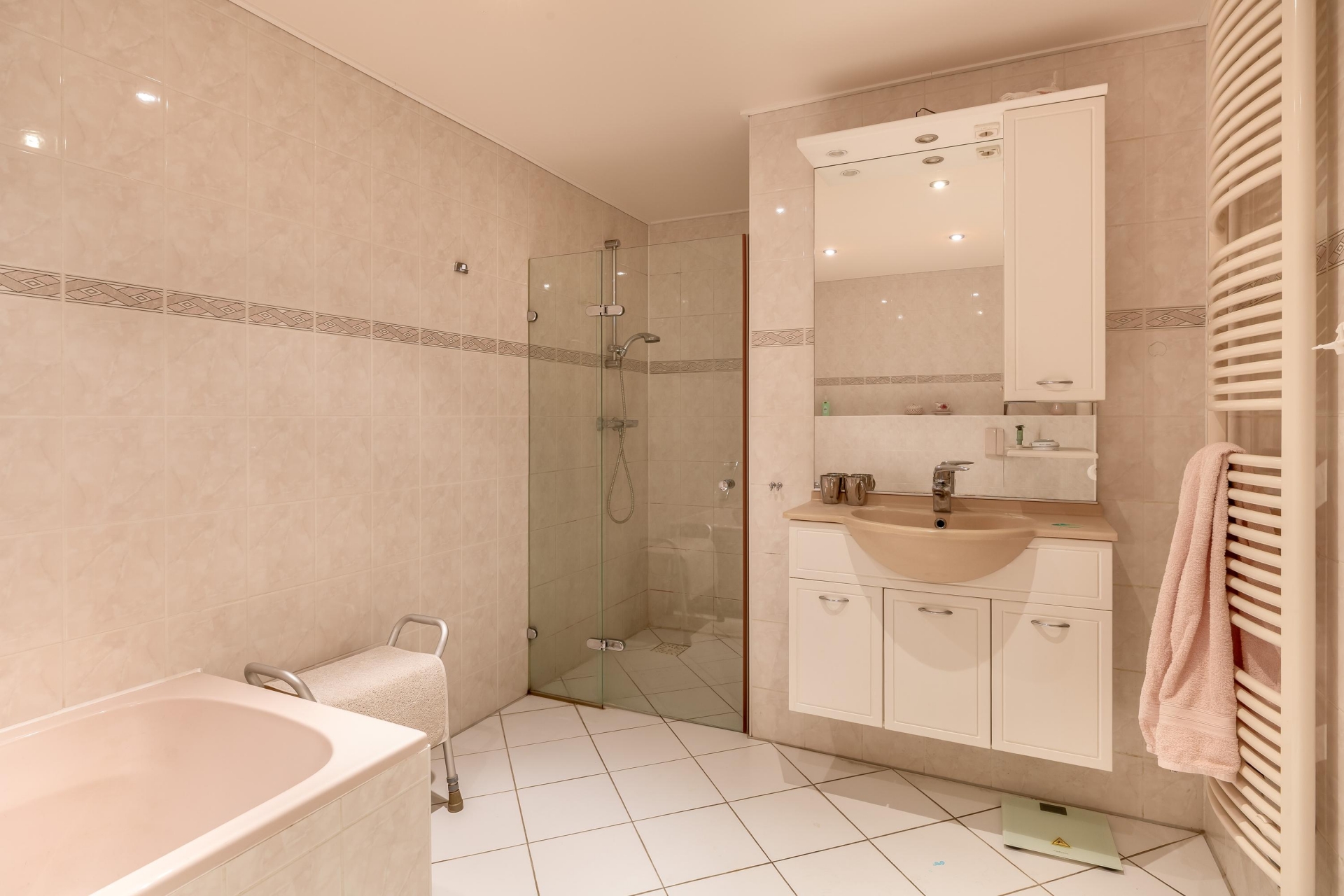 De badkamer is compleet uitgevoerd met een ligbad, douche en wastafel. Daarnaast is er een separaat toilet, wat prettig is voor gasten. Extra praktisch is de aparte berg-/wasruimte in het appartement.