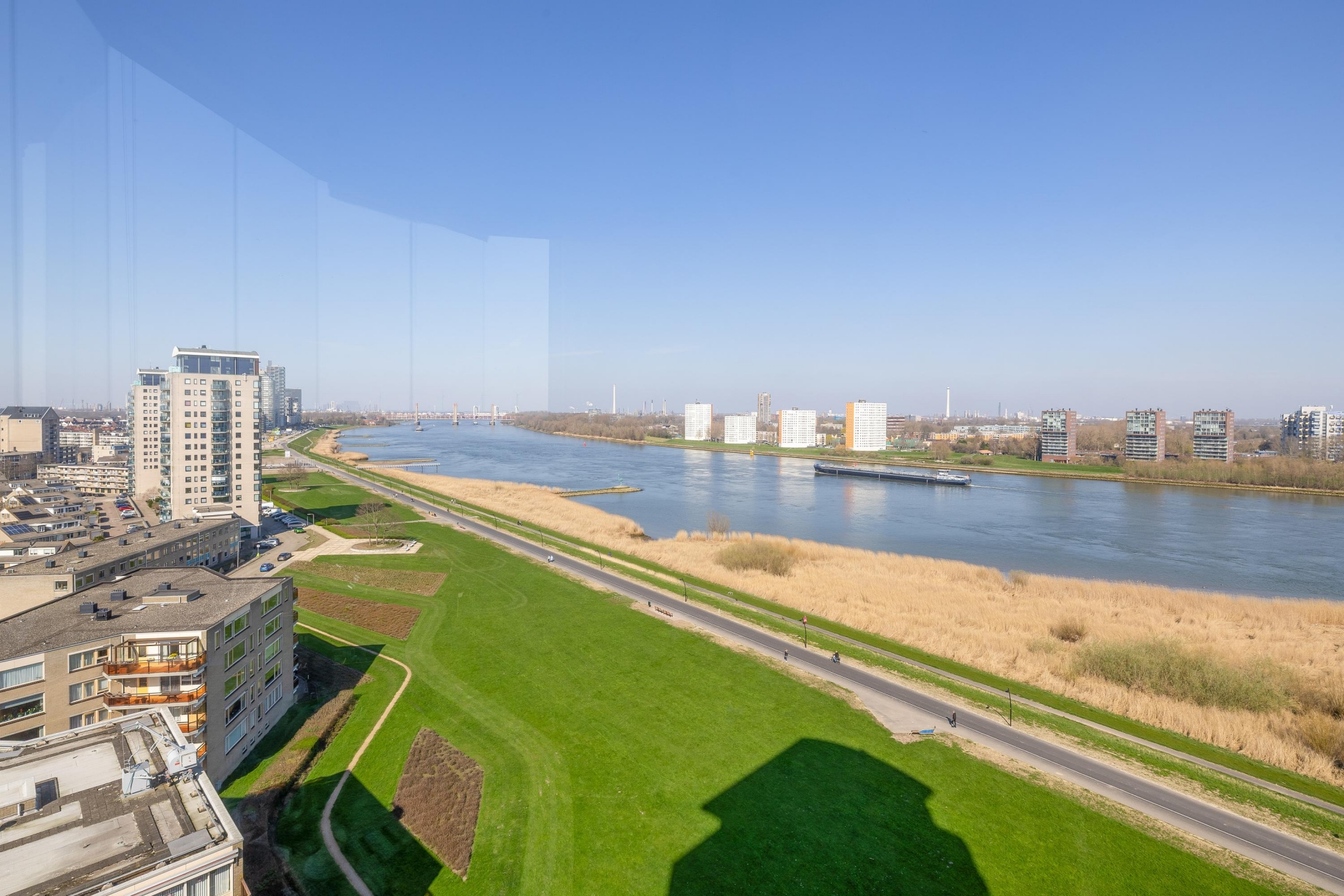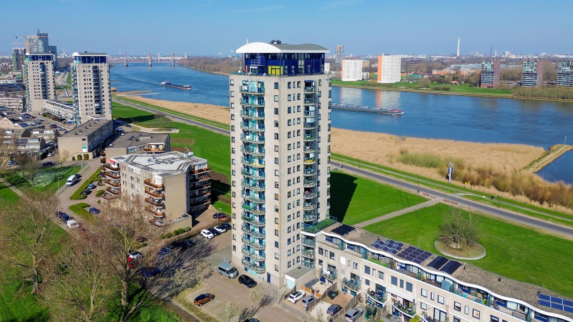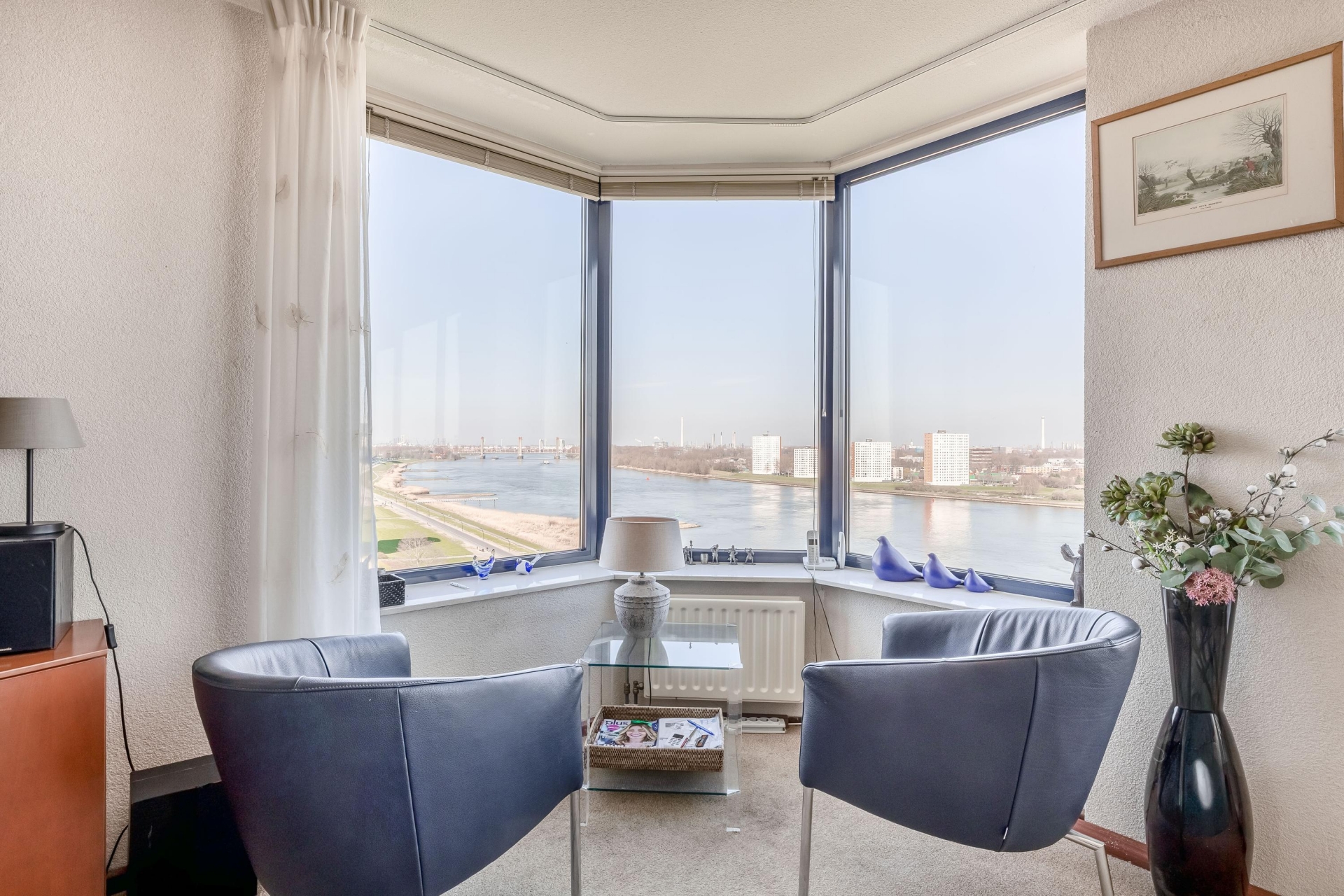 Wonen op hoogte krijgt hier echt betekenis. Dit ruime 4-kamer appartement op de 13e verdieping combineert comfort, ruimte en een uitzicht dat nooit verveelt. Vanuit de woonkamer en het balkon kijk je uit over de Oude Maas, het groen en de omgeving — een plek waar je elke dag opnieuw van geniet.