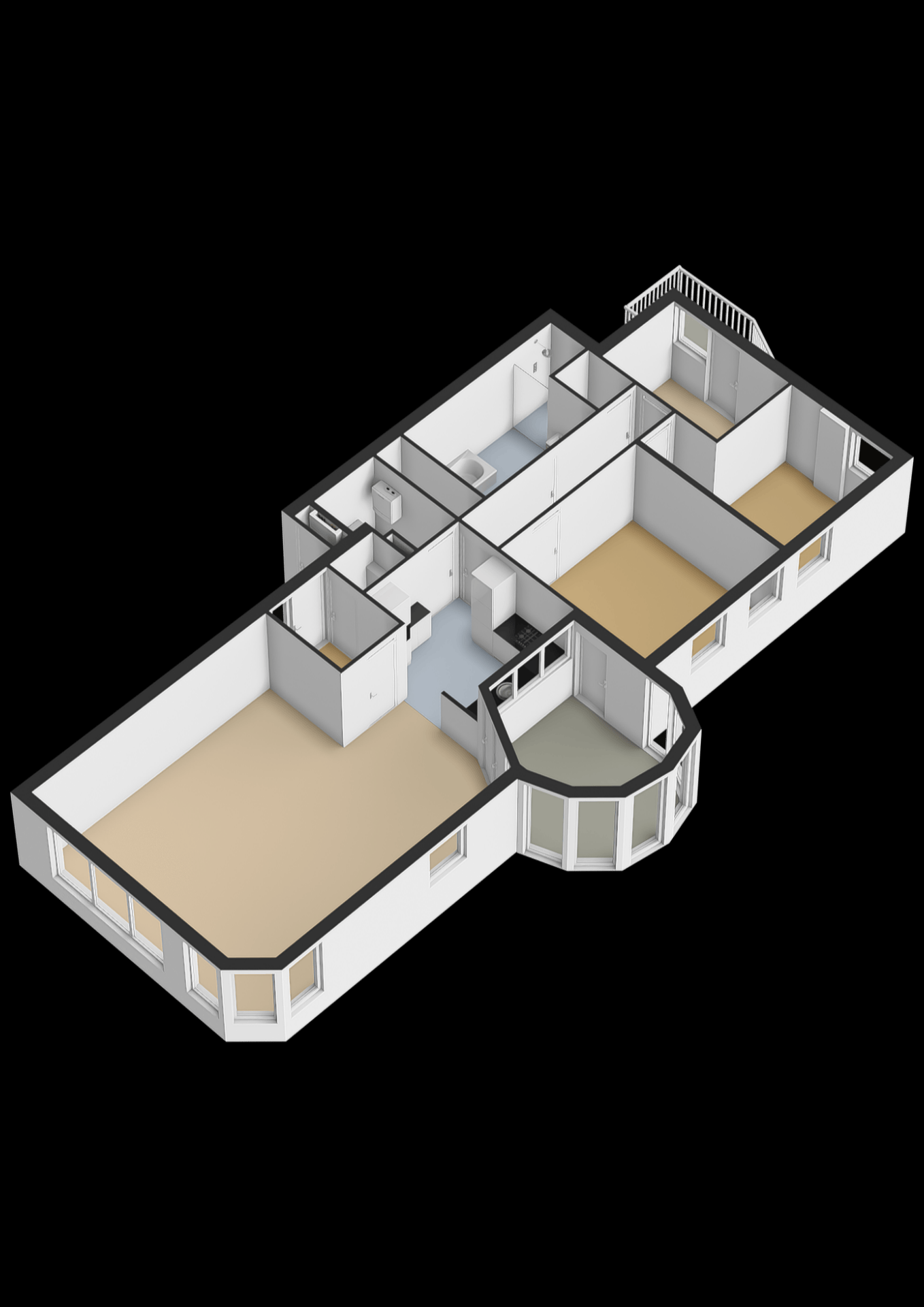 - Twee balkons: zuid en noordwest (met glazen serre)
