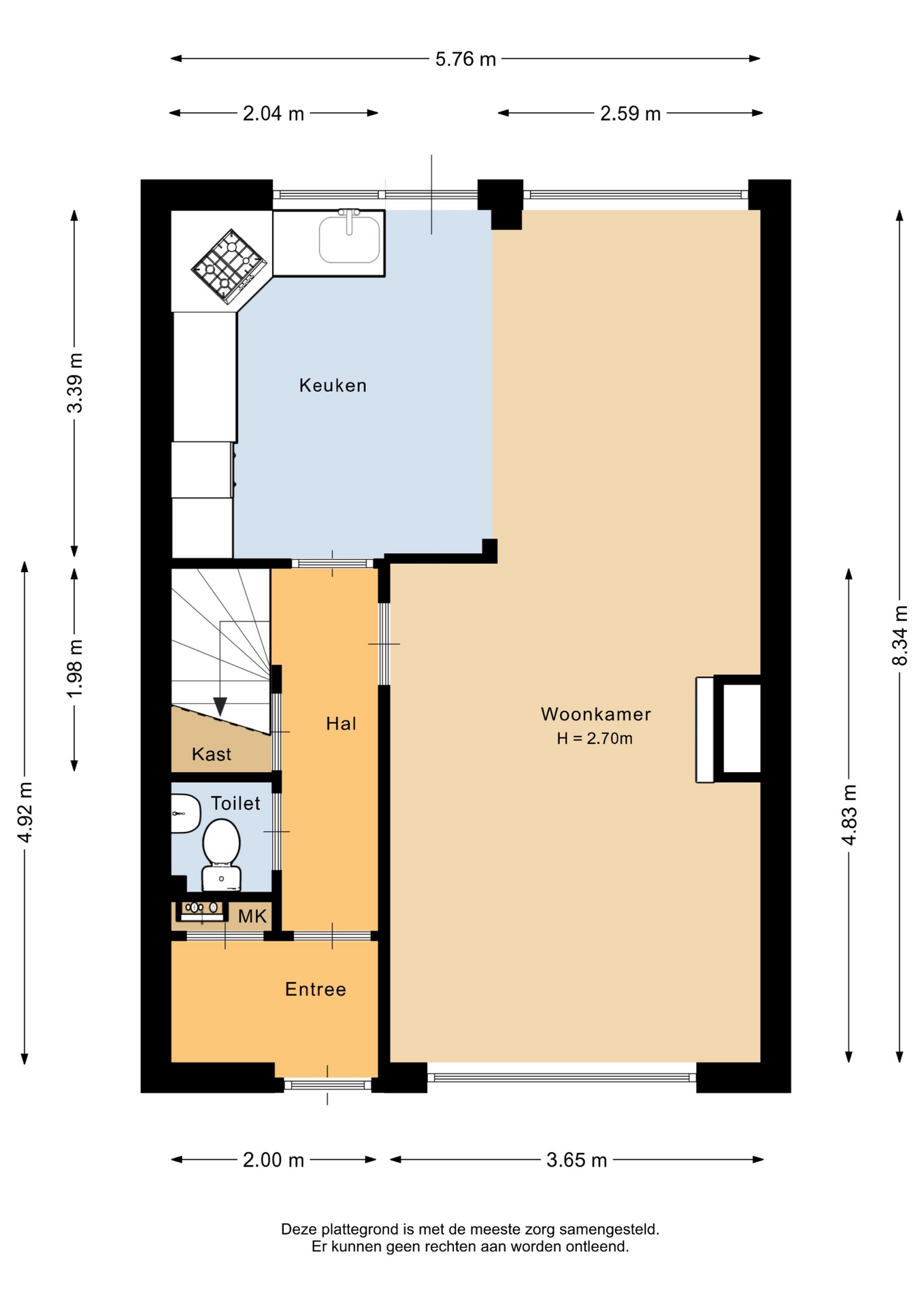 "Deze informatie is door ons met de nodige zorgvuldigheid samengesteld. Onzerzijds wordt echter geen enkele aansprakelijkheid aanvaard voor enige onvolledigheid, onjuistheid of anderszins, dan wel de gevolgen daarvan. Alle opgegeven maten en oppervlakten zijn indicatief. Van toepassing zijn de NVM voorwaarden".