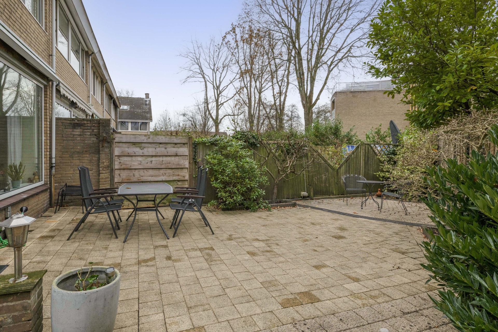 Een absolute troef van deze woning is de ruime achtertuin op het zuidwesten. Hier heb je de hele middag en avond zon, waardoor dit een heerlijke plek is om te ontspannen of met vrienden te borrelen. Door de goede breedte en het vele terrasoppervlak kun je meerdere zitplekken creëren.