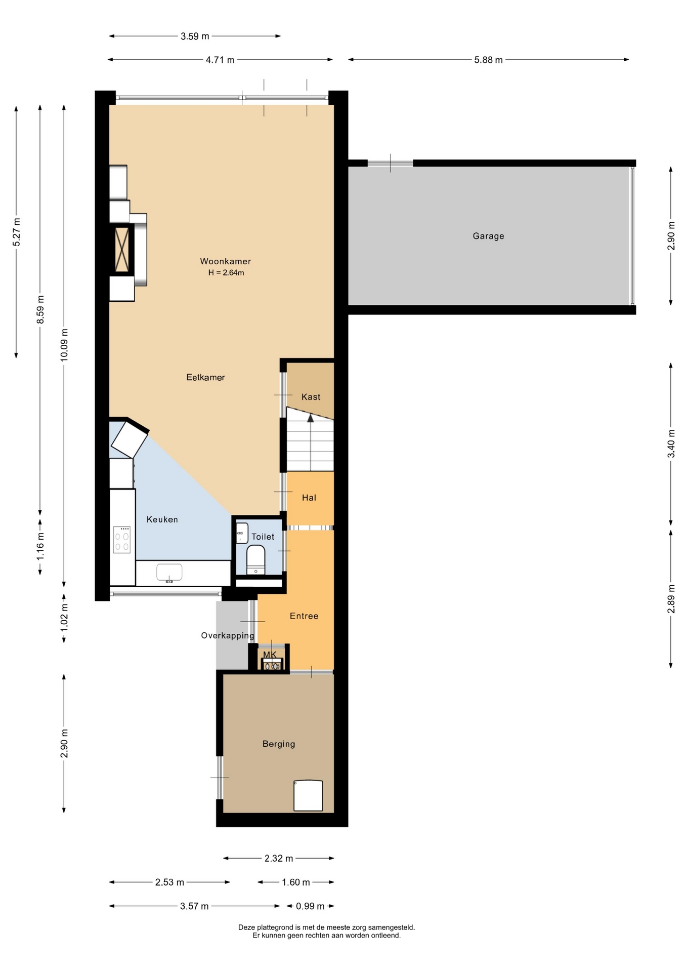 “Deze informatie is door ons met de nodige zorgvuldigheid samengesteld. Onzerzijds wordt echter geen enkele aansprakelijkheid aanvaard voor enige onvolledigheid, onjuistheid of anderszins, dan wel de gevolgen daarvan. Alle opgegeven maten en oppervlakten zijn indicatief.”