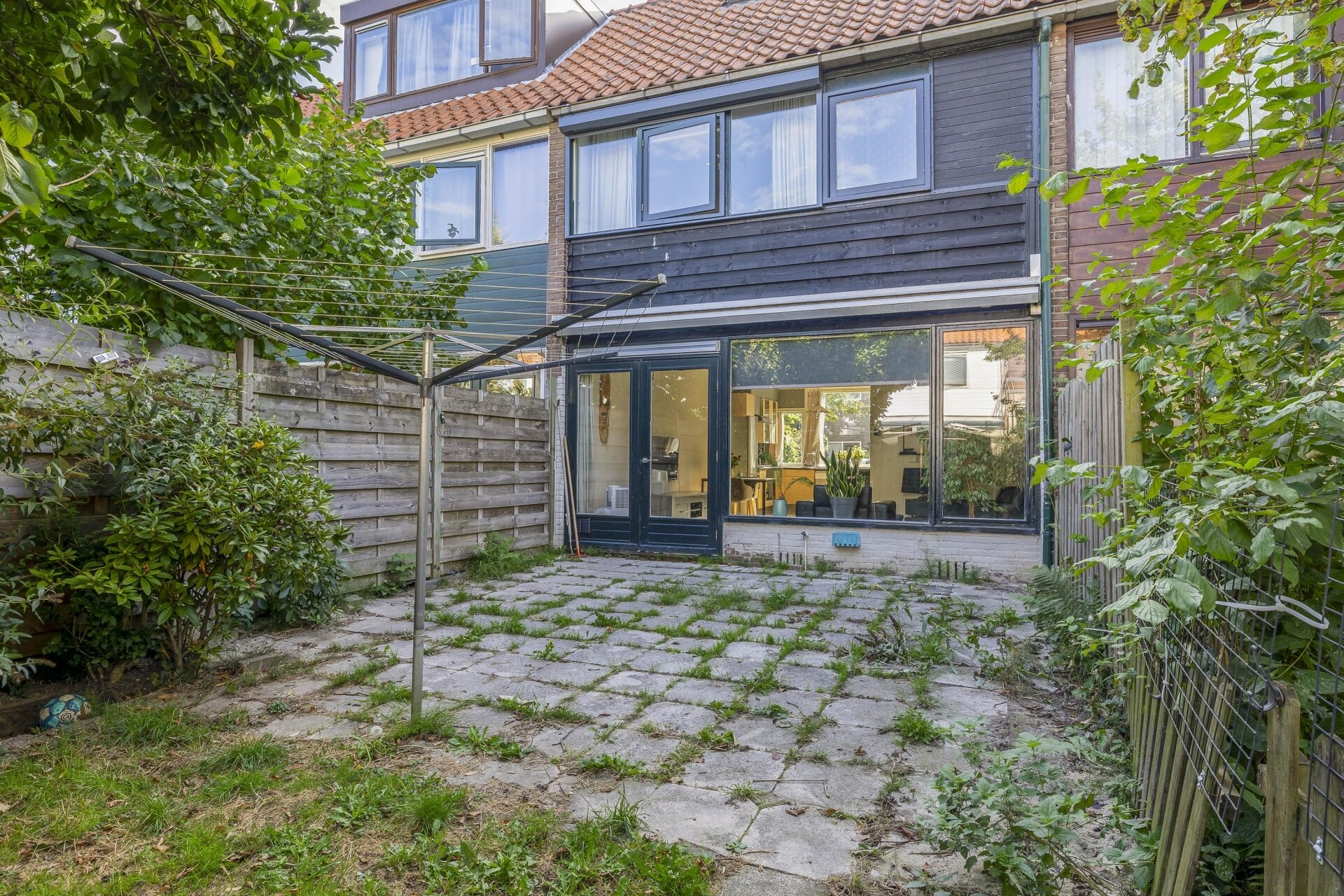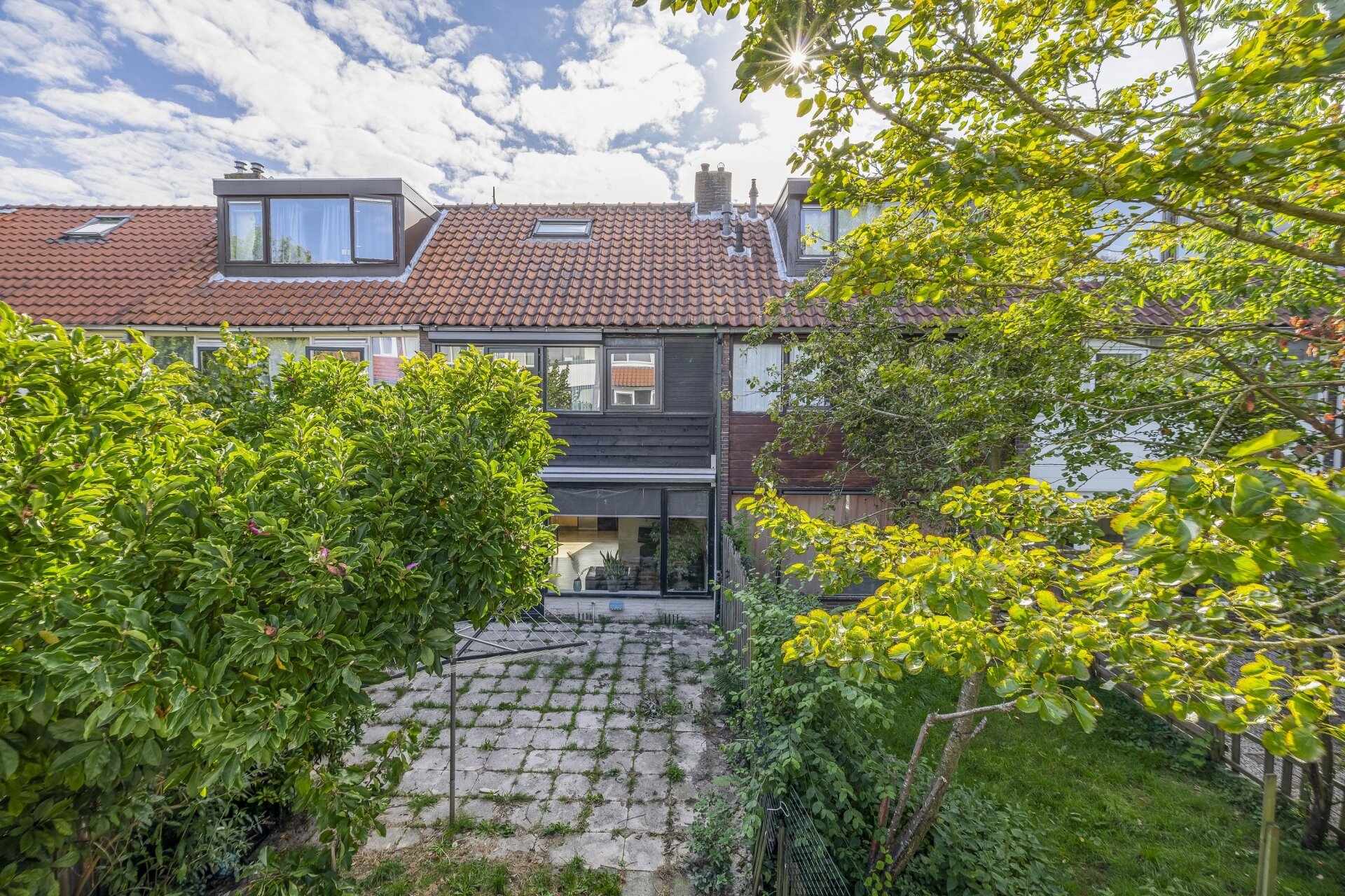 De achtertuin ligt op het noordwesten. Ondanks de ligging kun je hier – zeker in de middag en avond – prima van de zon genieten. De tuin biedt volop ruimte om naar eigen smaak in te richten, of je nu gaat voor onderhoudsarm, groen of juist kindvriendelijk.
