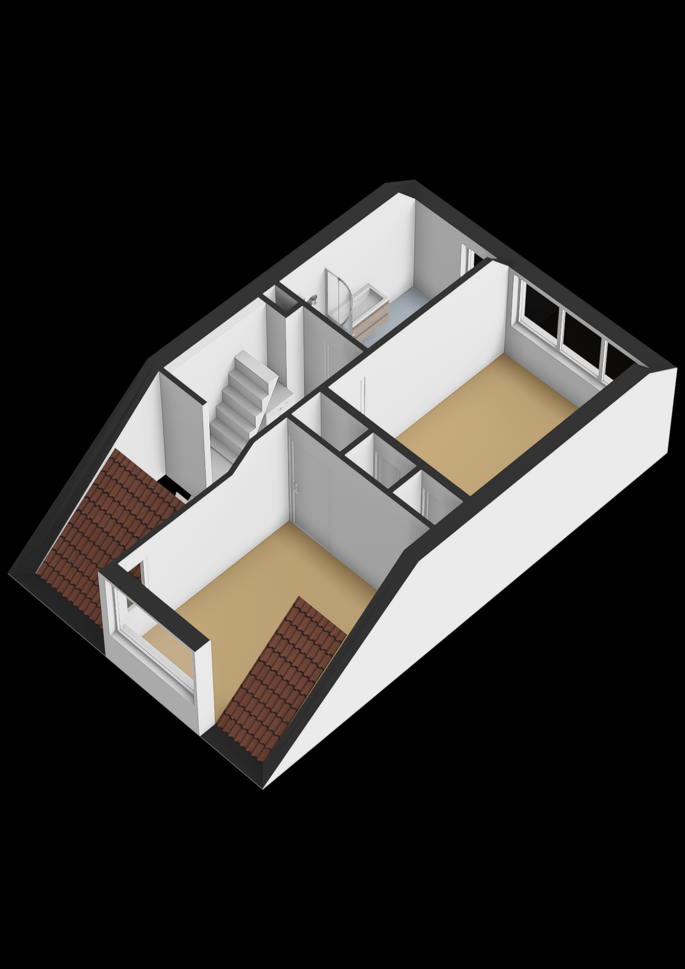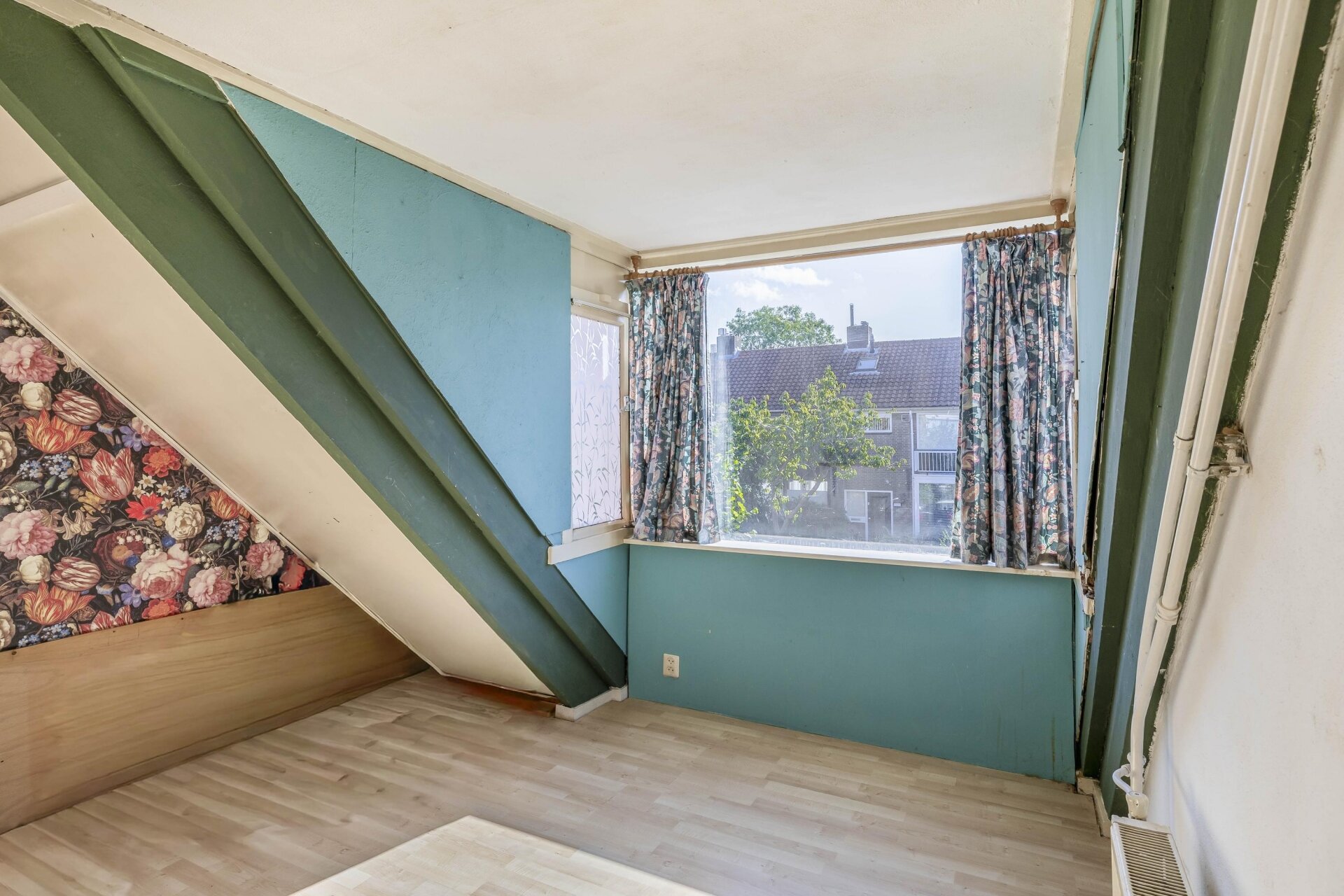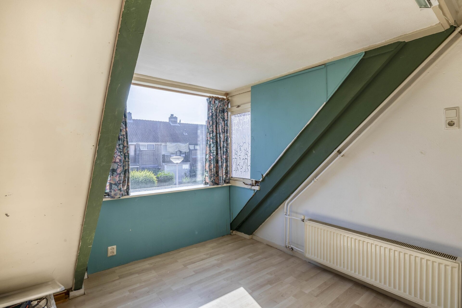 De zolderverdieping is via een vaste trap bereikbaar. Hier vind je een overloop met de opstelling van de CV-ketel en een grote zolderkamer onder het schuine dak. Deze verdieping leent zich uitstekend voor een extra slaapkamer, werkruimte of hobbykamer. Met een dakkapel maak je hier écht iets bijzonders van.