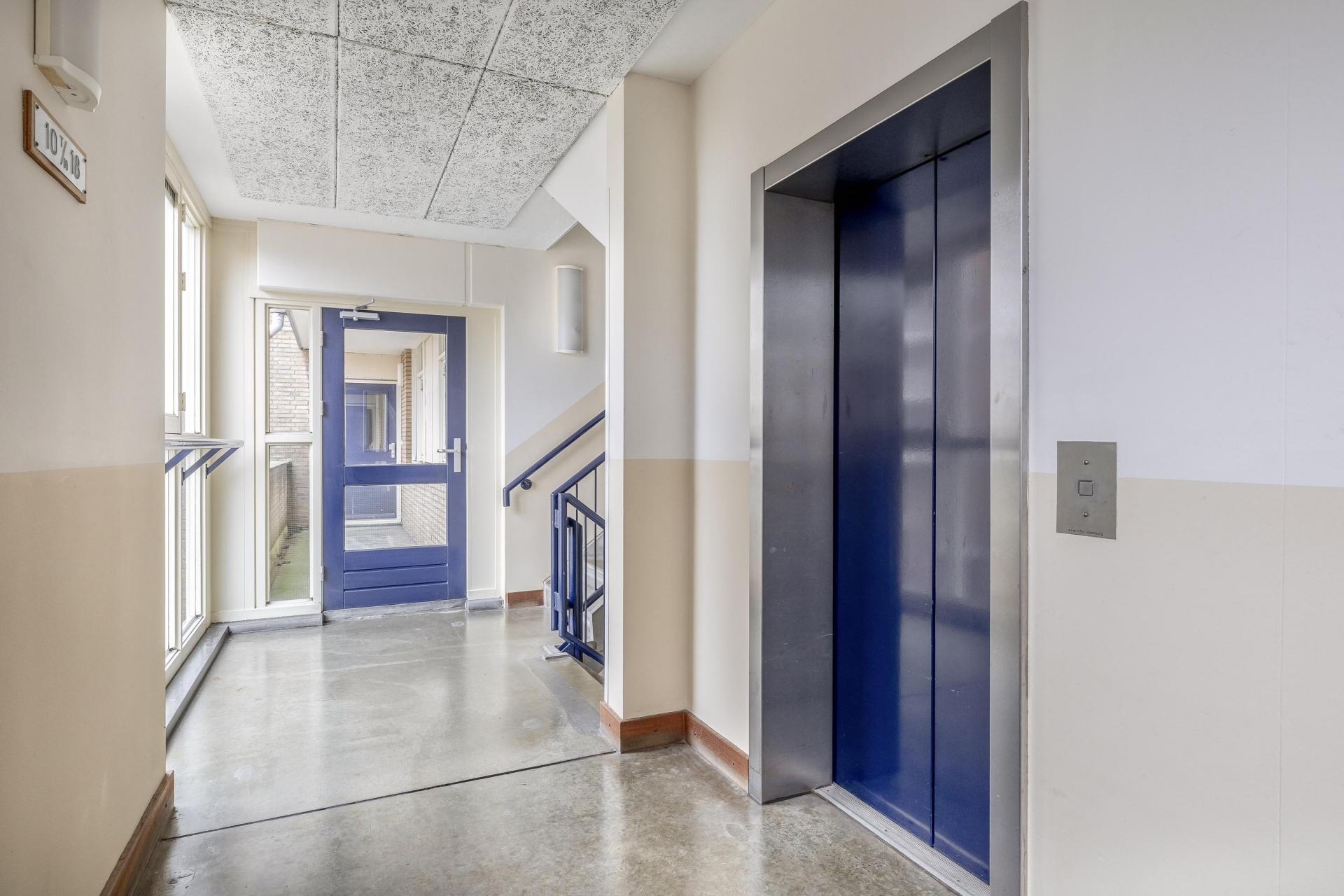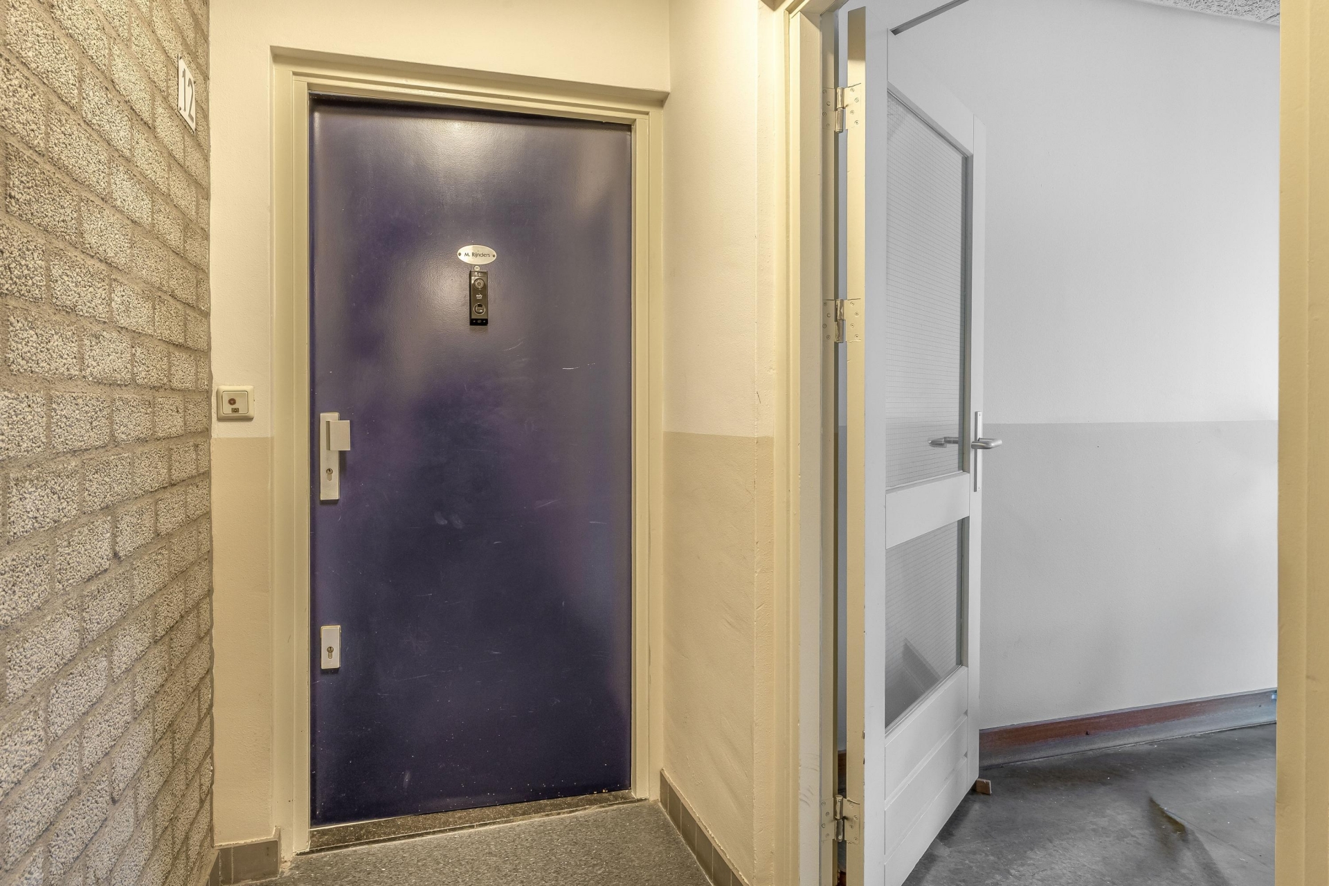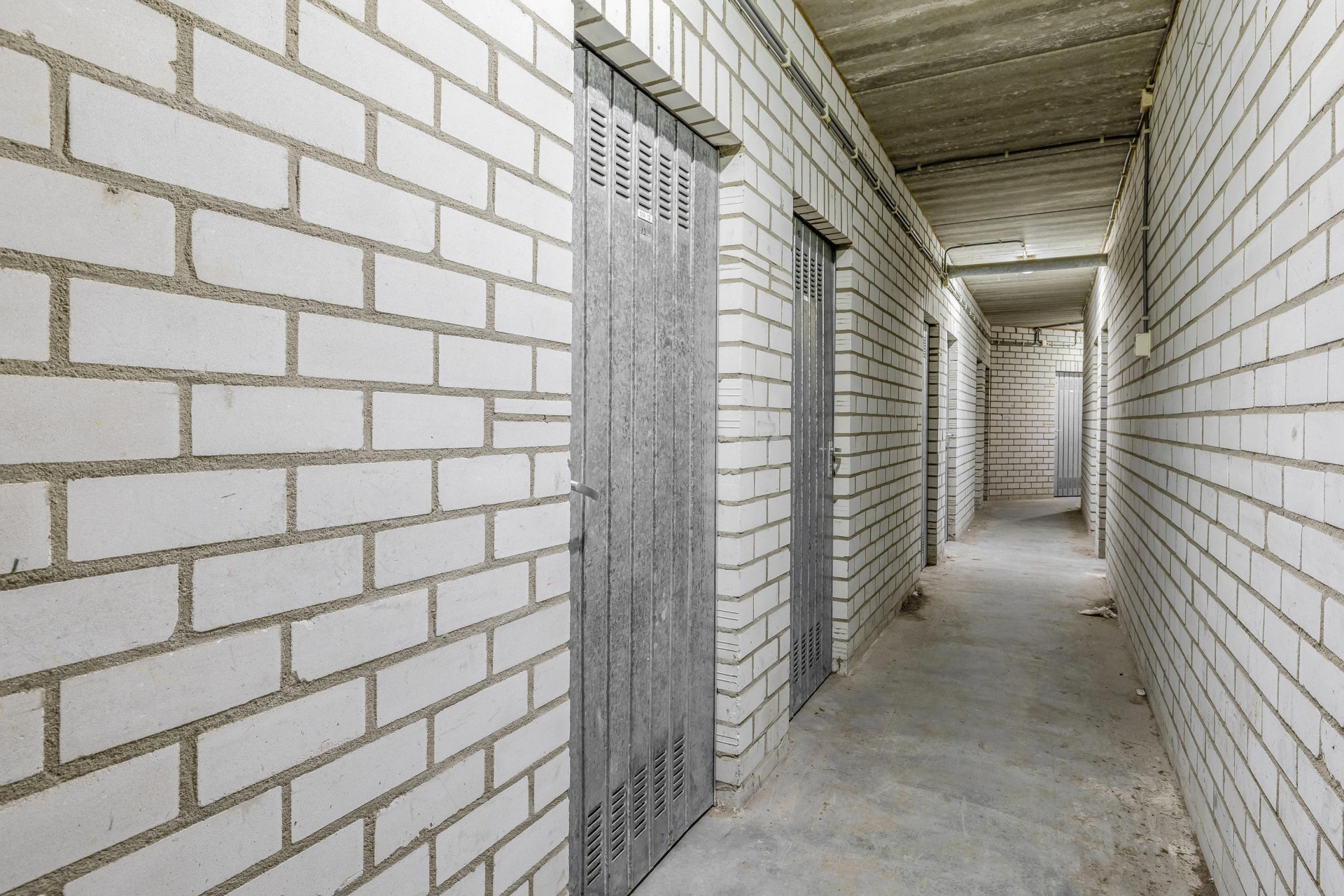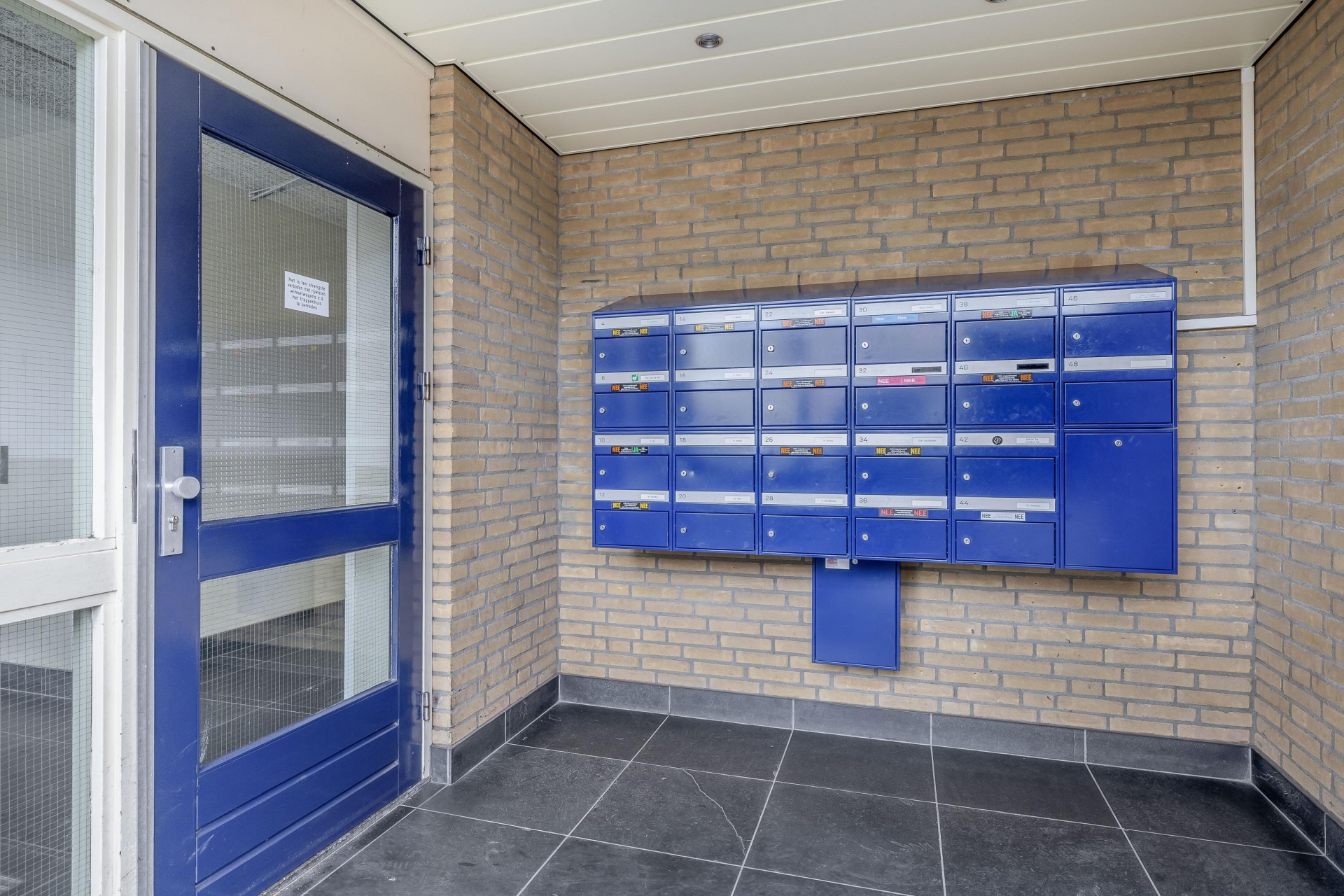 Afgesloten entree met bellentableau en brievenbussen. Vanuit hier heeft u toegang tot de bergingen, het trappenhuis en de lift.