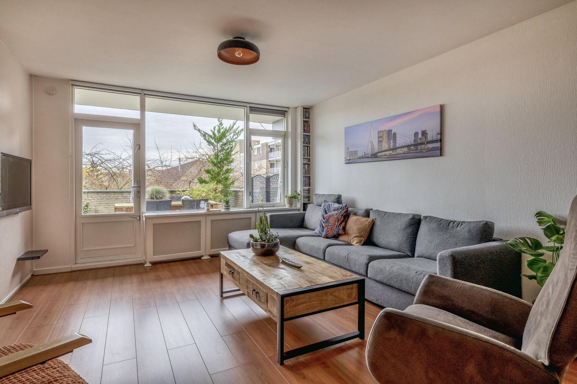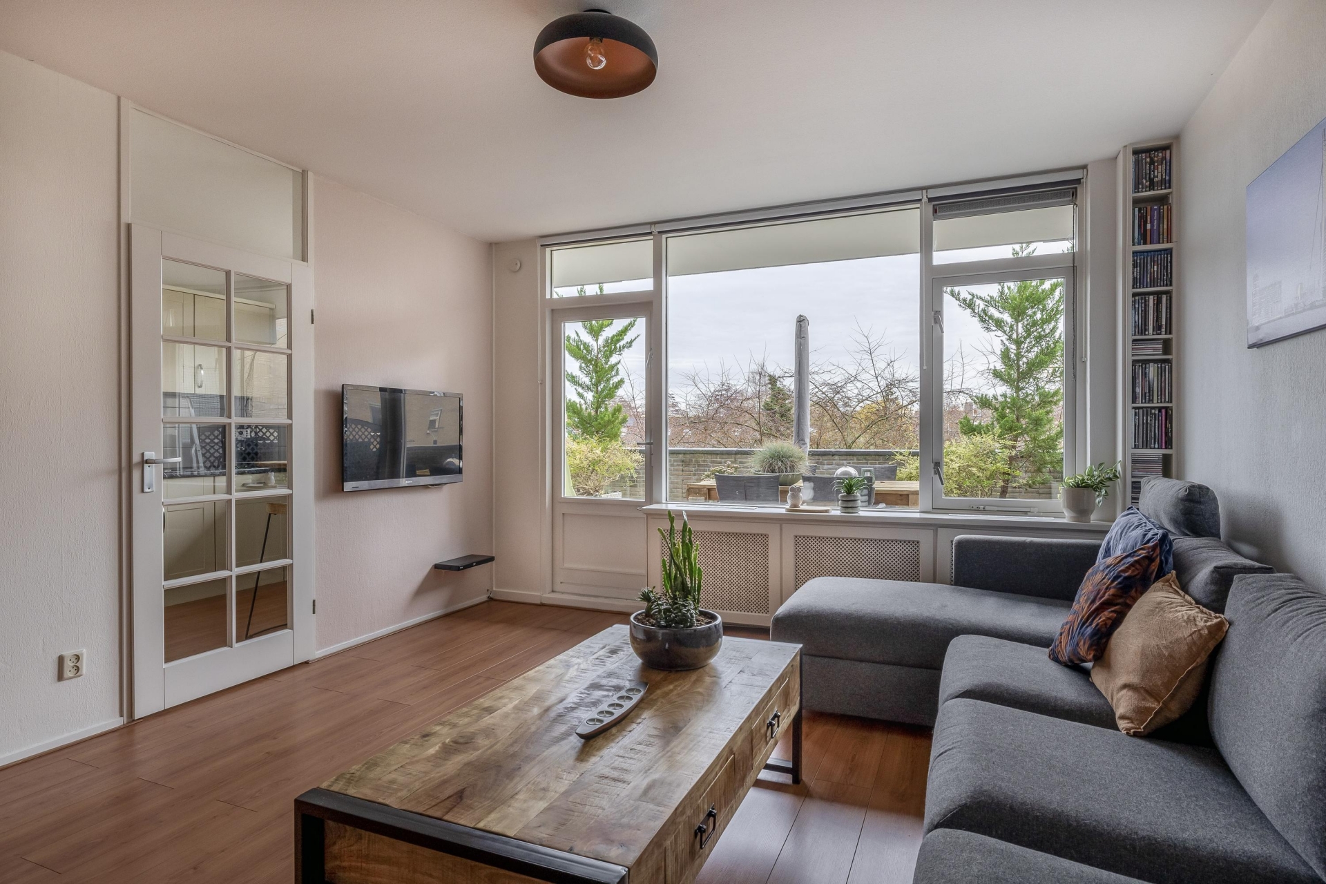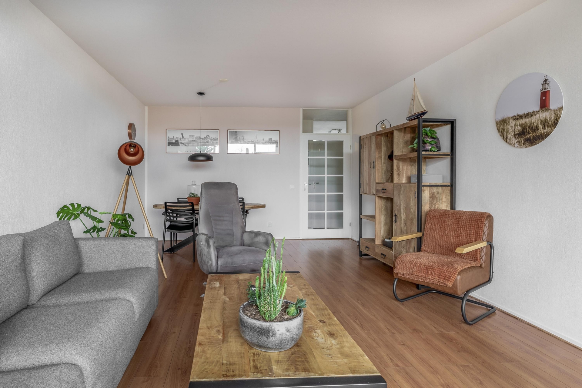 Aan de achterzijde ligt de ruime en lichte woonkamer. Vanuit hier bereikt u het balkon, waar u vrij uitzicht heeft over de wijk.