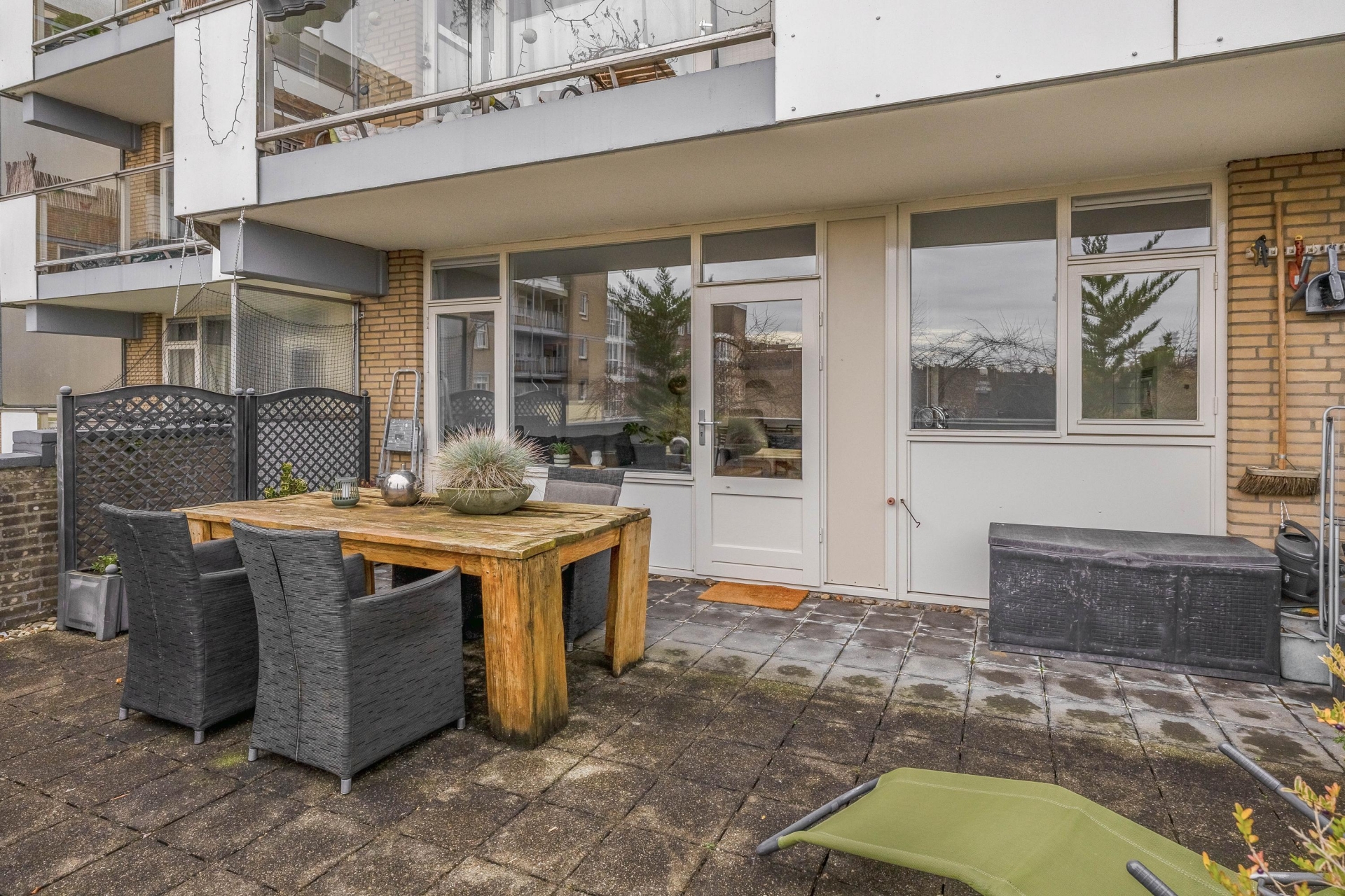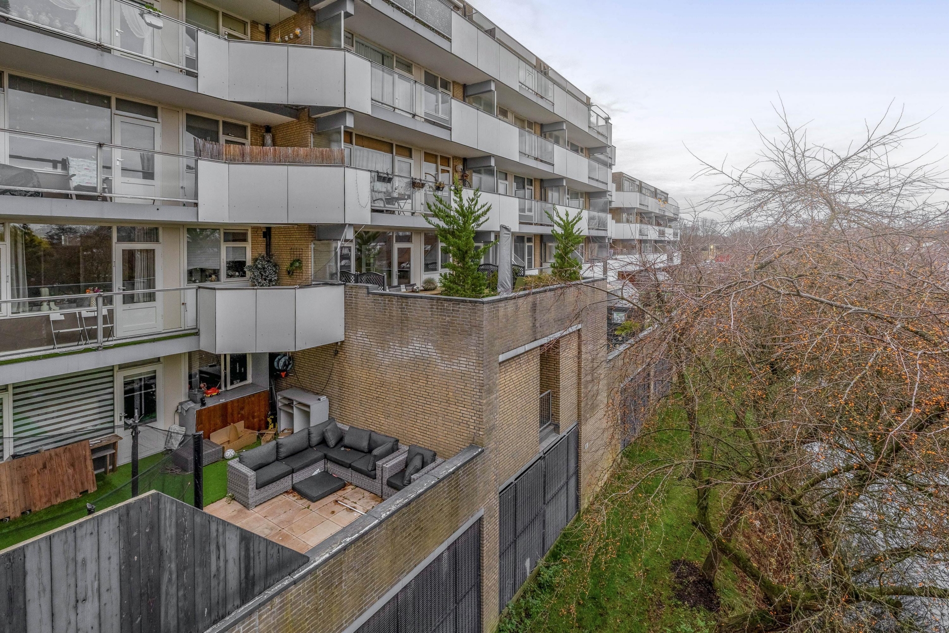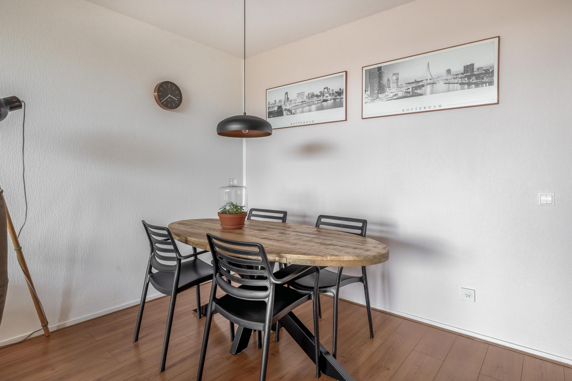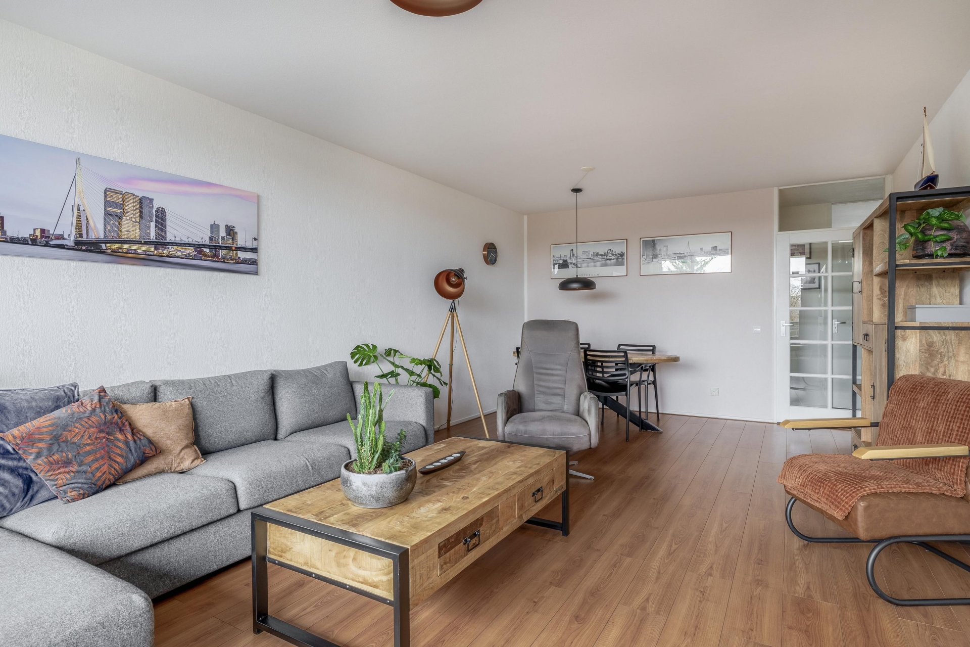 Aan de achterzijde ligt de ruime en lichte woonkamer. Vanuit hier bereikt u het balkon, waar u vrij uitzicht heeft over de wijk.