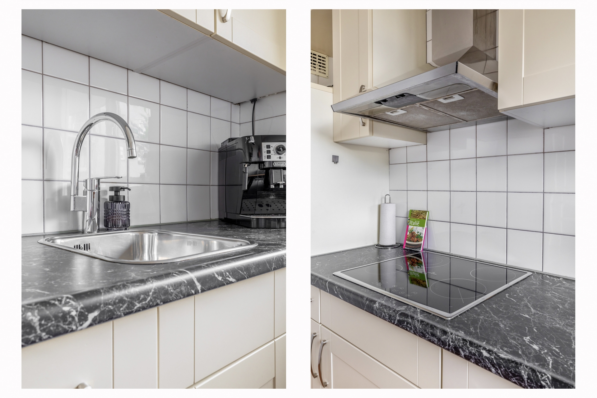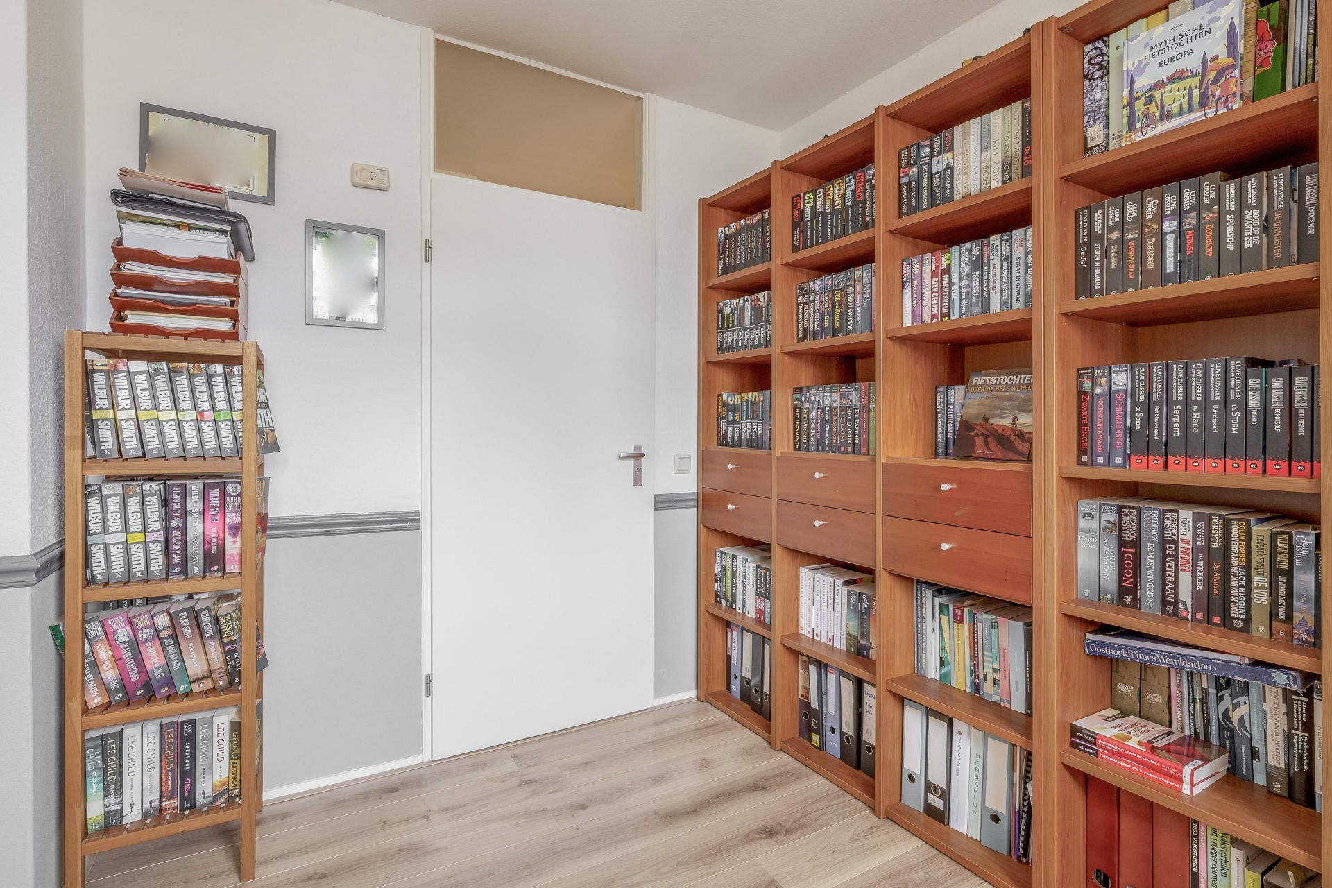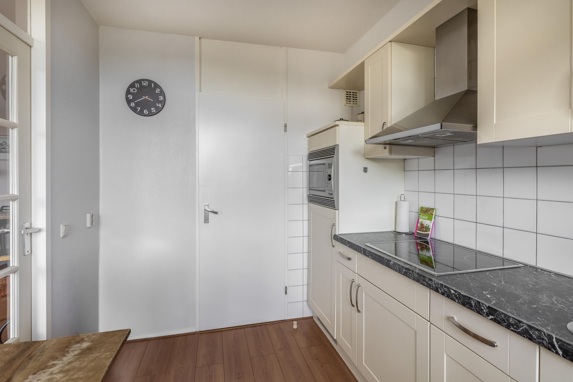De afgesloten keuken grenst direct aan de woonkamer en is uitgevoerd in een eenvoudige opstelling met diverse inbouwapparatuur. Aansluitend vindt u de bijkeuken met veel bergruimte, de motor van de mechanische ventilatie en wasmachineaansluiting.