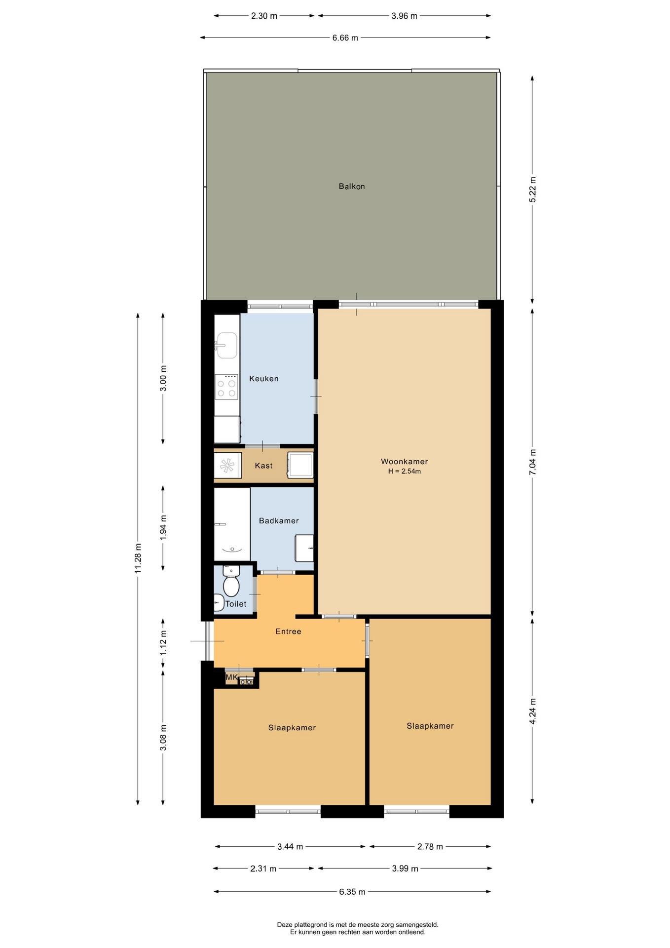 Aan de voorzijde liggen twee slaapkamers van ca. 12 m² en 10 m².