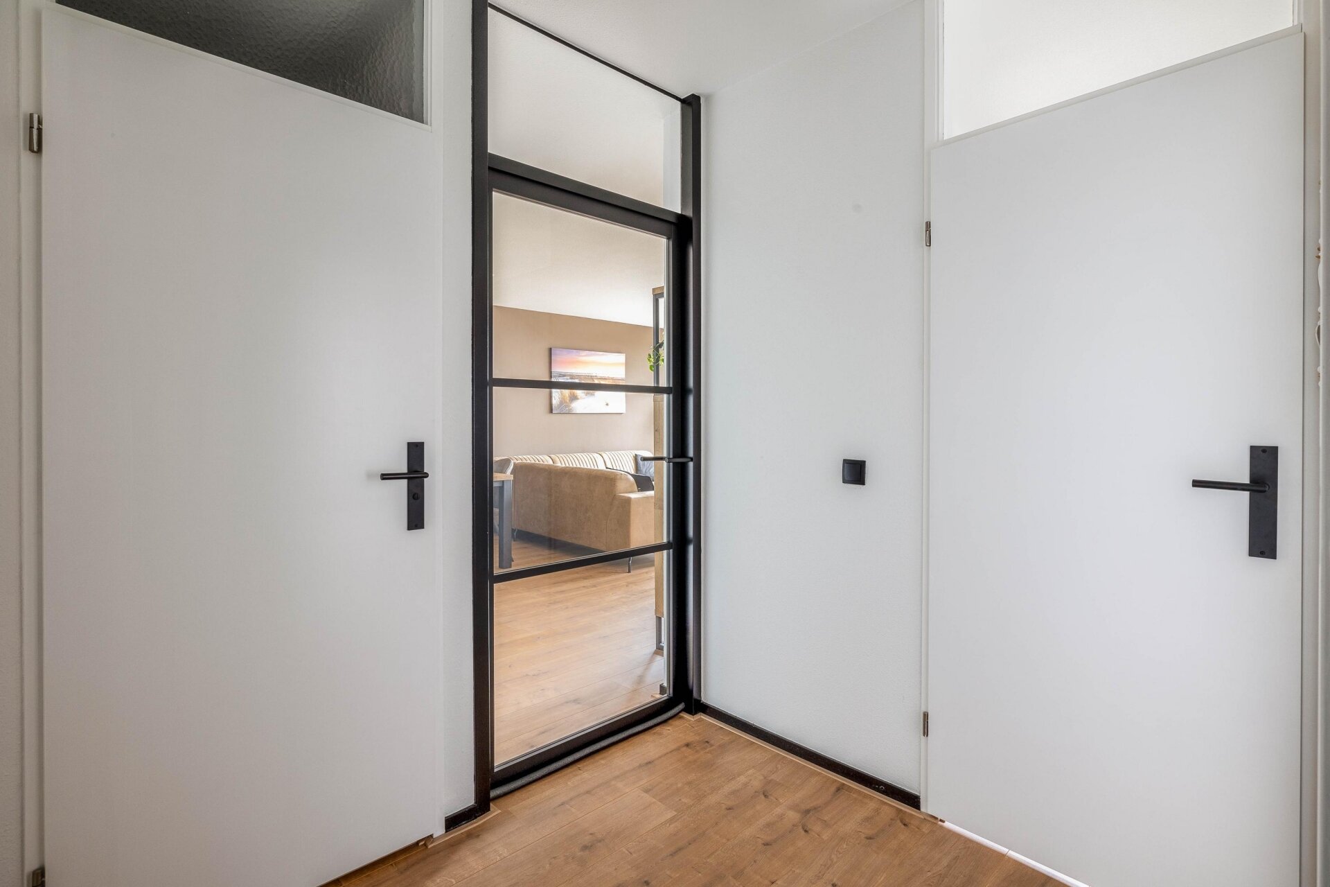 Dit hoekappartement van 67 m² woonoppervlakte is zeker een bezichtiging waard! Hier hoef je alleen je verhuisdozen uit te pakken en je kan direct genieten van dit gerenoveerde appartement gelegen op eigen grond. Circa 3 jaar geleden heeft er een grote renovatie plaats gevonden. Zo is de keuken compleet vernieuwd. Ook zijn de wanden in de keuken en de wand in de slaapkamer gestukt en zijn alle plafonds en muren opnieuw gewit en geschilderd. Tevens is de vloer vervangen en gelegd door een professioneel bedrijf. De tussendeur in de woonkamer is vervangen door een nieuwe mooie zwarte glazen deur. De overige deuren zijn opnieuw opgeknapt (geschuurd, gewit, nieuw zwart deurbeslag). Ook alle stopcontacten/lichtknoppen zijn vervangen. Dit heeft er voor gezorgd dat je hier niets aan hoeft te doen!