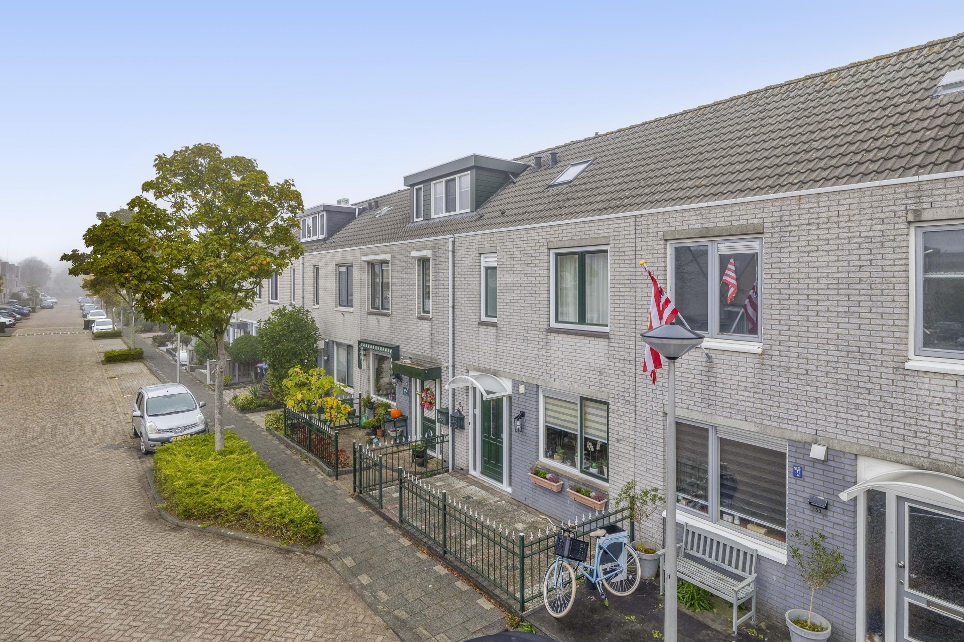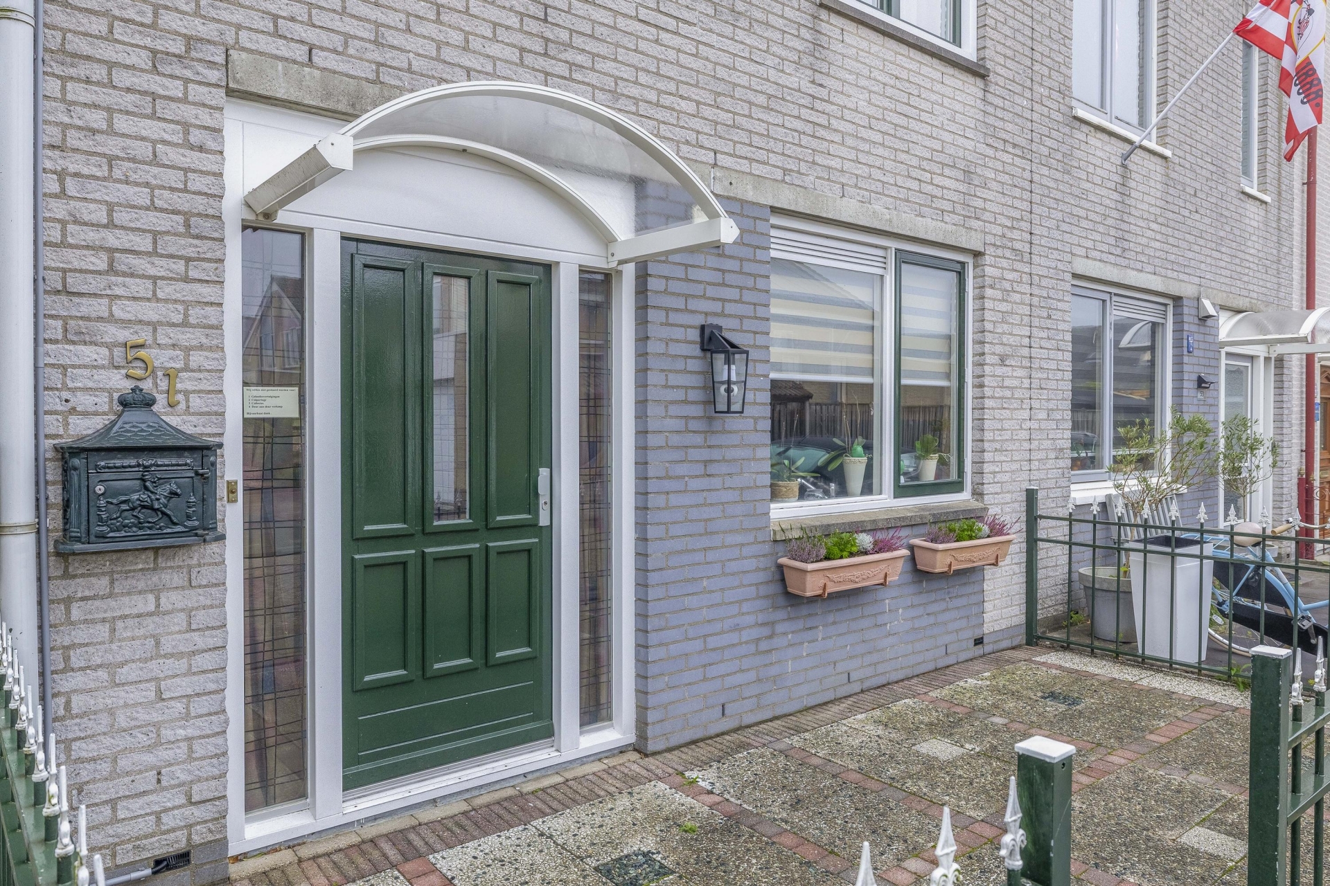 Aan de voorzijde van het huis ligt een verzorgde voortuin en een overdekte entree. Parkeren kan voor de deur op de openbare weg.