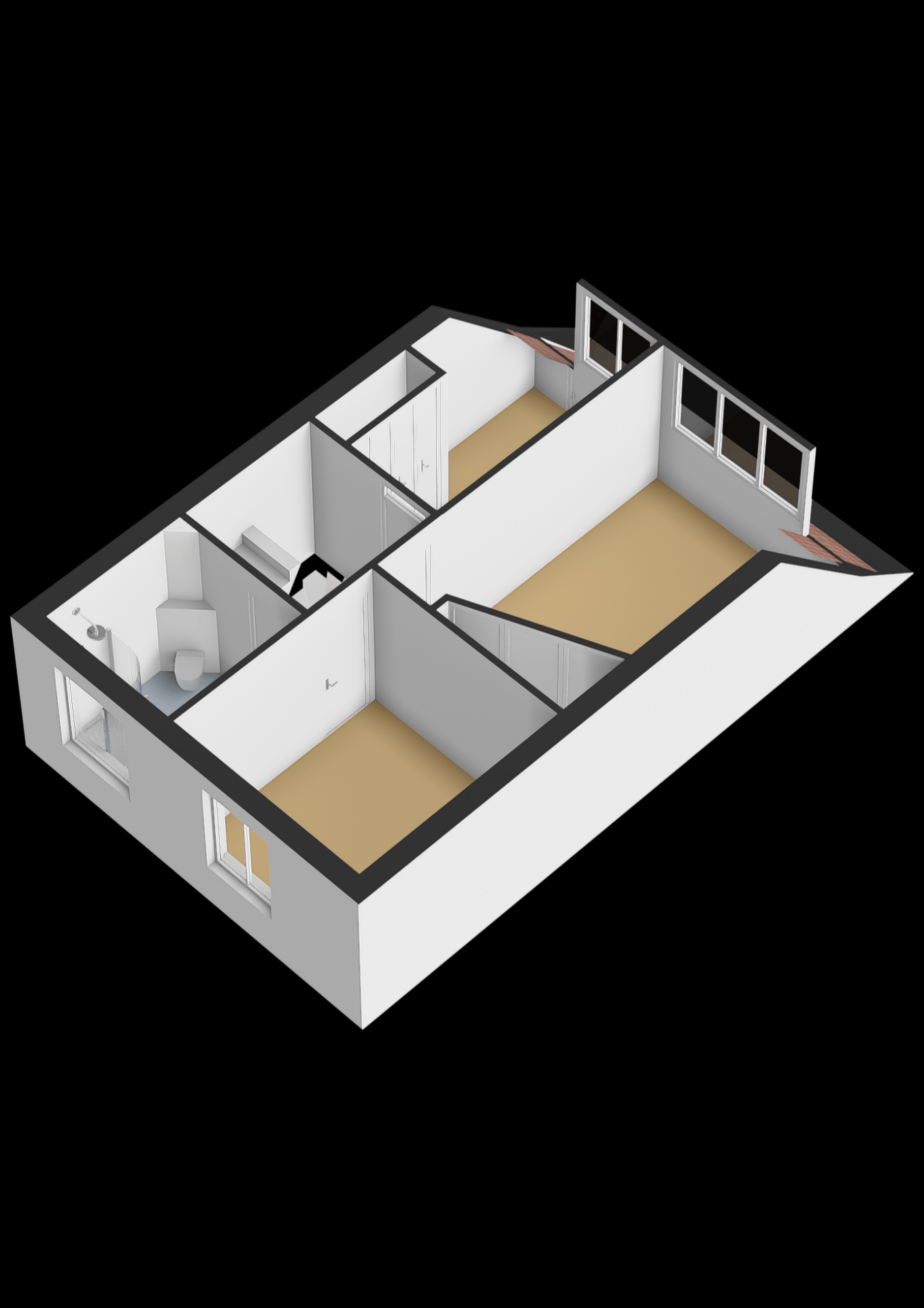 Op de eerste verdieping zijn drie slaapkamers, waarbij de grootste slaapkamer en een tweede slaapkamer aan de achterzijde zijn voorzien van een kunststof dakkapel. De kamers zijn praktisch ingedeeld en geschikt als slaapkamer, werkkamer of kinderkamer. De badkamer is compleet ingericht met een douchecabine, toilet en wastafelmeubel, en netjes afgewerkt in lichte kleurstelling.
