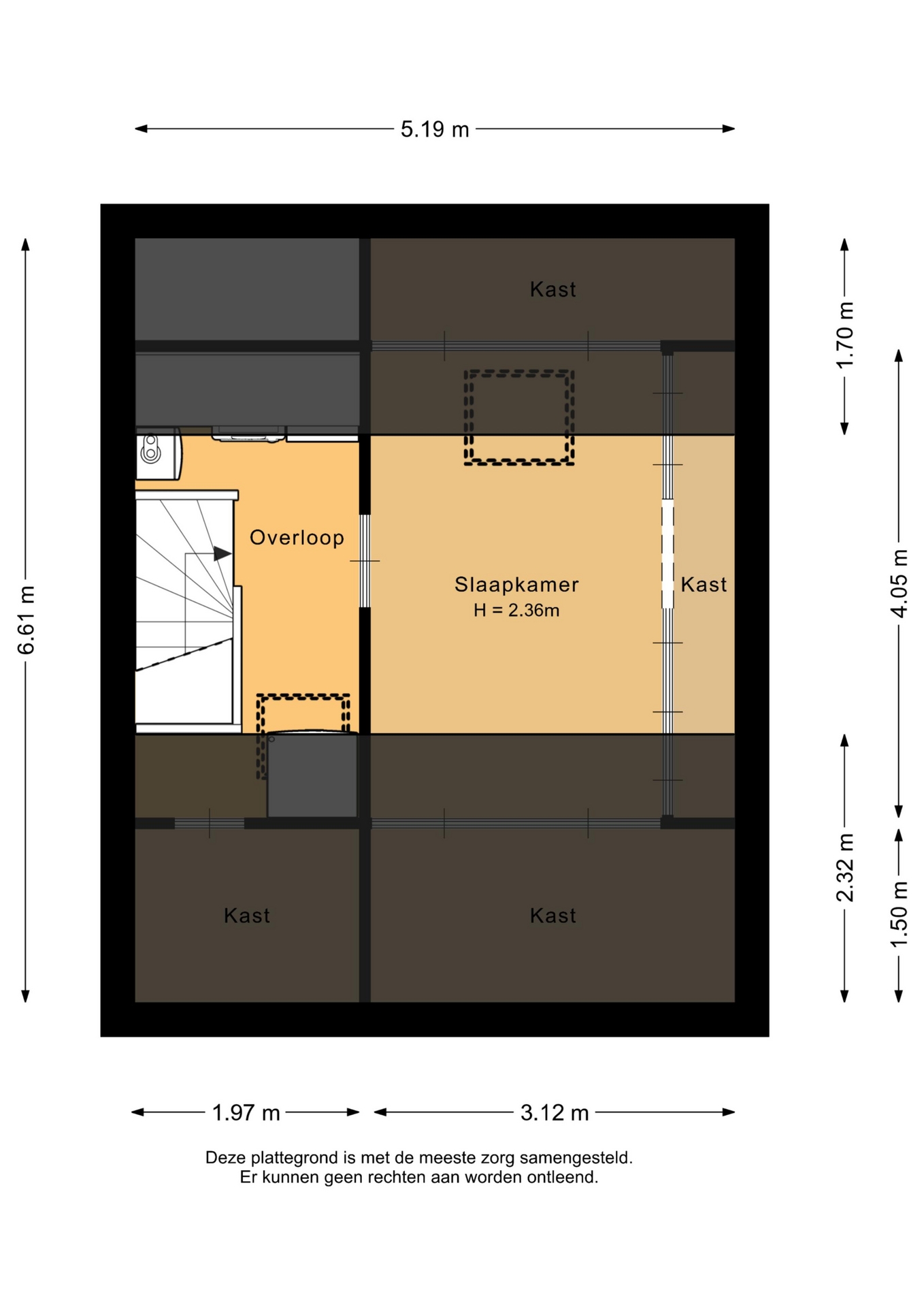 “Deze informatie is door ons met de nodige zorgvuldigheid samengesteld. Onzerzijds wordt echter geen enkele aansprakelijkheid aanvaard voor enige onvolledigheid, onjuistheid of anderszins, dan wel de gevolgen daarvan. Alle opgegeven maten en oppervlakten zijn indicatief.”