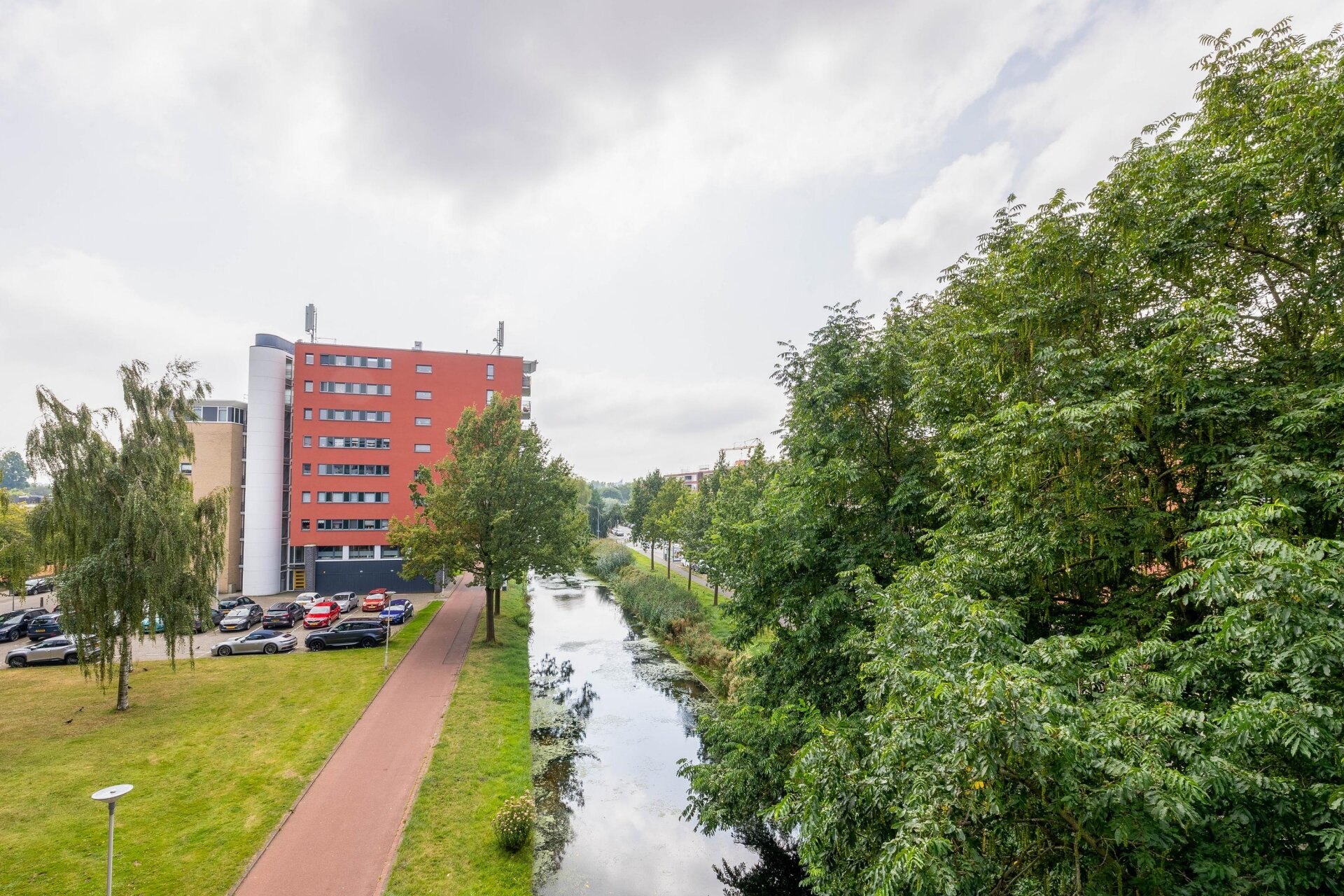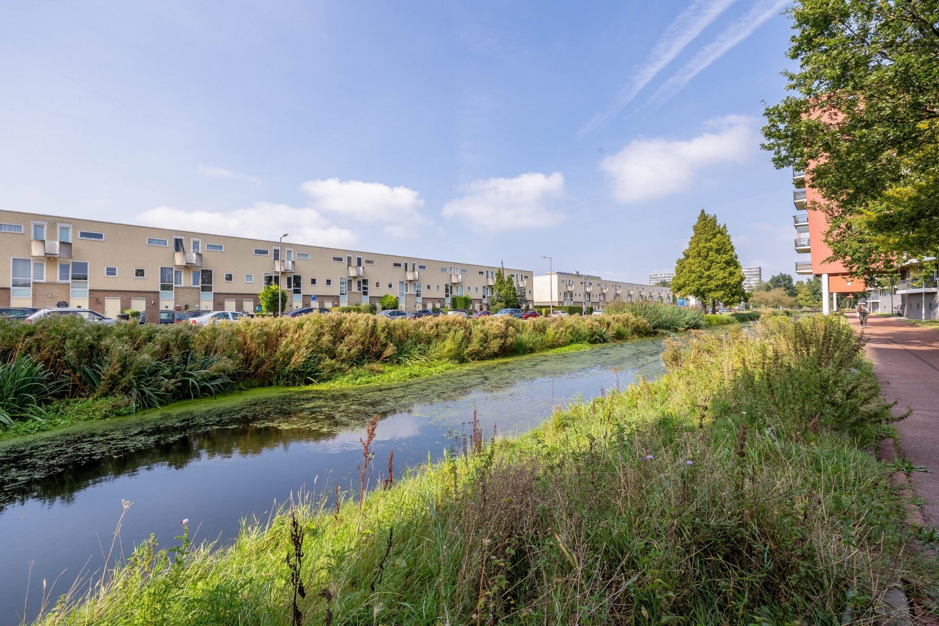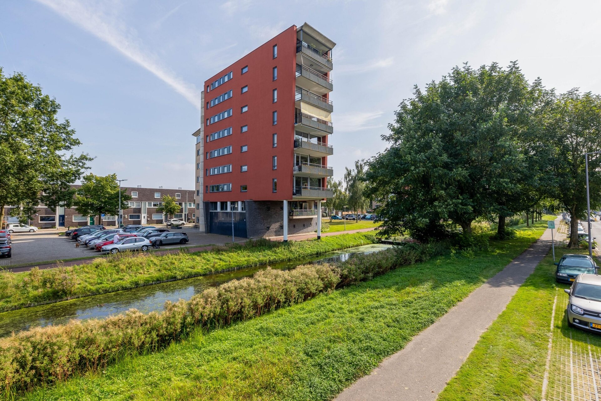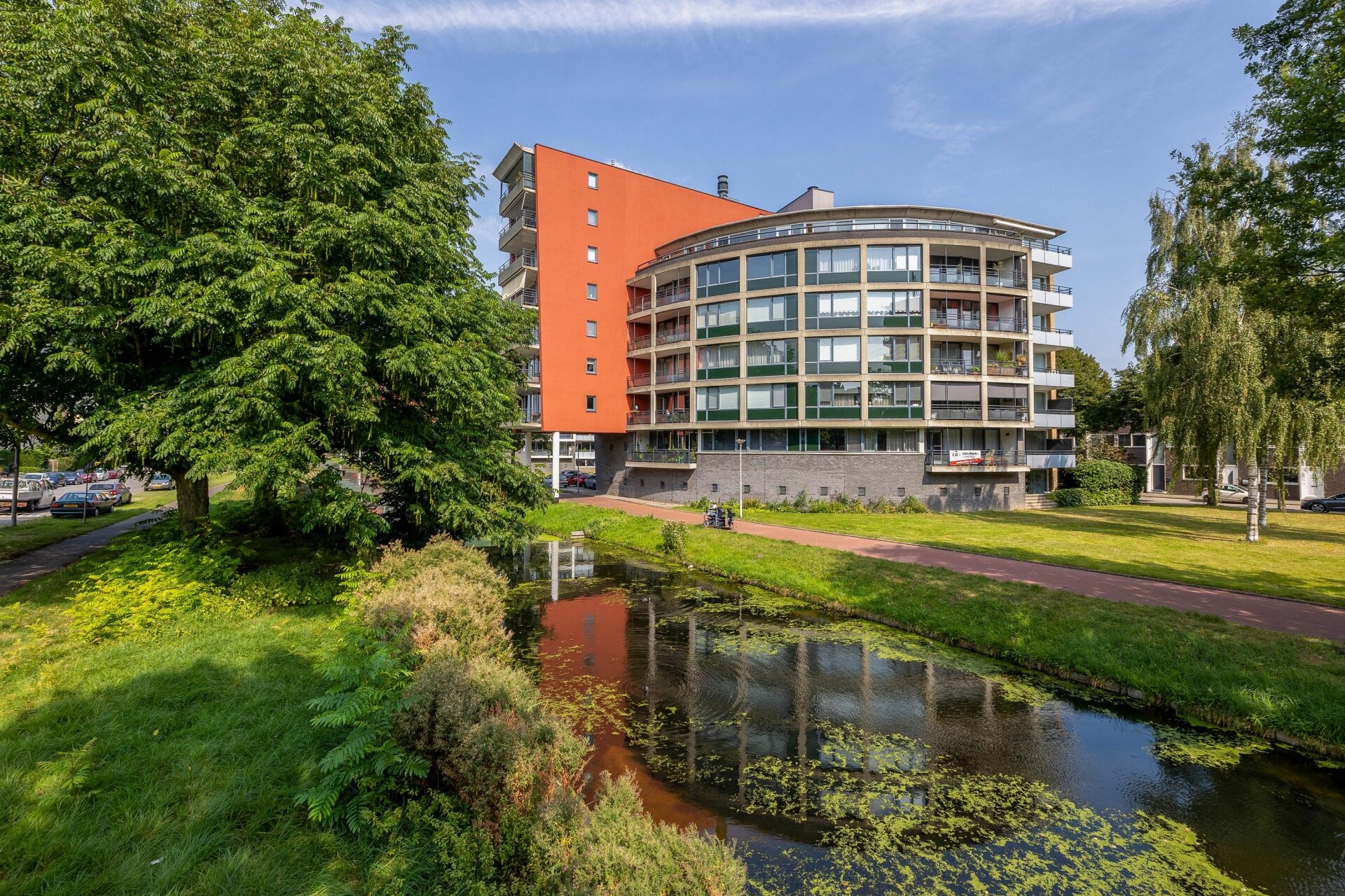 Het appartementencomplex aan de Marie van Eijsden-Vinkstraat is aan de achterzijde direct gelegen aan het water.