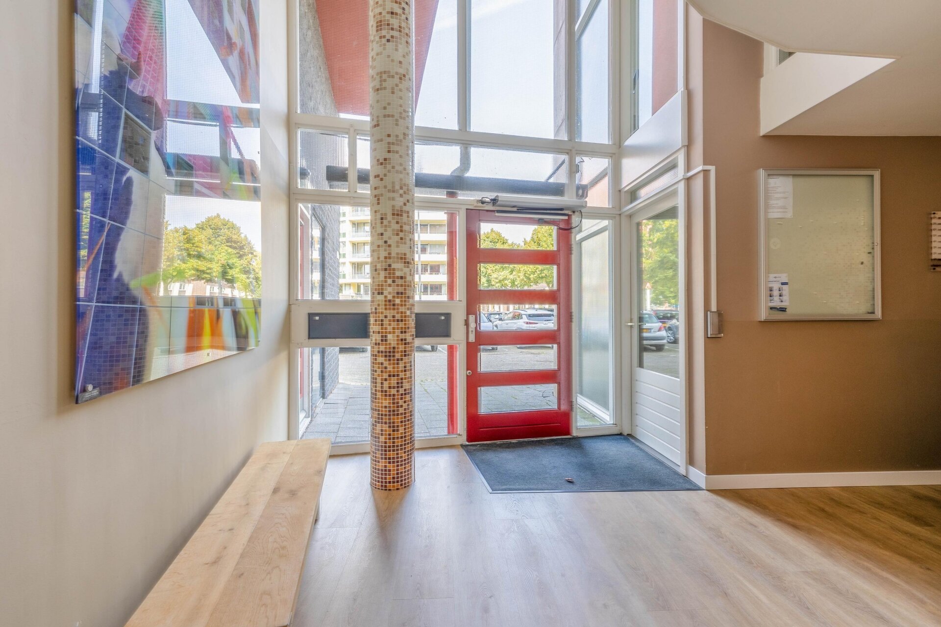 Op de begane grond is een centrale hal met brievenbussen en bellentableau met tag-scherm. Middels een afgesloten hal is de berging toegankelijk. Met de lift of het trappenhuis bereikt u de diverse verdiepingen. Het appartementencomplex heeft een verzorgde uitstraling.
