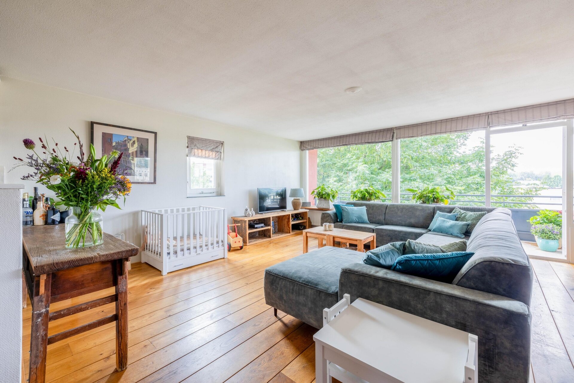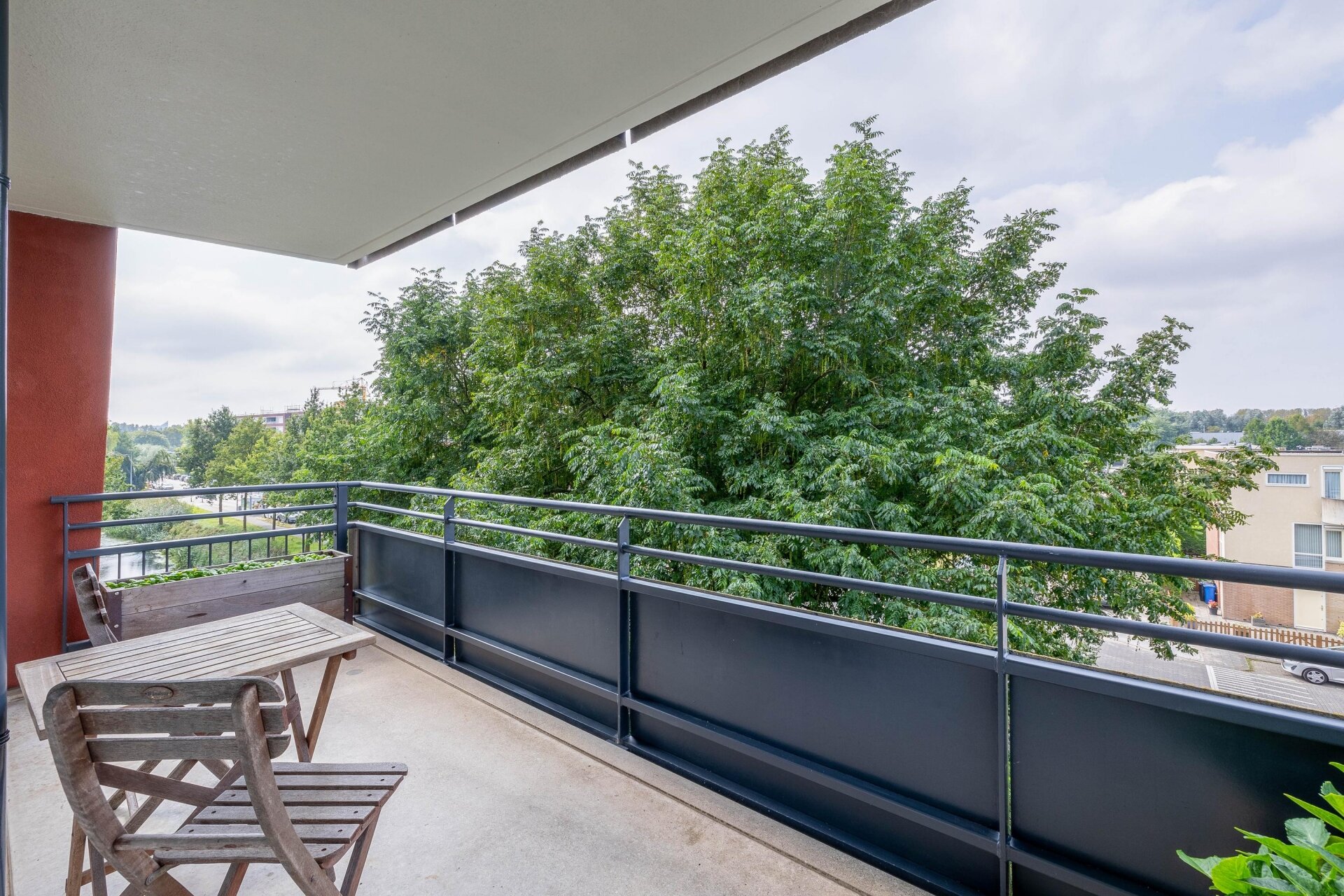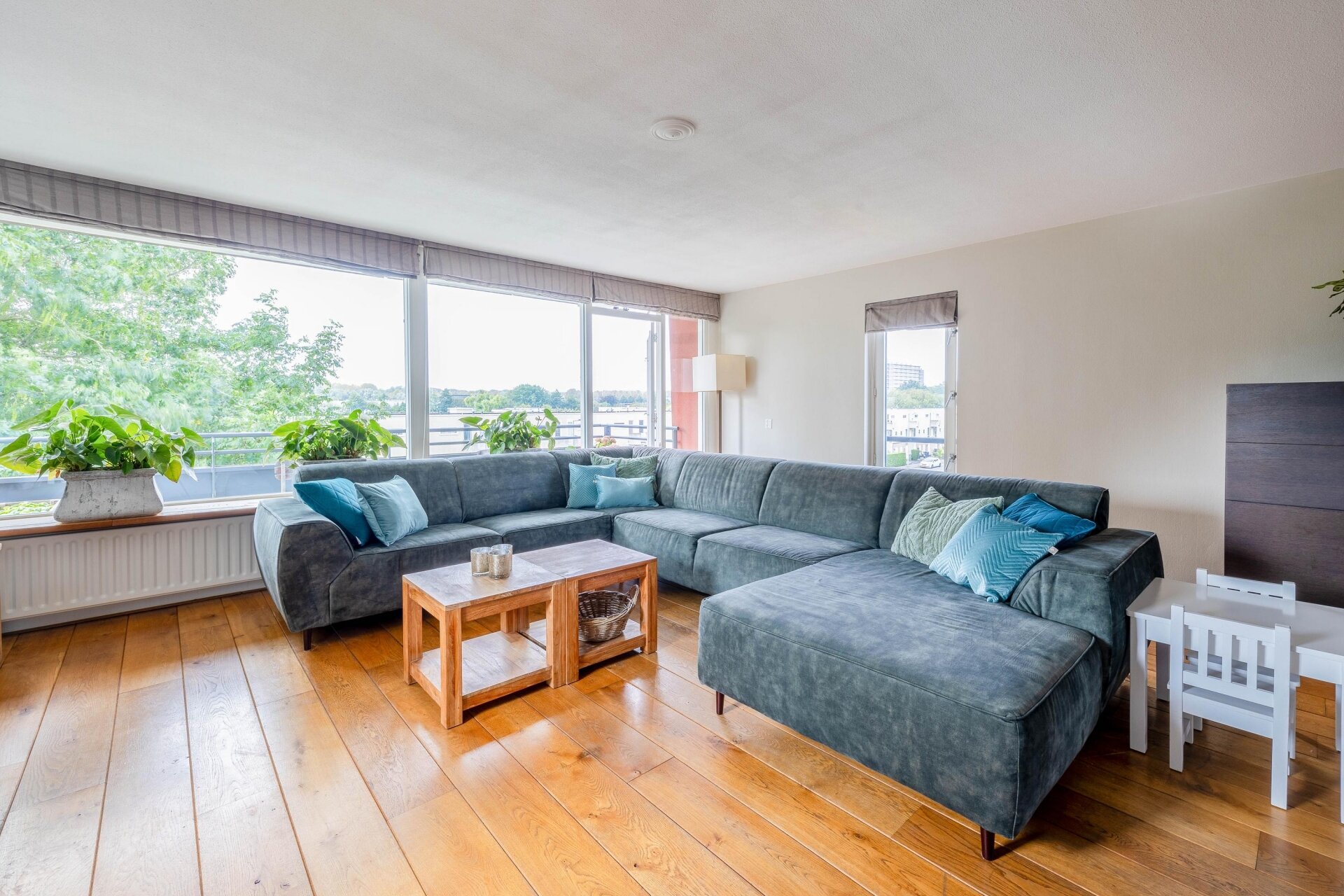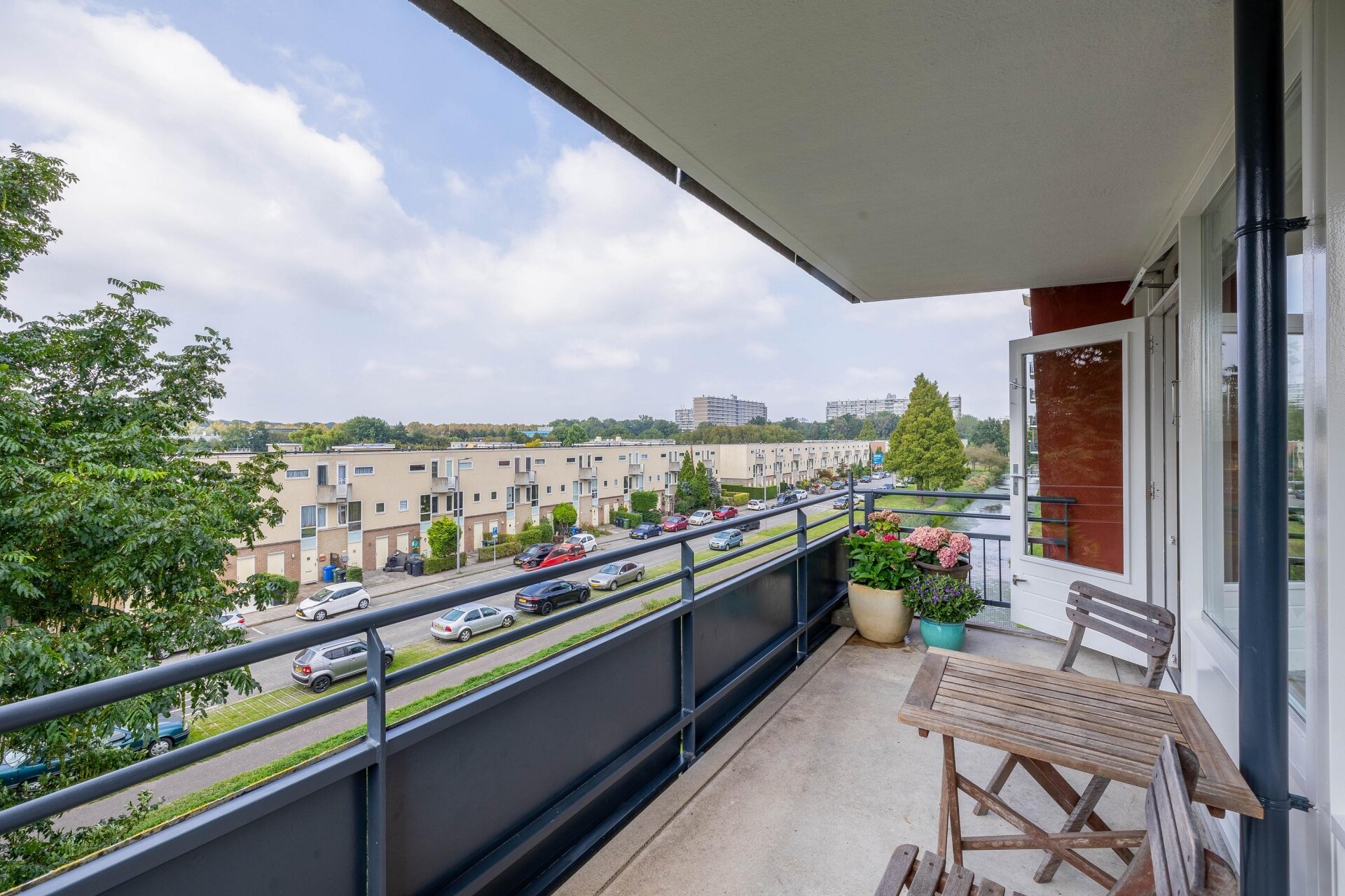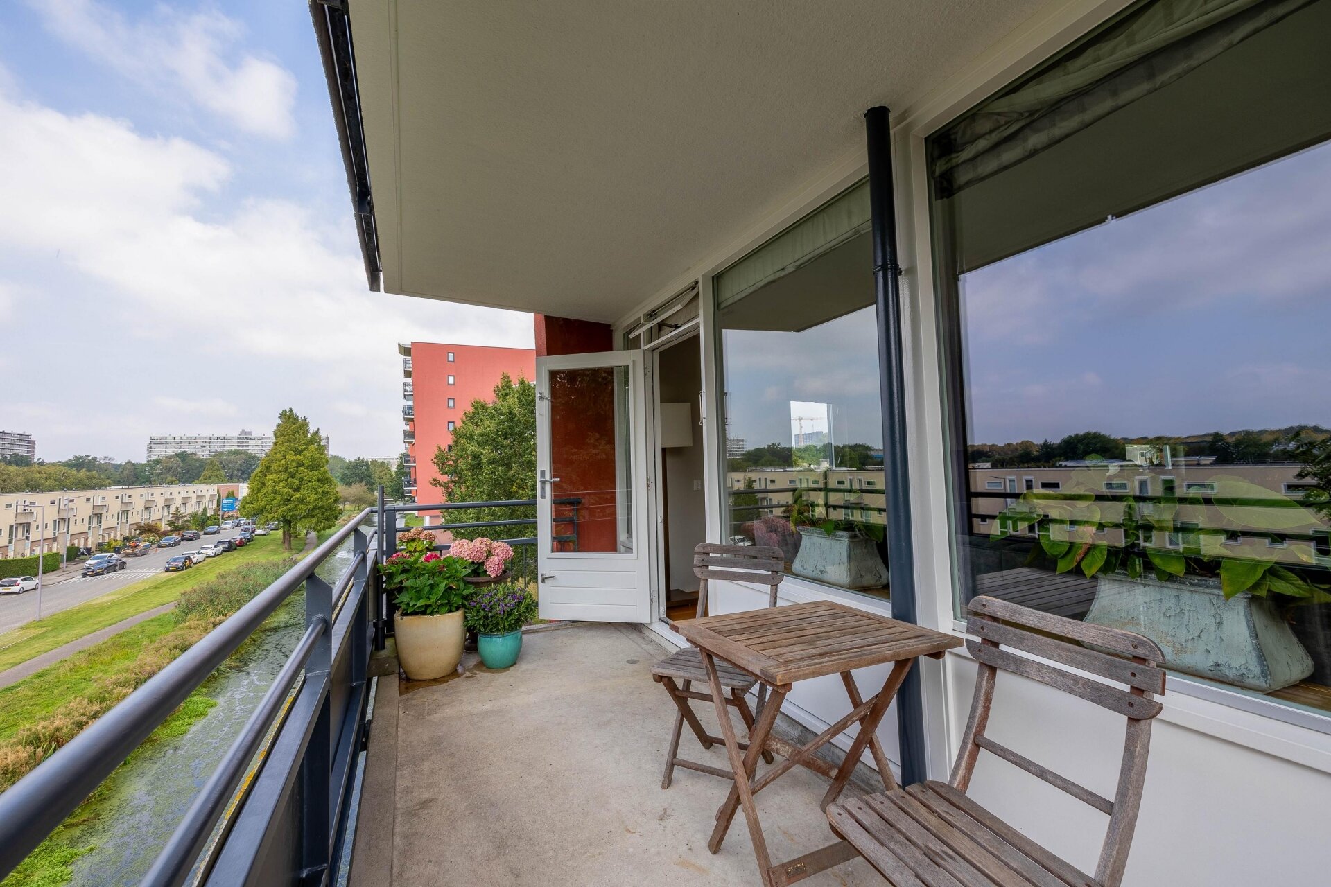 Vanuit de woonkamer is er middels een openslaande deur toegang tot het balkon met fraai uitzicht. Het balkon is gesitueerd op het westen, waardoor u de hele middag en avond van de zon kan genieten. Zelf het uitzicht ervaren? Neem contact met ons op om een afspraak te plannen.