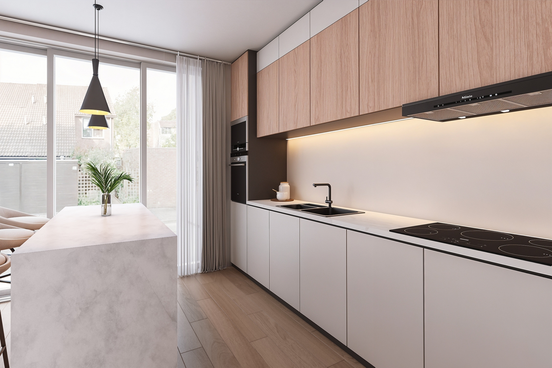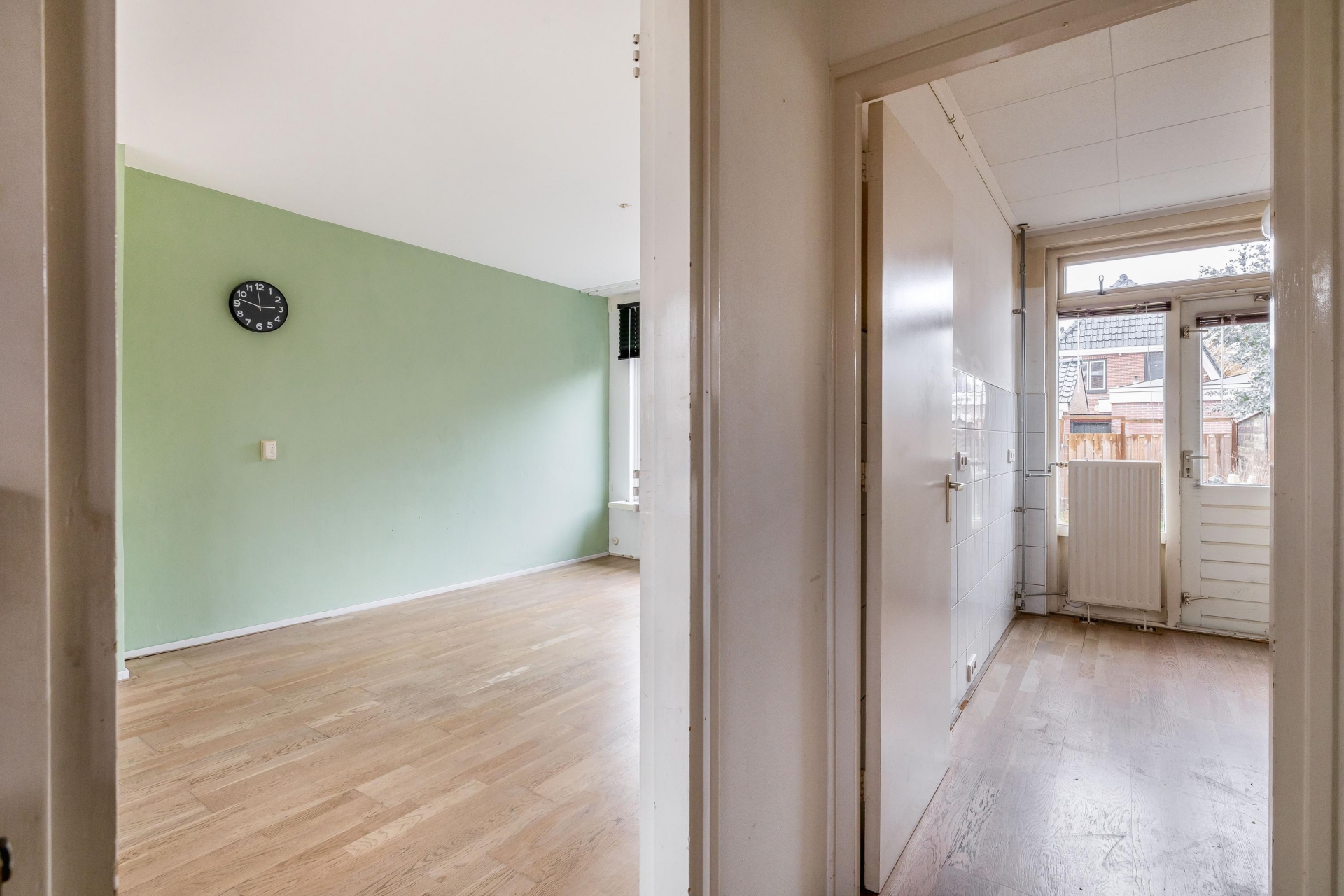 - doorzon woonkamer met dichte keuken;