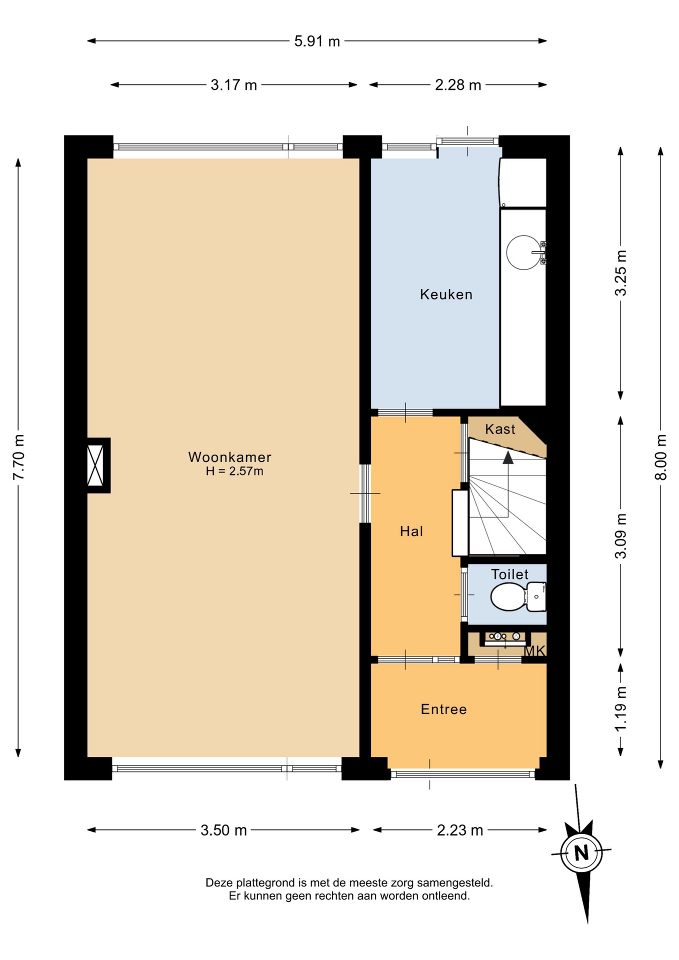 “Deze informatie is door ons met de nodige zorgvuldigheid samengesteld. Onzerzijds wordt echter geen enkele aansprakelijkheid aanvaard voor enige onvolledigheid, onjuistheid of anderszins, dan wel de gevolgen daarvan. Alle opgegeven maten en oppervlakten zijn indicatief.”