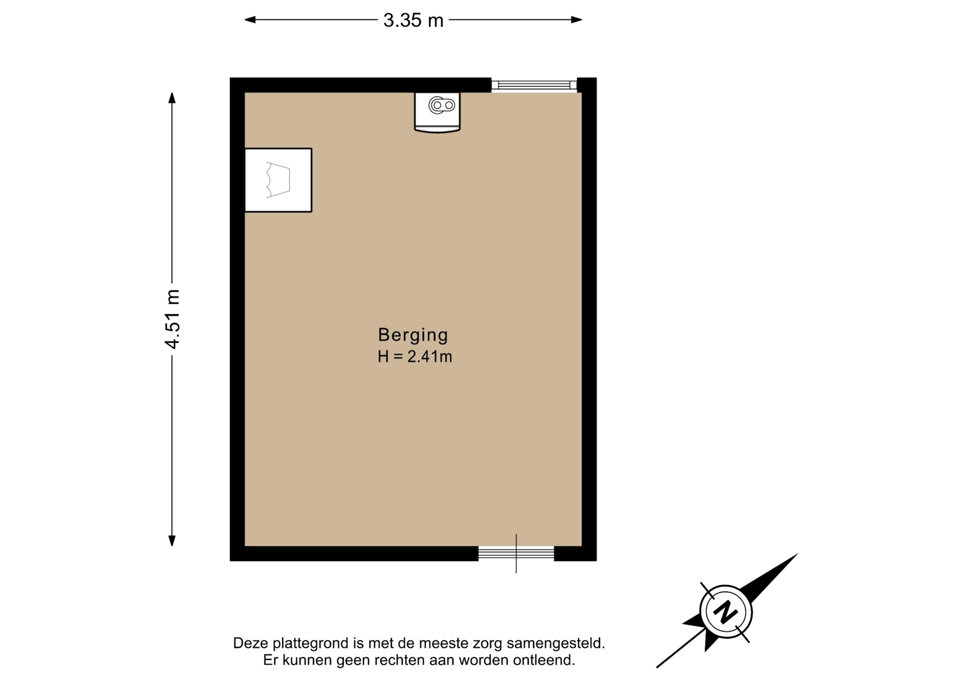 De woning beschikt over een zeer ruime berging van ca. 15 m² met daglicht, elektra en aansluitingen voor wasapparatuur. Daarnaast is er de mogelijkheid om deze ruimte (met toestemming van de VvE en onder voorwaarden) te betrekken bij de woning en bijvoorbeeld een extra slaapkamer te creëren. Ideaal voor wie nét wat meer ruimte wenst.