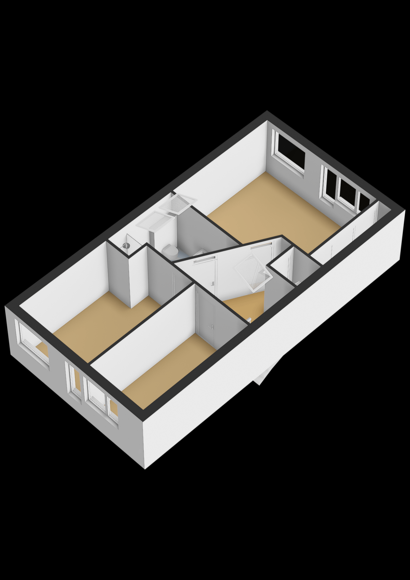 Op de eerste verdieping bevinden zich drie slaapkamers van goed formaat. De grootste slaapkamer ligt aan de achterzijde en biedt volop ruimte voor een tweepersoonsbed en een kast. De andere kamers zijn perfect als kinder, werk of hobbykamer.