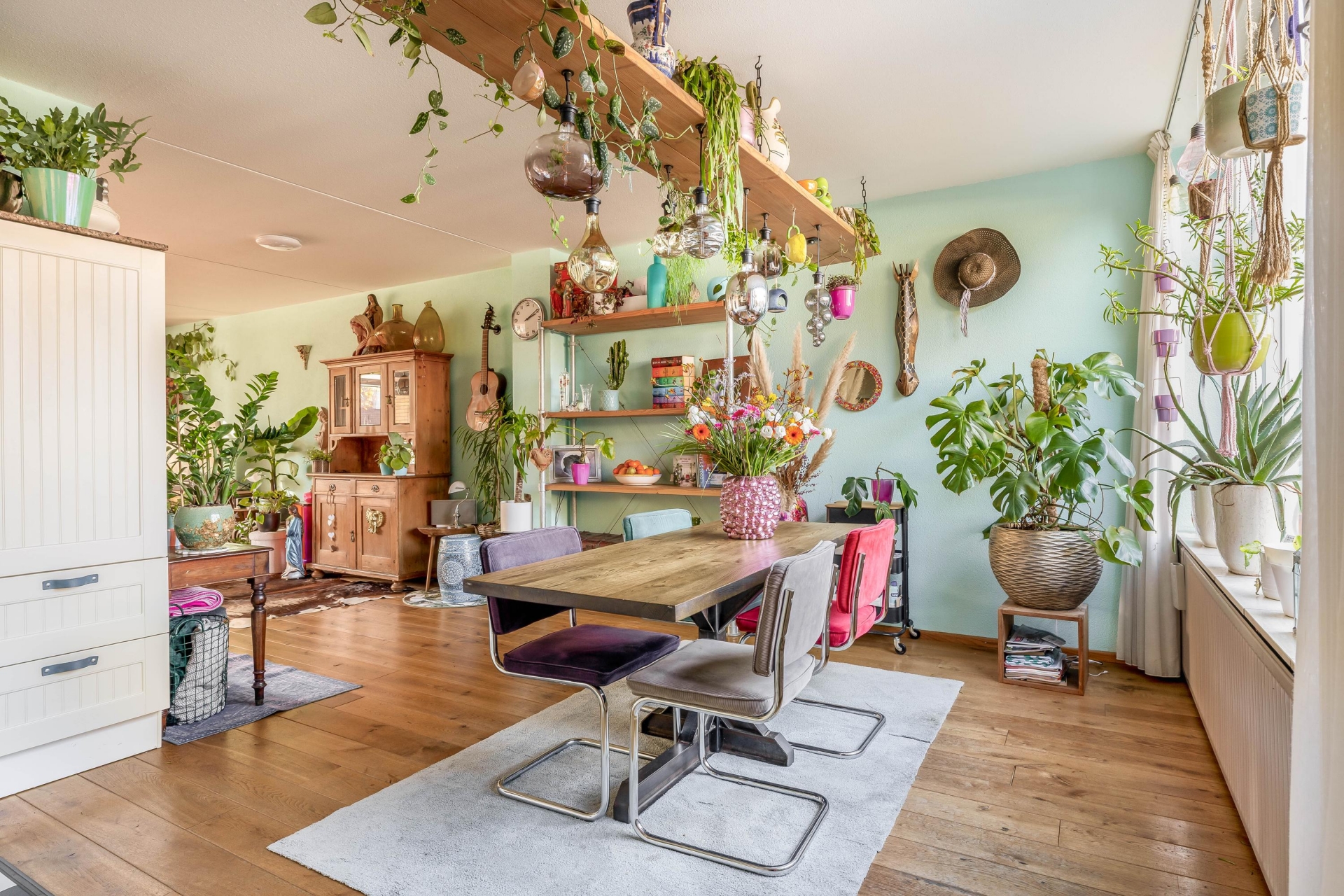 Wat direct opvalt is de fijne lichtinval in de woonkamer. Grote raampartijen zorgen voor veel daglicht en een open gevoel. De ruimte is groot genoeg voor een comfortabele zithoek aan de voorzijde en een eethoek richting de keuken. De indeling is praktisch en geeft je volop mogelijkheden om het naar eigen smaak in te richten.