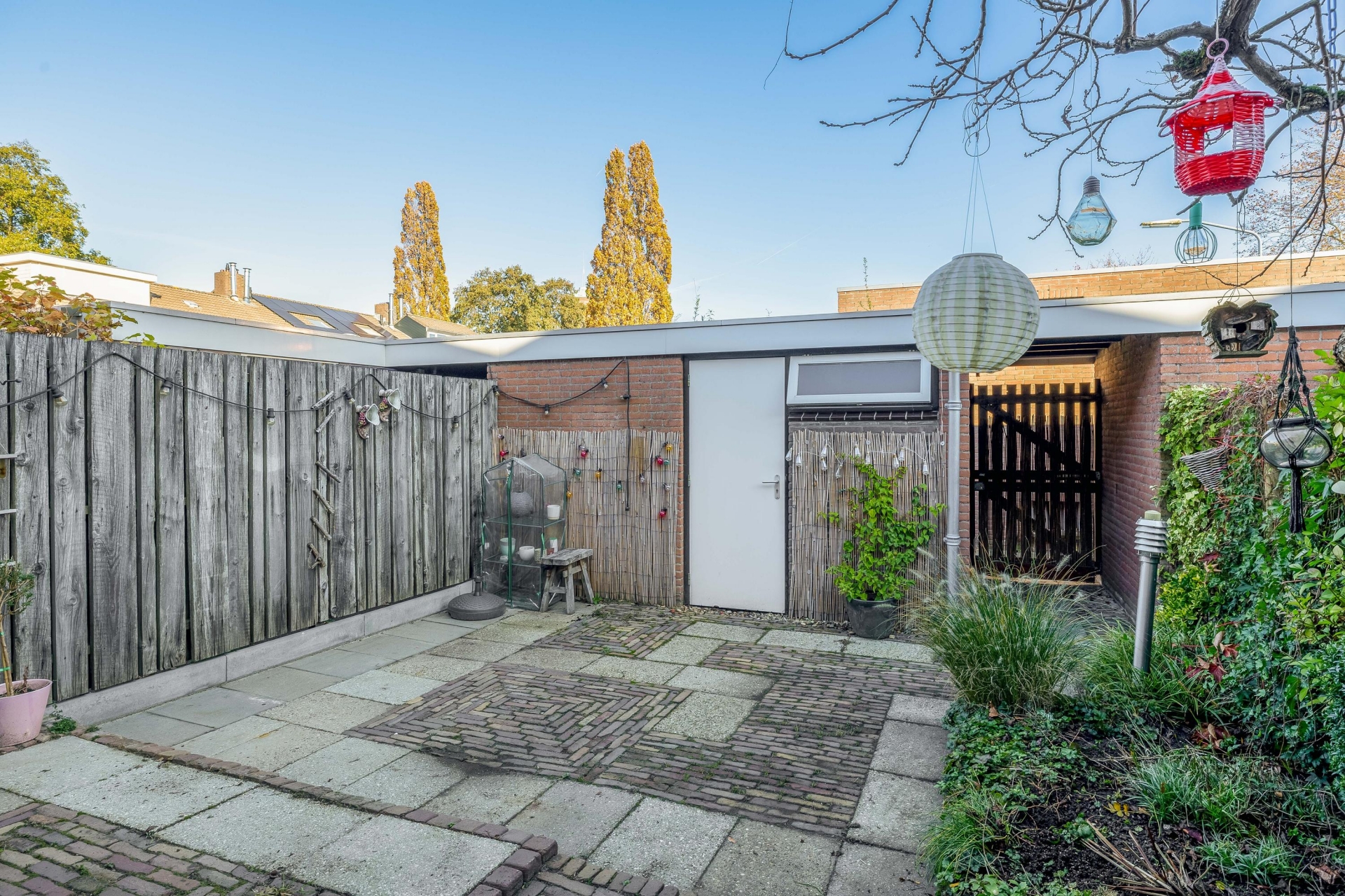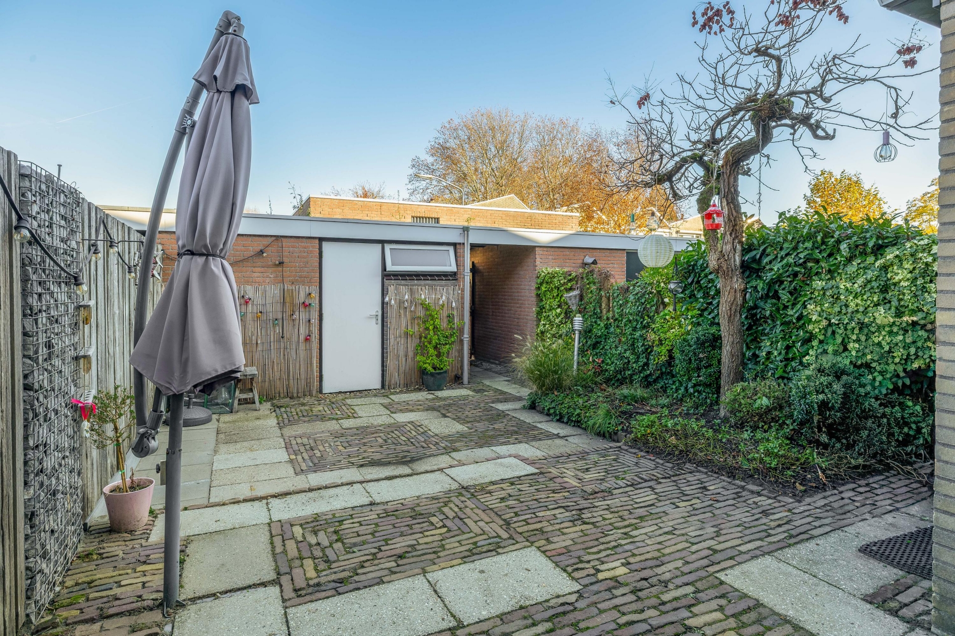 Achterin de tuin staat een vrijstaande berging voor fietsen en opslag. Daarnaast is er een achterom aanwezig, wat het dagelijks gebruik extra praktisch maakt.