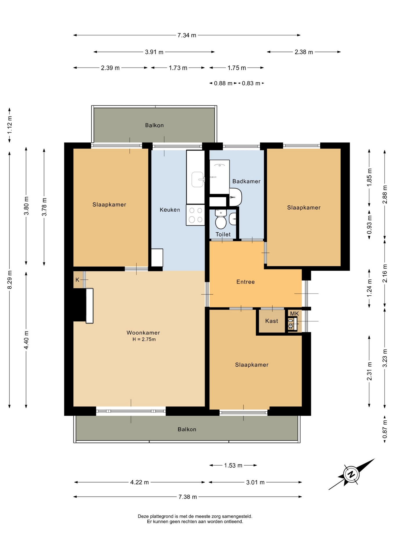 “Deze informatie is door ons met de nodige zorgvuldigheid samengesteld. Onzerzijds wordt echter geen enkele aansprakelijkheid aanvaard voor enige onvolledigheid, onjuistheid of anderszins, dan wel de gevolgen daarvan. Alle opgegeven maten en oppervlakten zijn indicatief.”