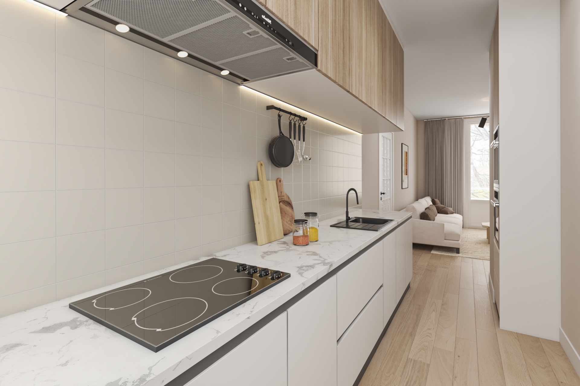 De ligging op de derde verdieping en de grote raampartijen zorgen voor een prettige lichtinval gedurende de dag. Hierdoor voelt het appartement direct ruim en aangenaam aan zodra je binnenkomt.
