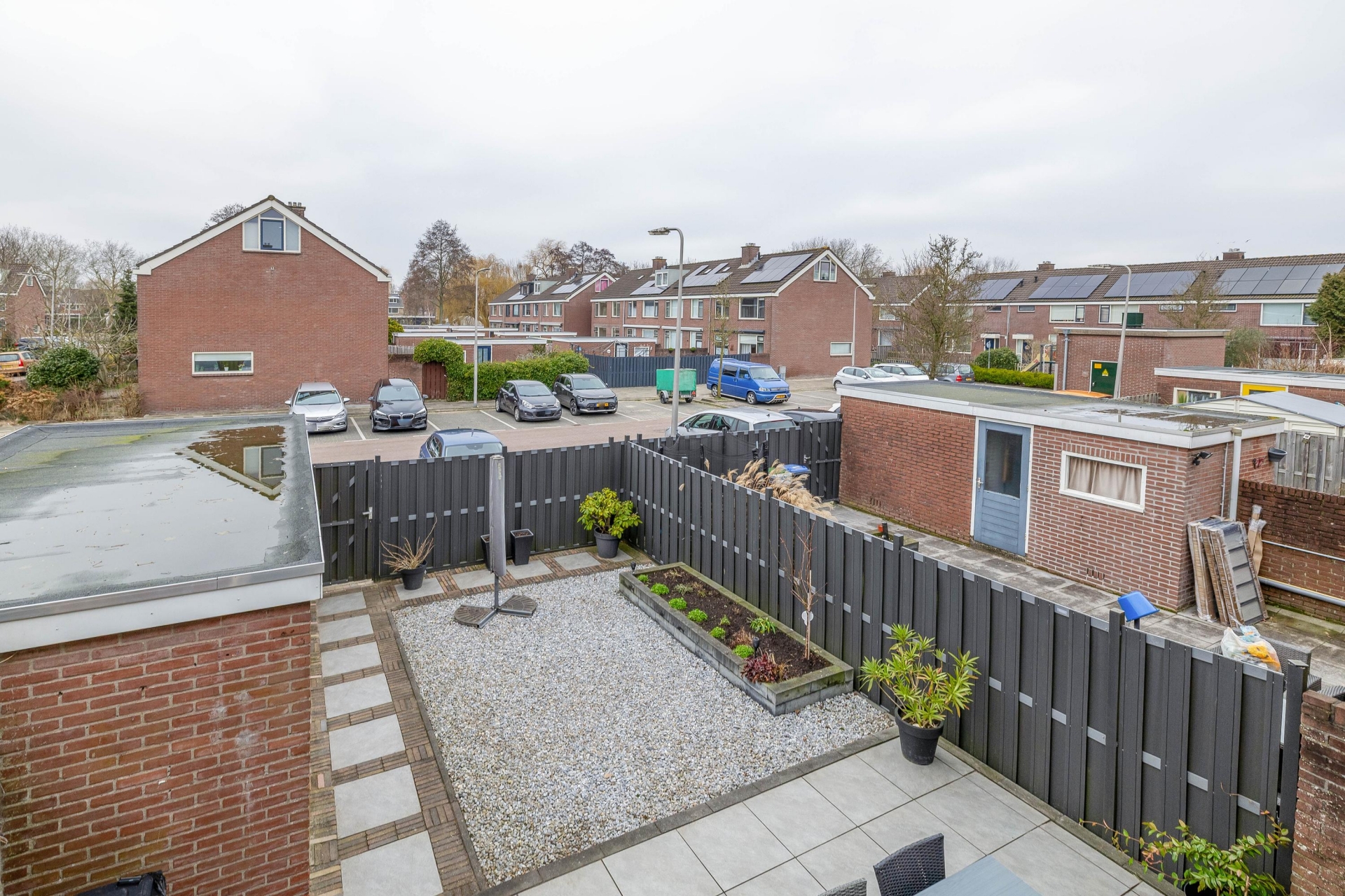 Achterin de tuin staat een vrijstaande stenen berging met een plat dak dat in 2025 is vernieuwd. Ideaal voor fietsen, gereedschap of tuinmeubilair. Daarnaast is er een praktische achterom aanwezig, wat altijd prettig is met kinderen of wanneer je met de fiets thuiskomt.