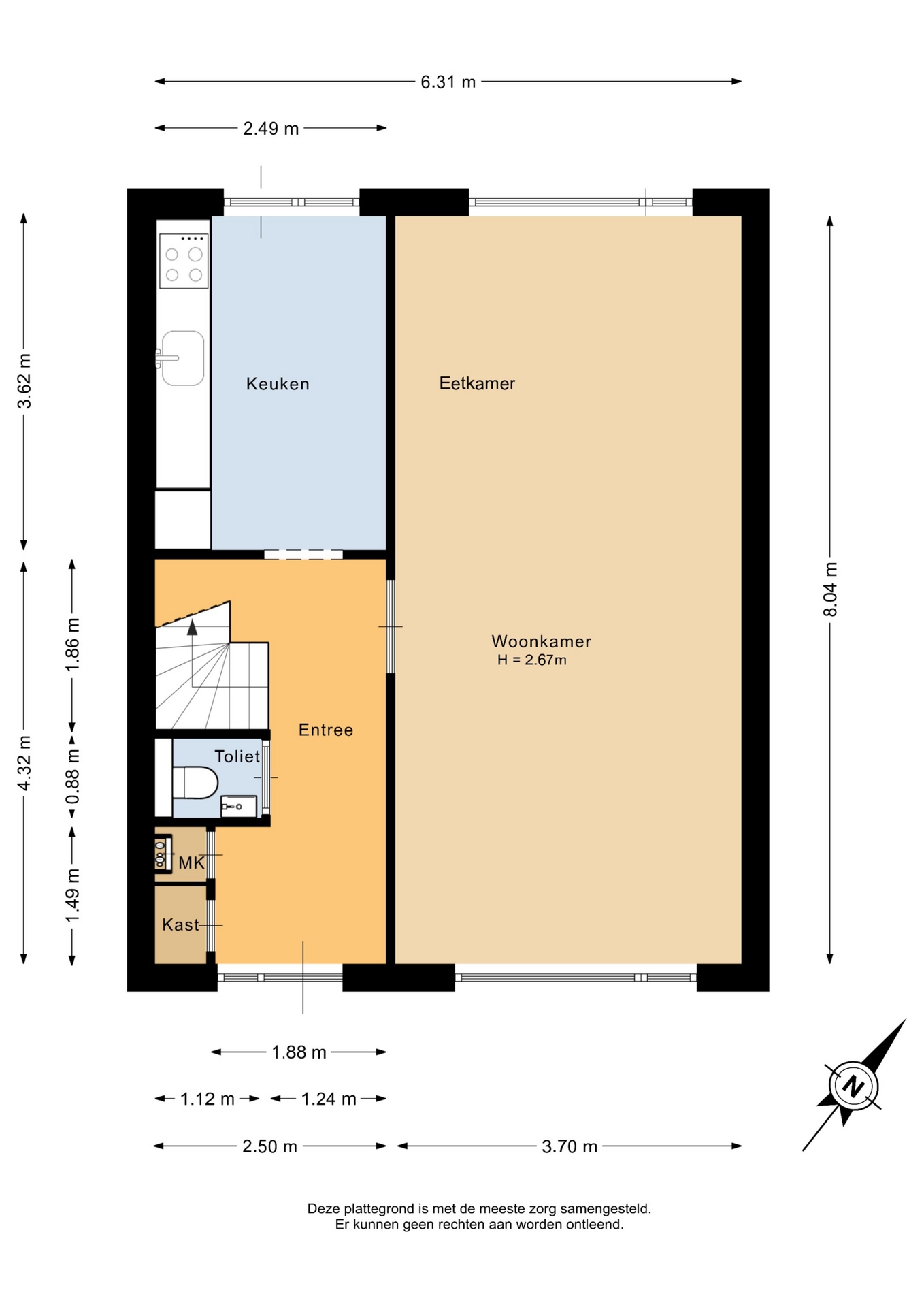“Deze informatie is door ons met de nodige zorgvuldigheid samengesteld. Onzerzijds wordt echter geen enkele aansprakelijkheid aanvaard voor enige onvolledigheid, onjuistheid of anderszins, dan wel de gevolgen daarvan. Alle opgegeven maten en oppervlakten zijn indicatief.”