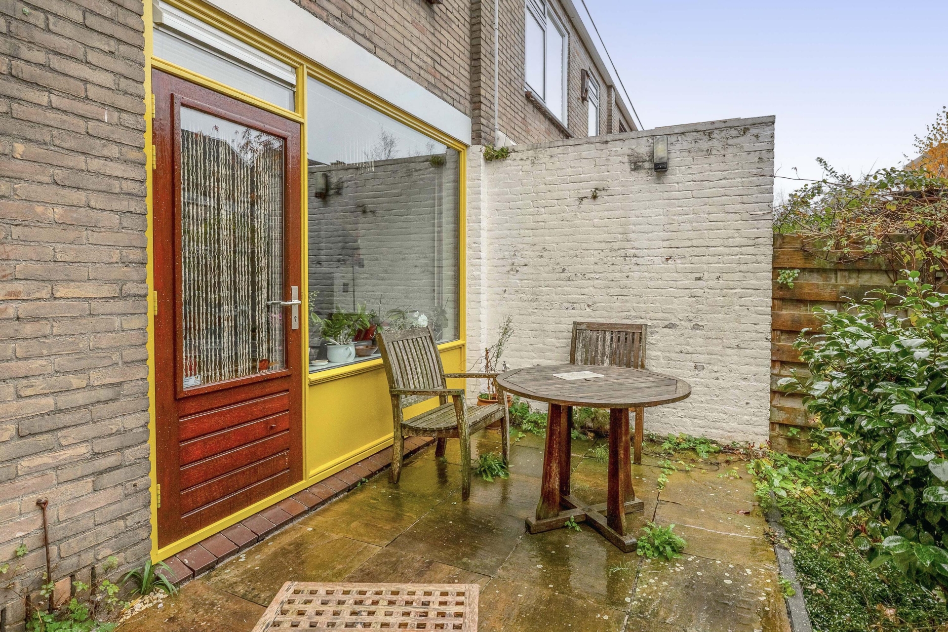 Weer beneden gekomen, gaan we via de tuindeur in de woonkamer naar de achtertuin.