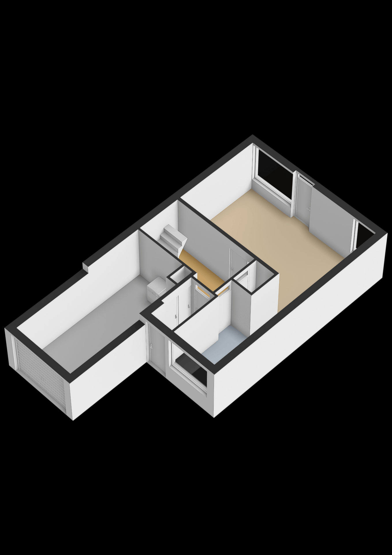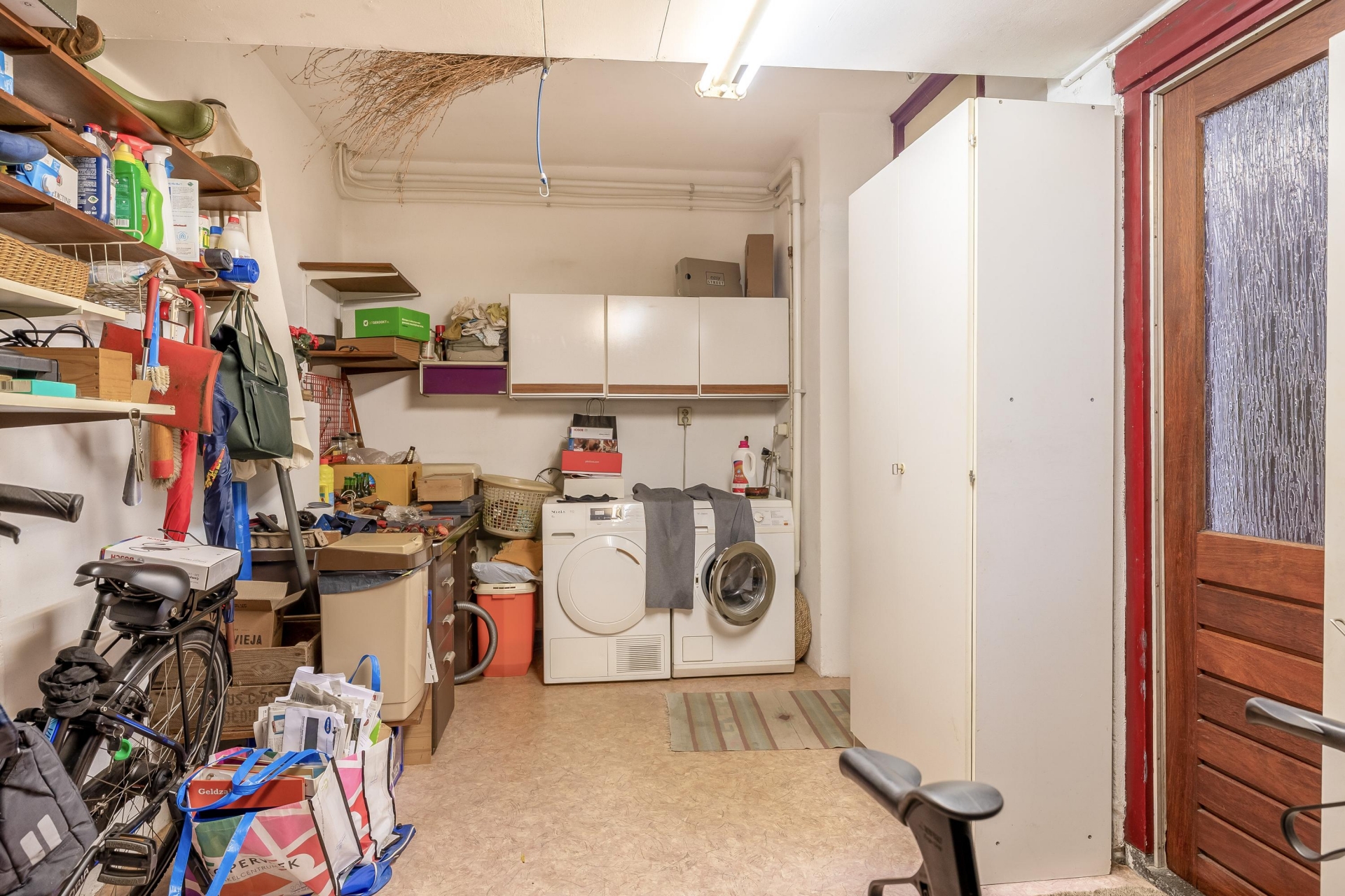Deze ruimte is nu in gebruik als berging en huisvest ook de aansluiting voor de wasmachine.