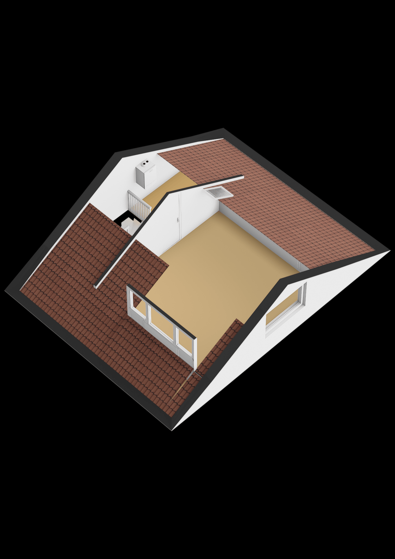 Vanaf de overloop, met opstelplaats van C.V. ketel, treffen we een grote zolderkamer (20m²), voorzien van een brede dakkapel.