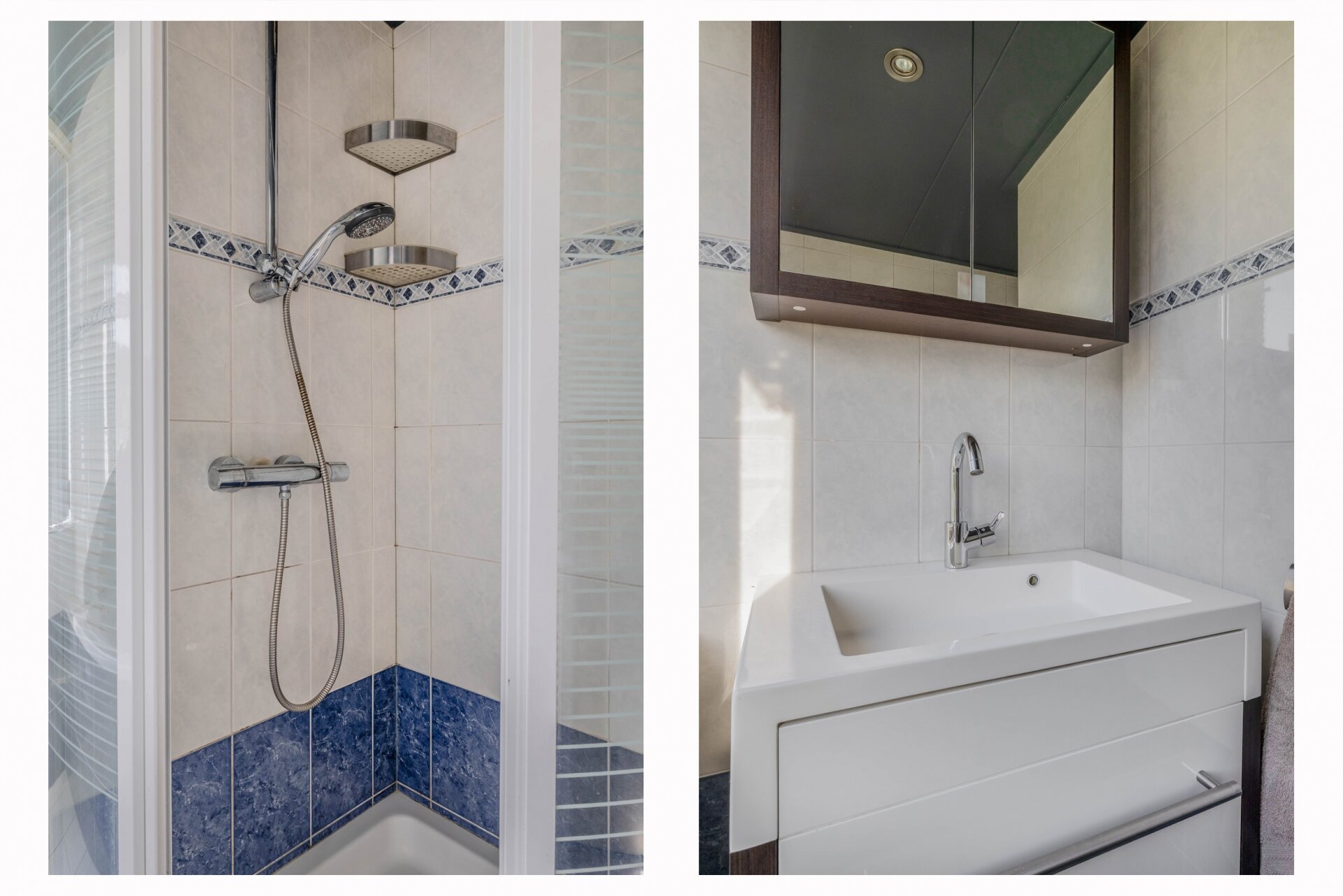 Op de bovenverdieping vind je twee slaapkamers, allebei voorzien van een dakkapel die zorgt voor extra ruimte, licht en stahoogte. De grootste slaapkamer ligt aan de achterzijde en biedt vrij uitzicht richting het groen. Ook de tweede slaapkamer is verrassend praktisch ingedeeld en kan dienen als werkplek, logeerkamer of kinderkamer. De badkamer bevindt zich ook op deze verdiepingdeze is netjes en functioneel ingericht.