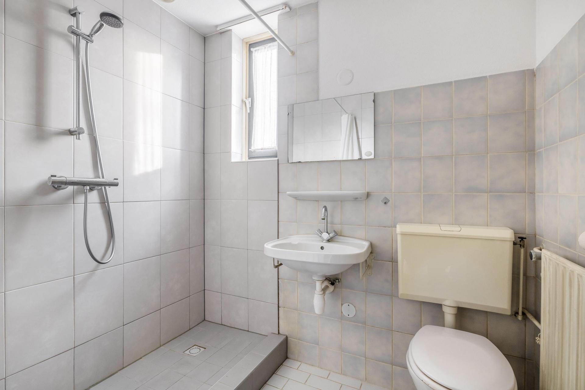 De woning beschikt over drie volwaardige woonlagen. Op de eerste verdieping vind je drie slaapkamers. De badkamer is functioneel en beschikt over een inloopdouche, wastafel en toilet.