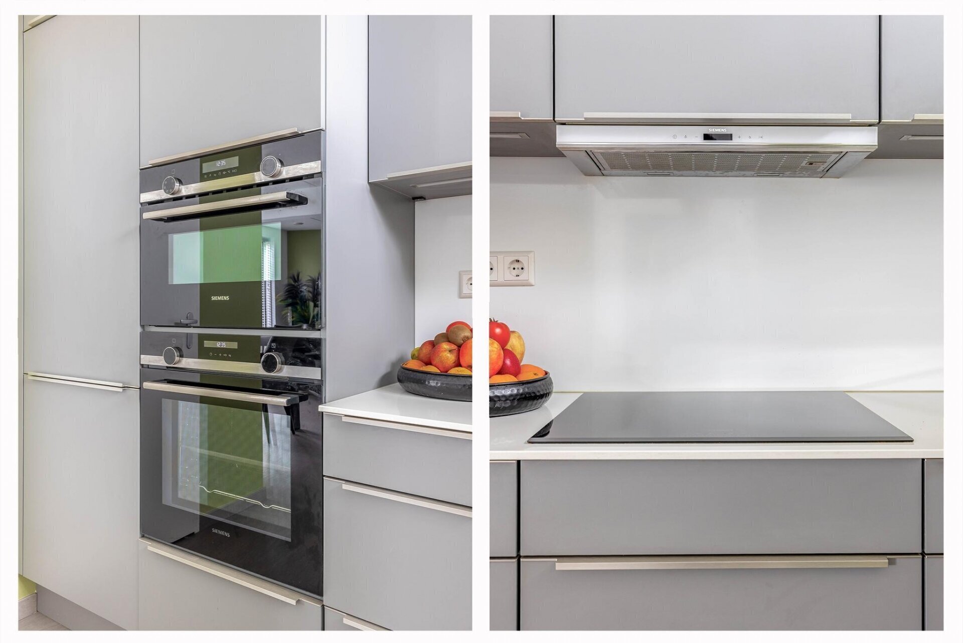 Op de begane grond word je verwelkomd in een lichte en open leefruimte, waar de keuken en woonkamer naadloos in elkaar overlopen. De open keuken is eigentijds en praktisch ingedeeld, met voldoende werkruimte en zicht op de woonkamer, waardoor koken en samenzijn perfect samengaan. De woonkamer biedt volop ruimte voor een gezellige zithoek én een ruime eettafel. De vloer is volledig betegeld en de muren zijn strak gestuct. In de hal vind je het toilet, volledig betegeld en voorzien van een hangend toilet.