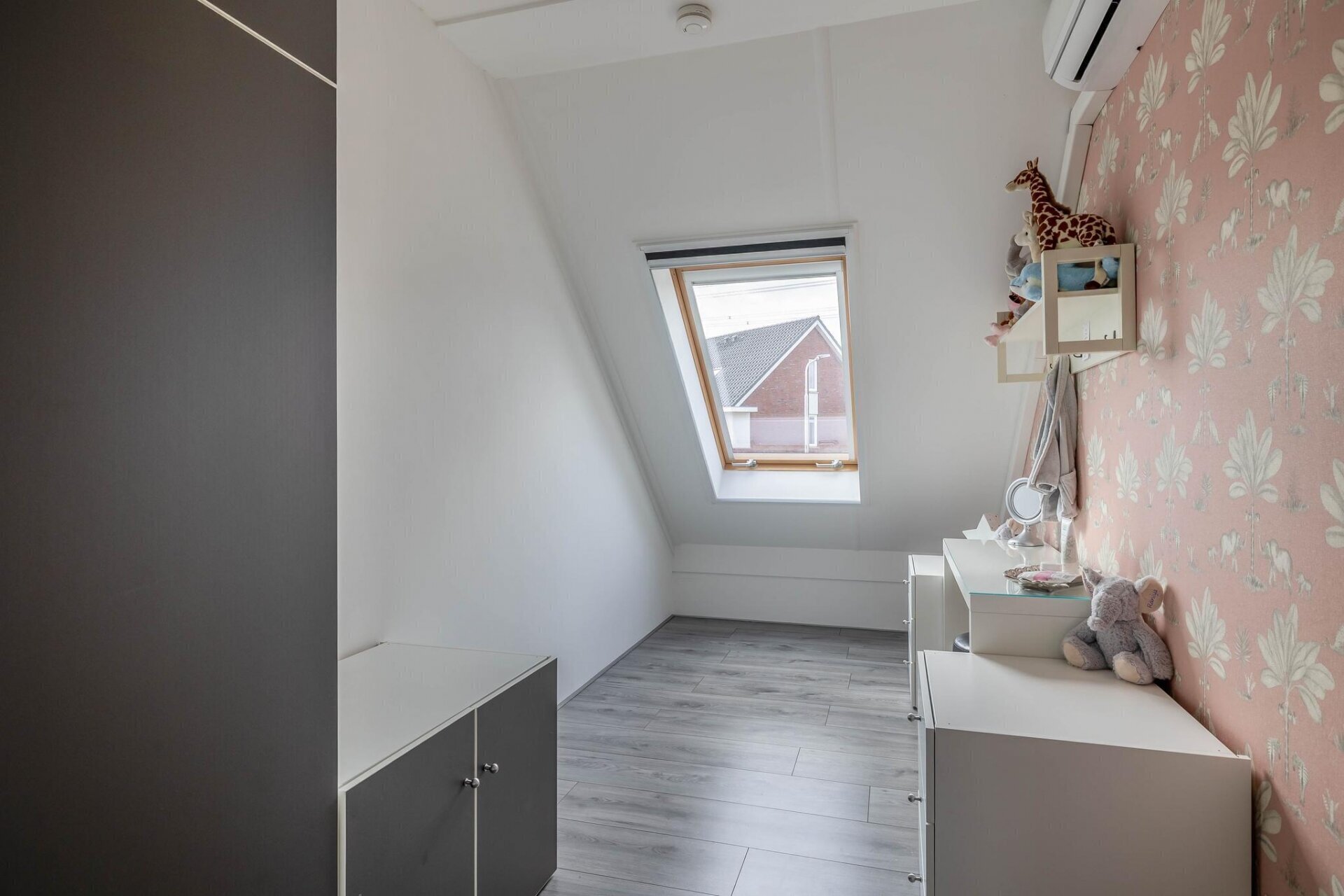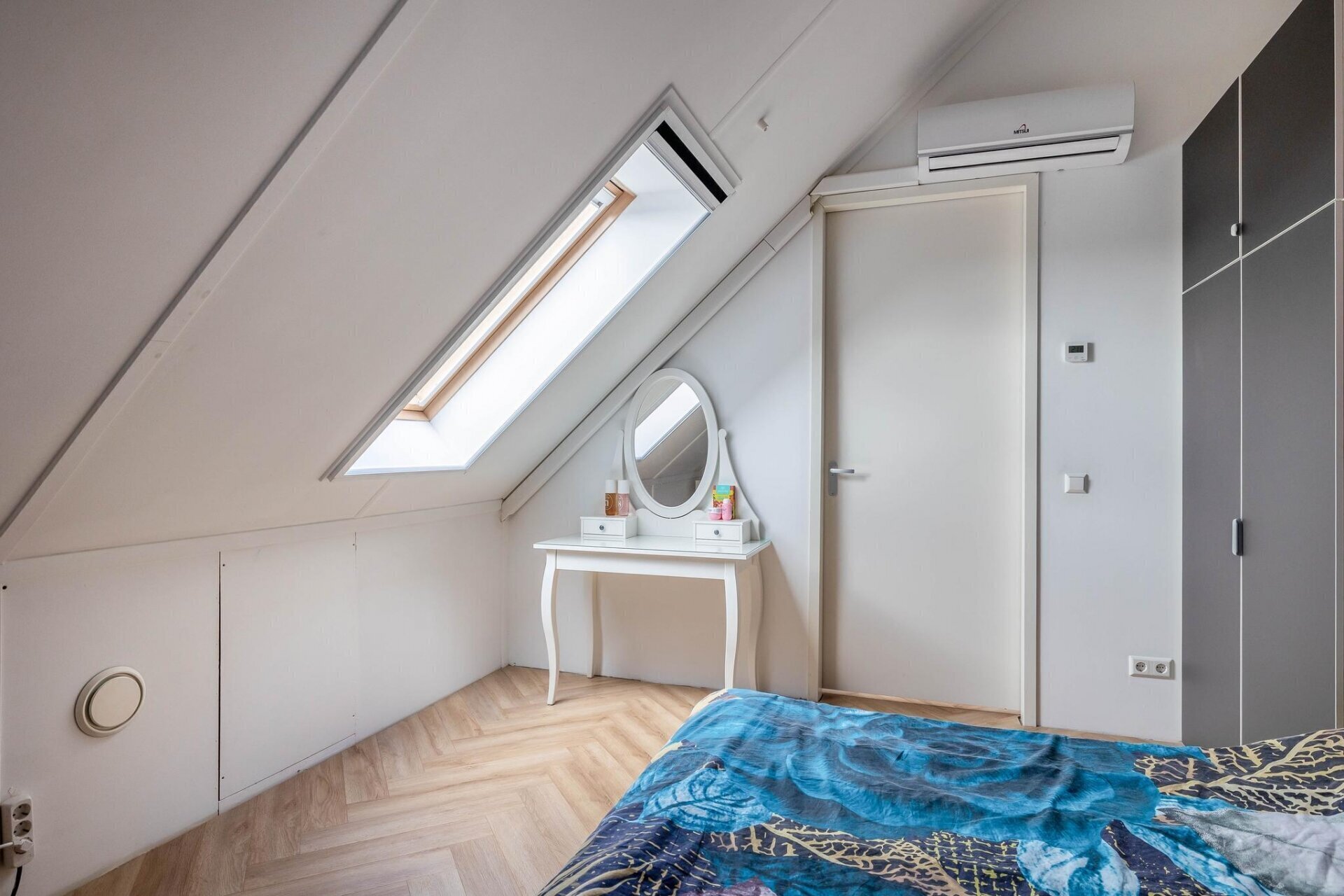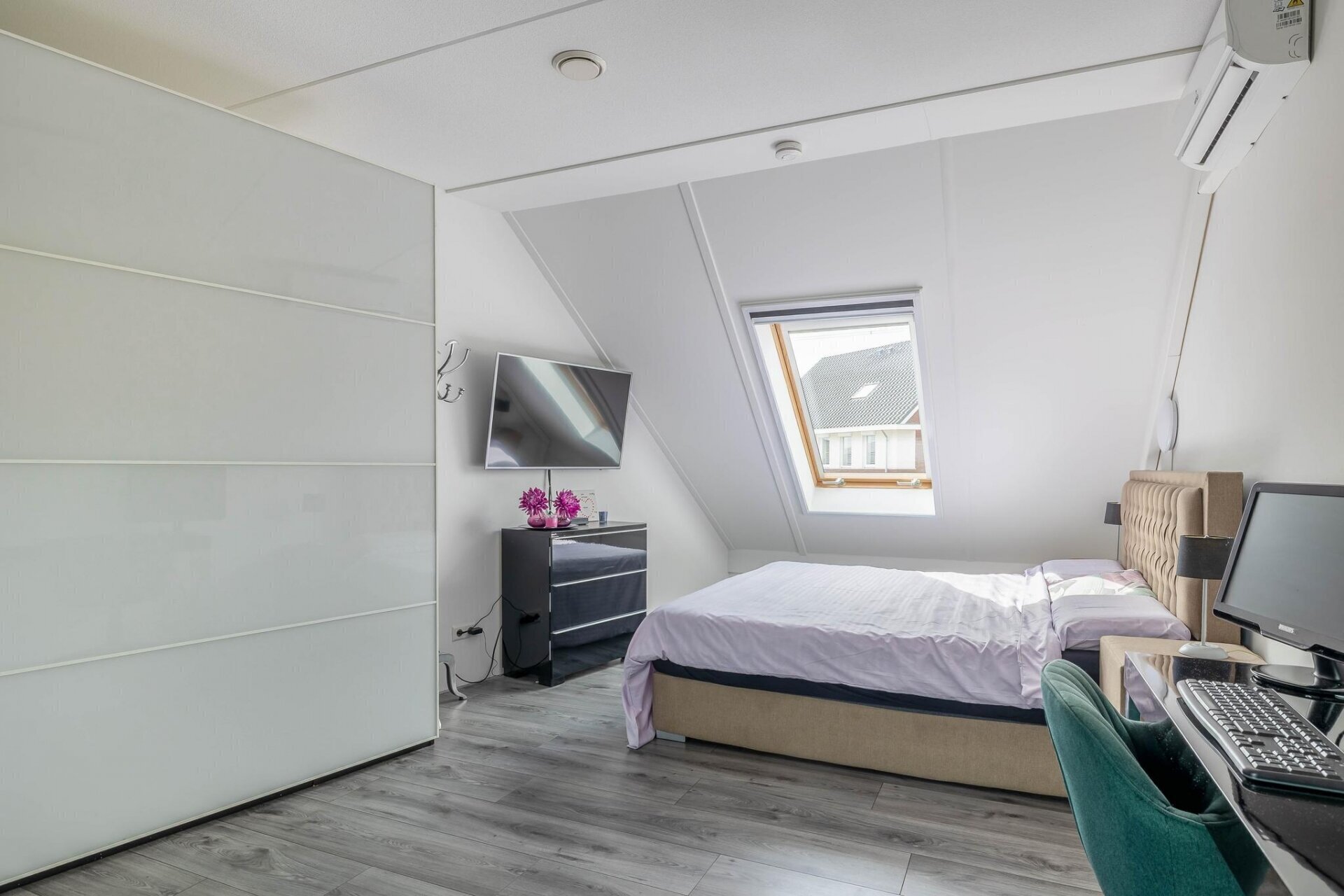 De tweede verdieping is net zo indrukwekkend. Hier bevindt zich een royale vierde slaapkamer, eveneens voorzien van een laminaatvloer en airco. Daarnaast is er voldoende ruimte voor het plaatsen van een bureau/sportapparatuur. Dankzij de afmetingen en de nette afwerking is ook deze verdieping volledig in lijn met de rest van het huis.
