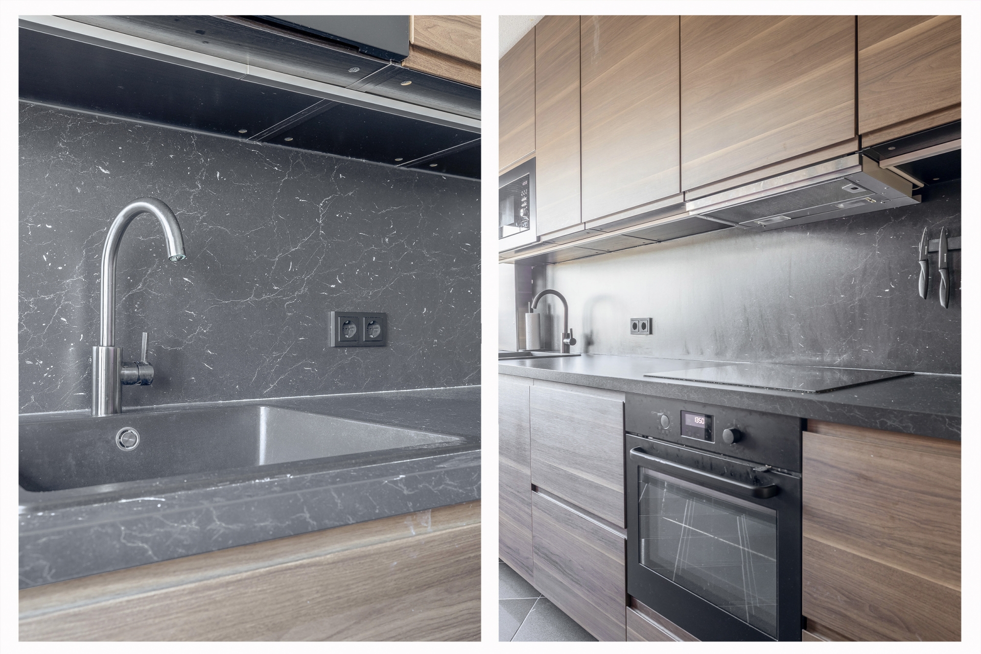 De vergrote keuken (ca. 8 m²) vormt het hart van de woning. Uitgevoerd in een praktische rechte opstelling en voorzien van een 4-pits inductiekookplaat en koel-vriescombinatie, is dit een fijne ruimte voor dagelijks gemak. Hier bevinden zich tevens de wasmachineaansluiting en de CV-installatie, subtiel geïntegreerd.