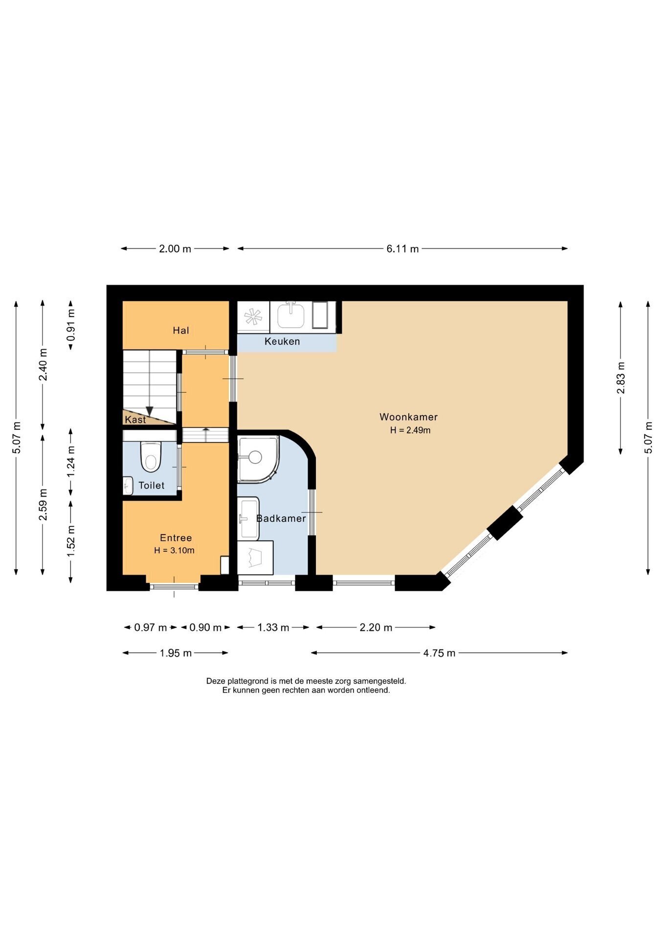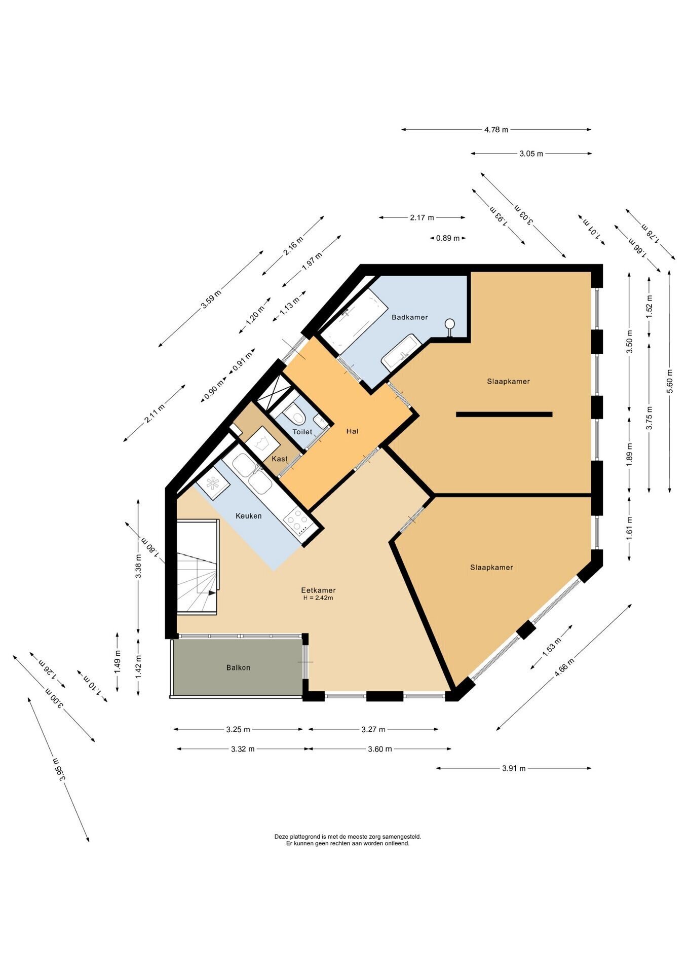 “Deze informatie is door ons met de nodige zorgvuldigheid samengesteld. Onzerzijds wordt echter geen enkele aansprakelijkheid aanvaard voor enige onvolledigheid, onjuistheid of anderszins, dan wel de gevolgen daarvan. Alle opgegeven maten en oppervlakten zijn indicatief.”