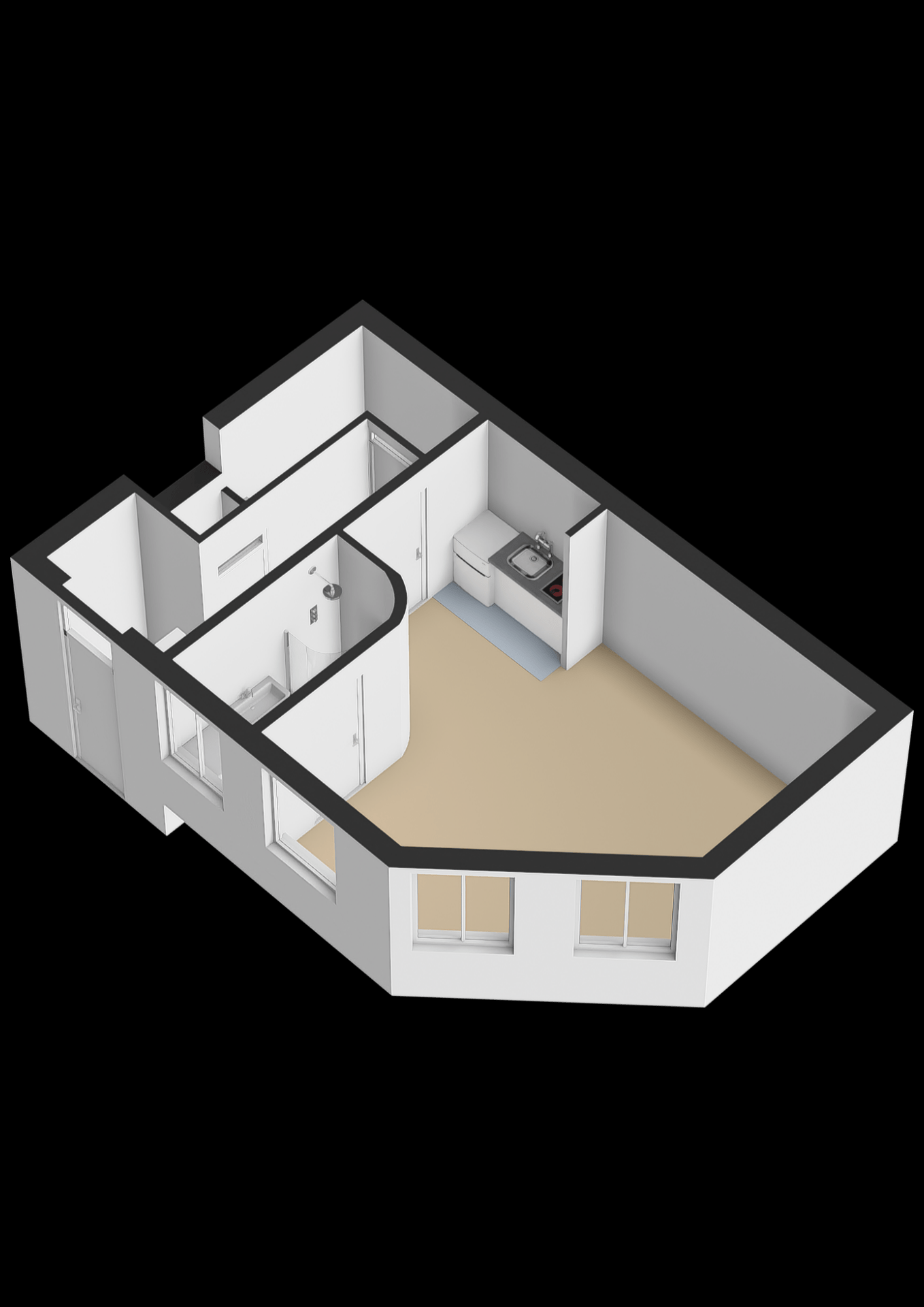 • Een open studio met een kitchenette.