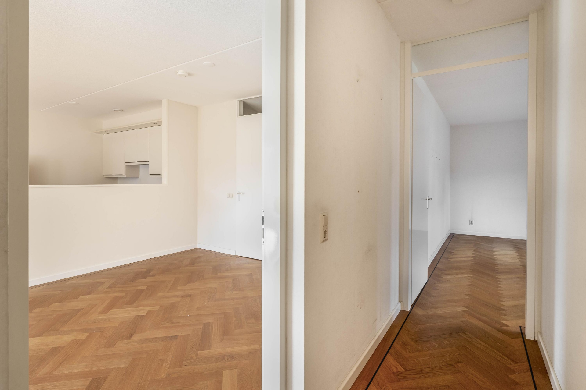 - Fraaie houten visgraat vloer aanwezig;