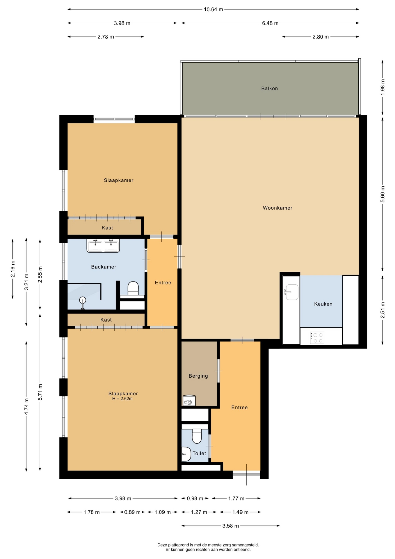 “Deze informatie is door ons met de nodige zorgvuldigheid samengesteld. Onzerzijds wordt echter geen enkele aansprakelijkheid aanvaard voor enige onvolledigheid, onjuistheid of anderszins, dan wel de gevolgen daarvan. Alle opgegeven maten en oppervlakten zijn indicatief.”