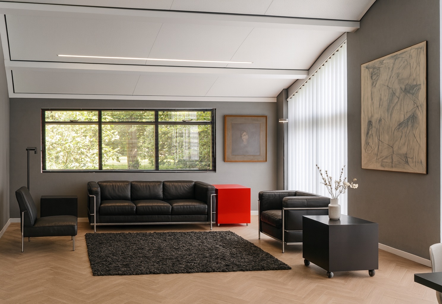 De villa wordt omringd door een schitterende, privacybiedende tuin met twee ruime terrassen, waaronder één overdekt en beschut onder het doorlopende dak. Deze onder architectuur gebouwde woning biedt volop mogelijkheden voor diverse doeleinden, zoals een kantoor, praktijkruimte of atelier aan huis.
