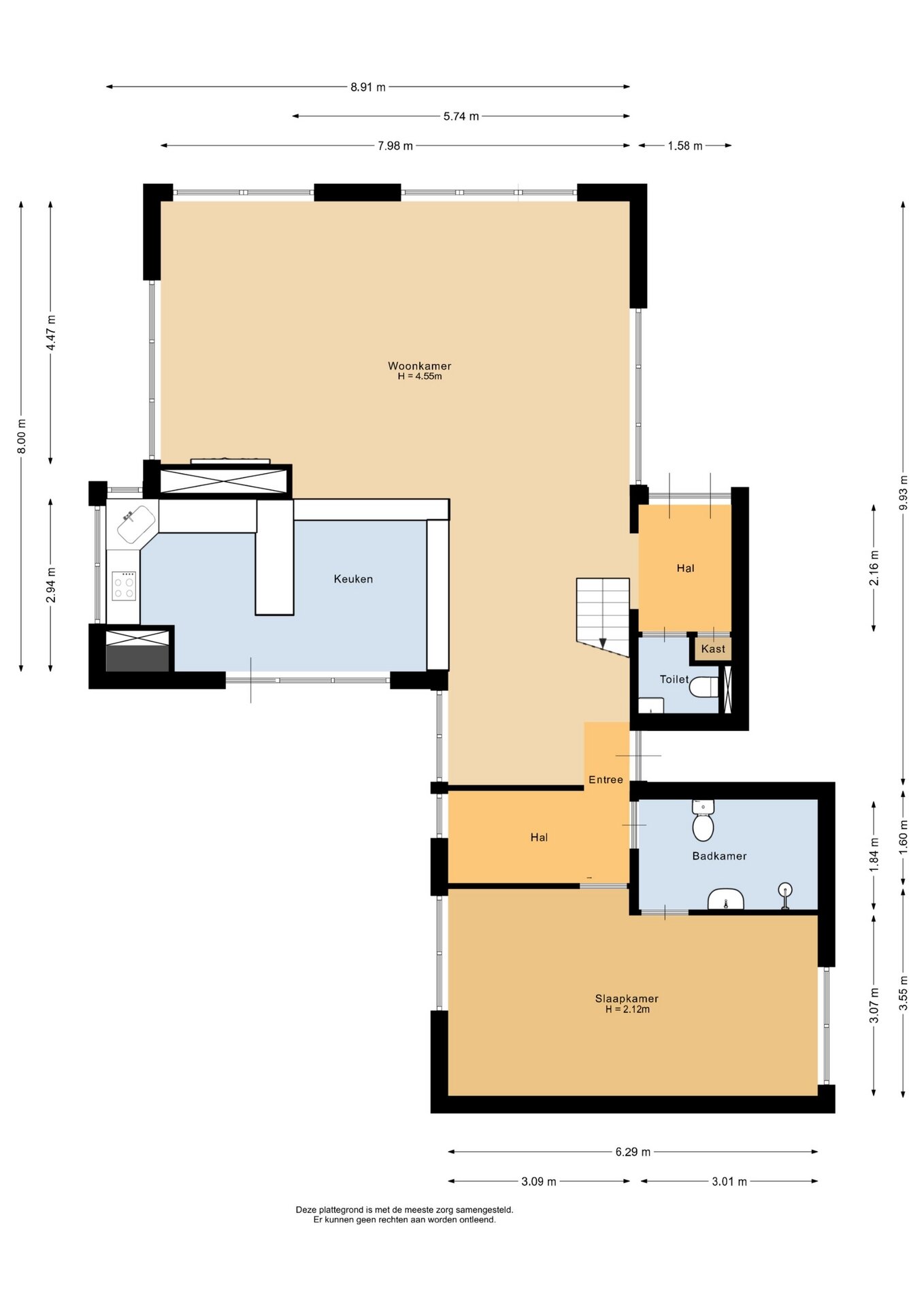"Deze informatie is door ons met de nodige zorgvuldigheid samengesteld. Onzerzijds wordt echter geen enkele aansprakelijkheid aanvaard voor enige onvolledigheid, onjuistheid of anderszins, dan wel de gevolgen daarvan. Alle opgegeven maten en oppervlakten zijn indicatief. Van toepassing zijn de NVM voorwaarden".
