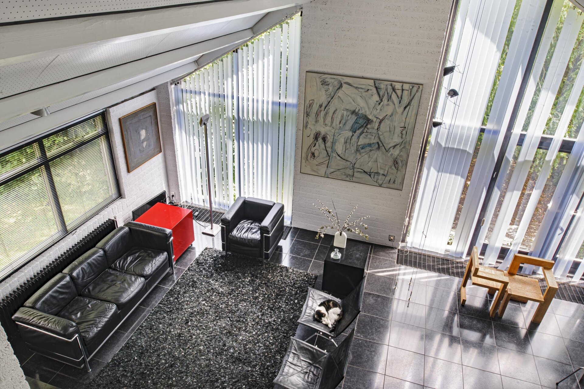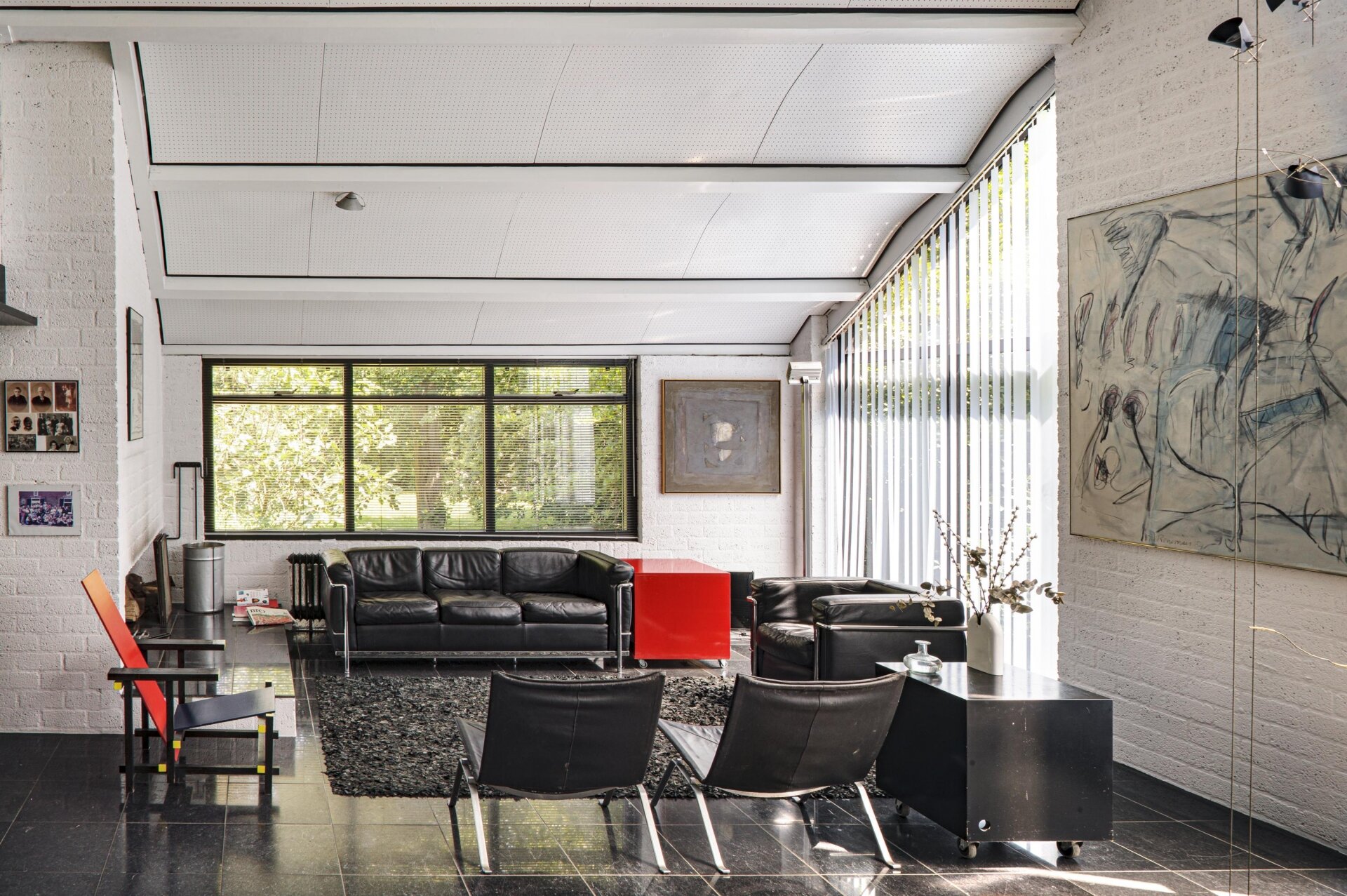 De villa wordt omringd door een schitterende, privacybiedende tuin met twee ruime terrassen, waaronder één overdekt en beschut onder het doorlopende dak. Deze onder architectuur gebouwde woning biedt volop mogelijkheden voor diverse doeleinden, zoals een kantoor, praktijkruimte of atelier aan huis.