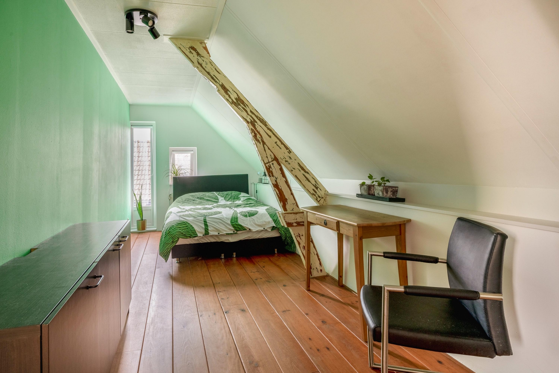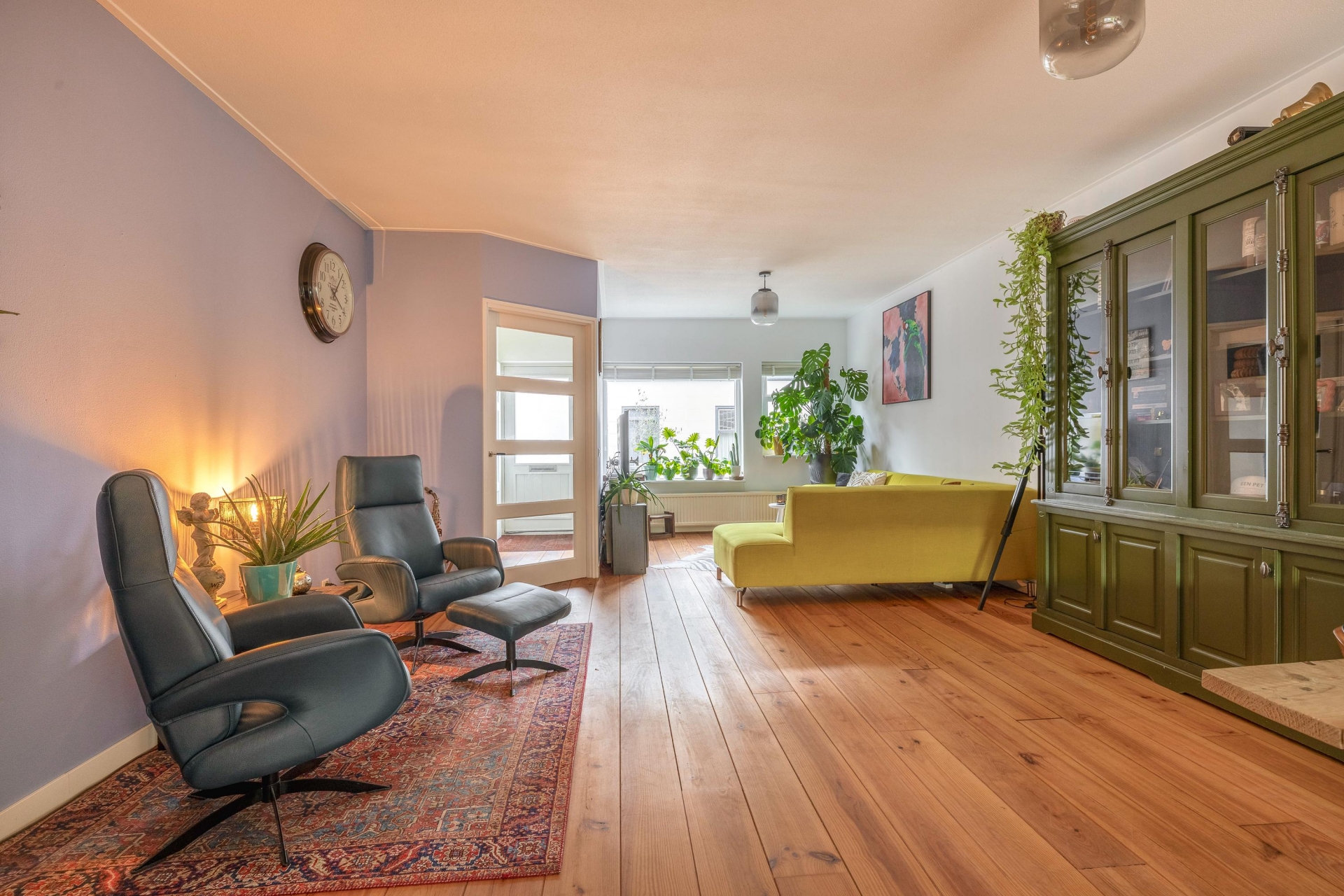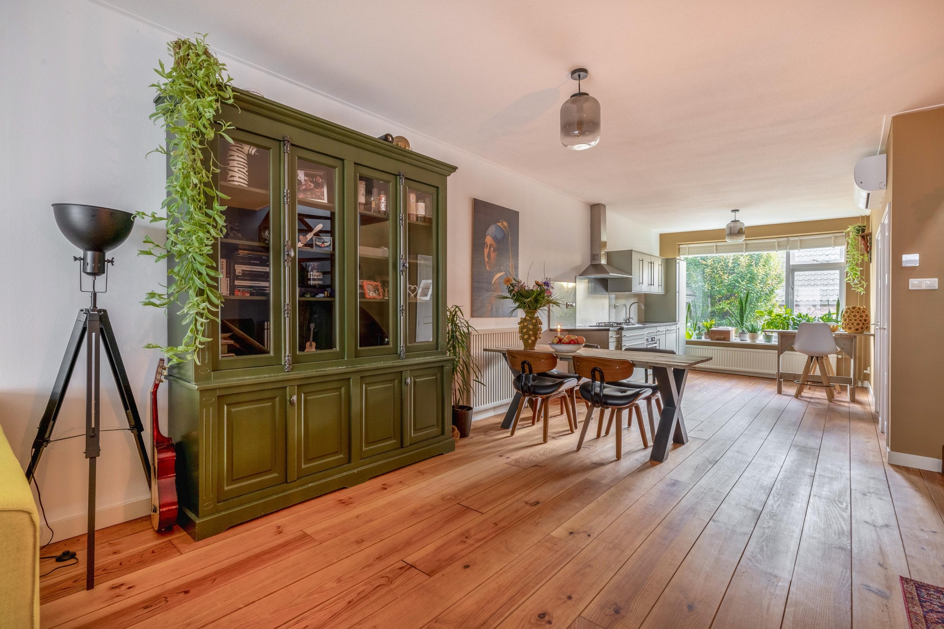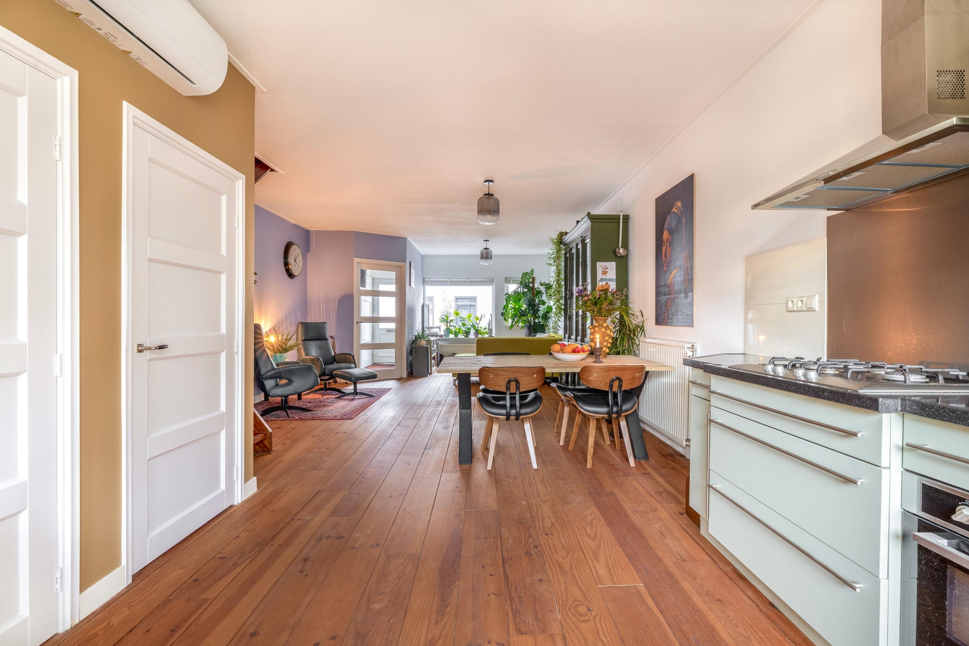 Aan de achterzijde ligt de keuken, die ruim is opgezet en voldoende plek biedt voor een eethoek. Vanuit hier kijk je mooi de tuin in, wat het een fijne plek maakt om te koken en tegelijk contact te houden met buiten. De indeling is praktisch en biedt volop mogelijkheden om deze ruimte eventueel verder te moderniseren of anders in te delen.