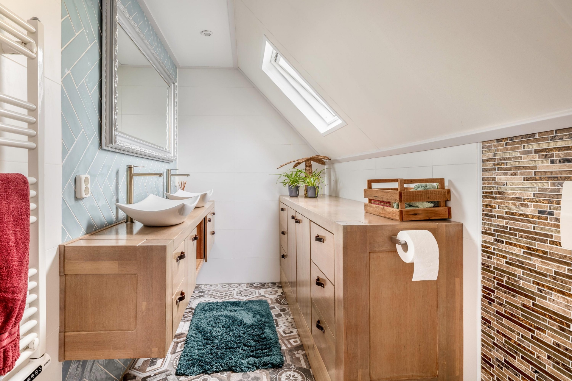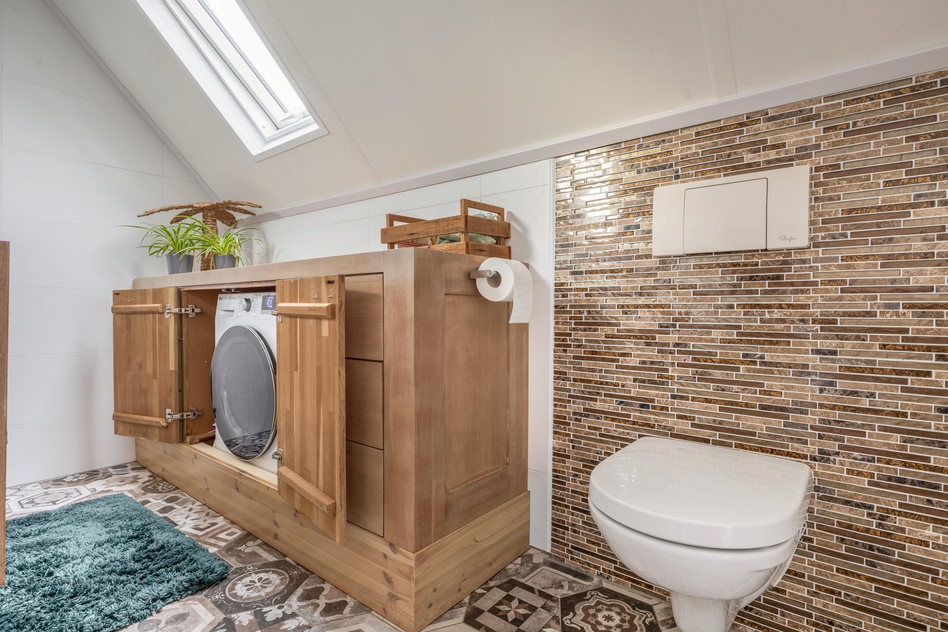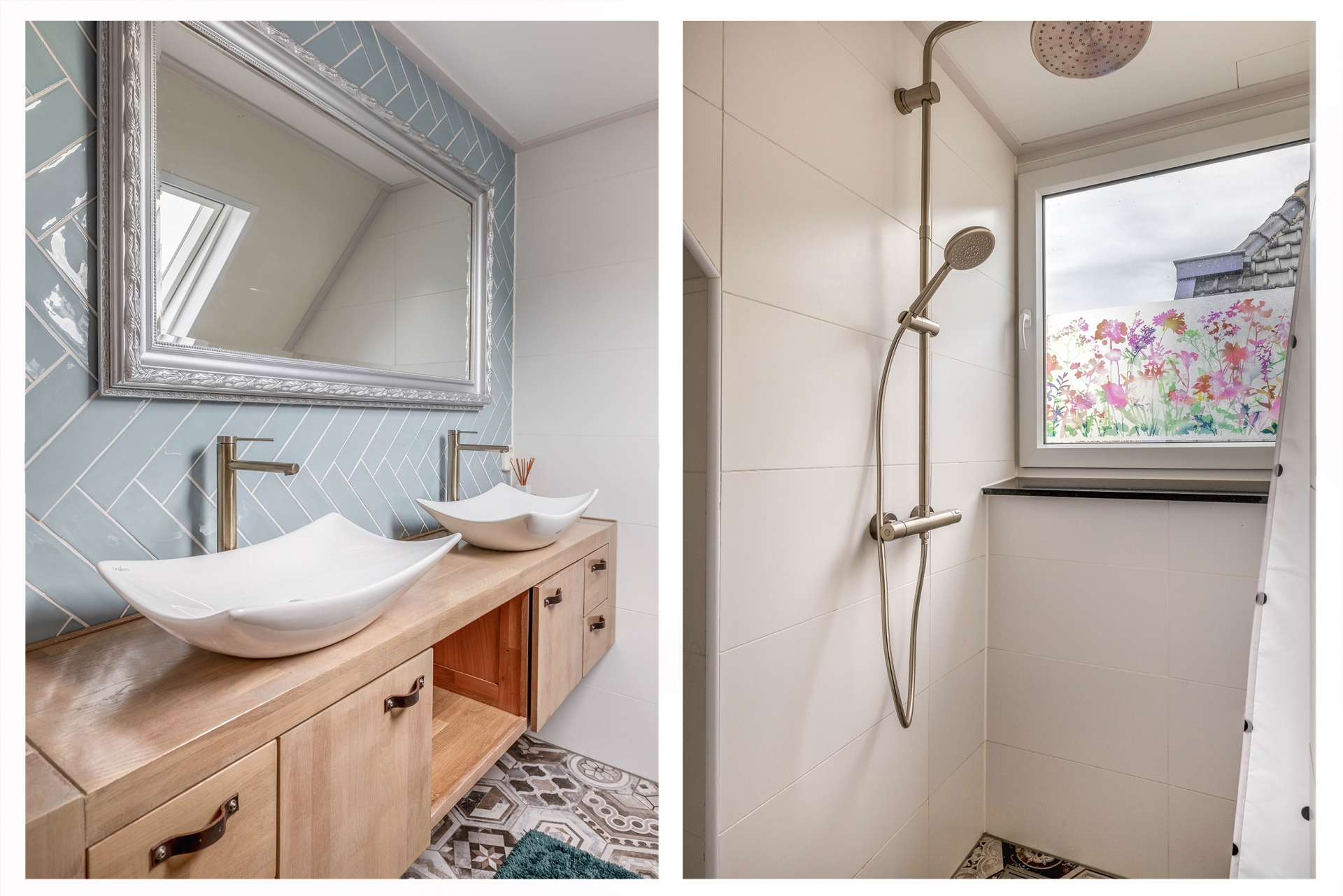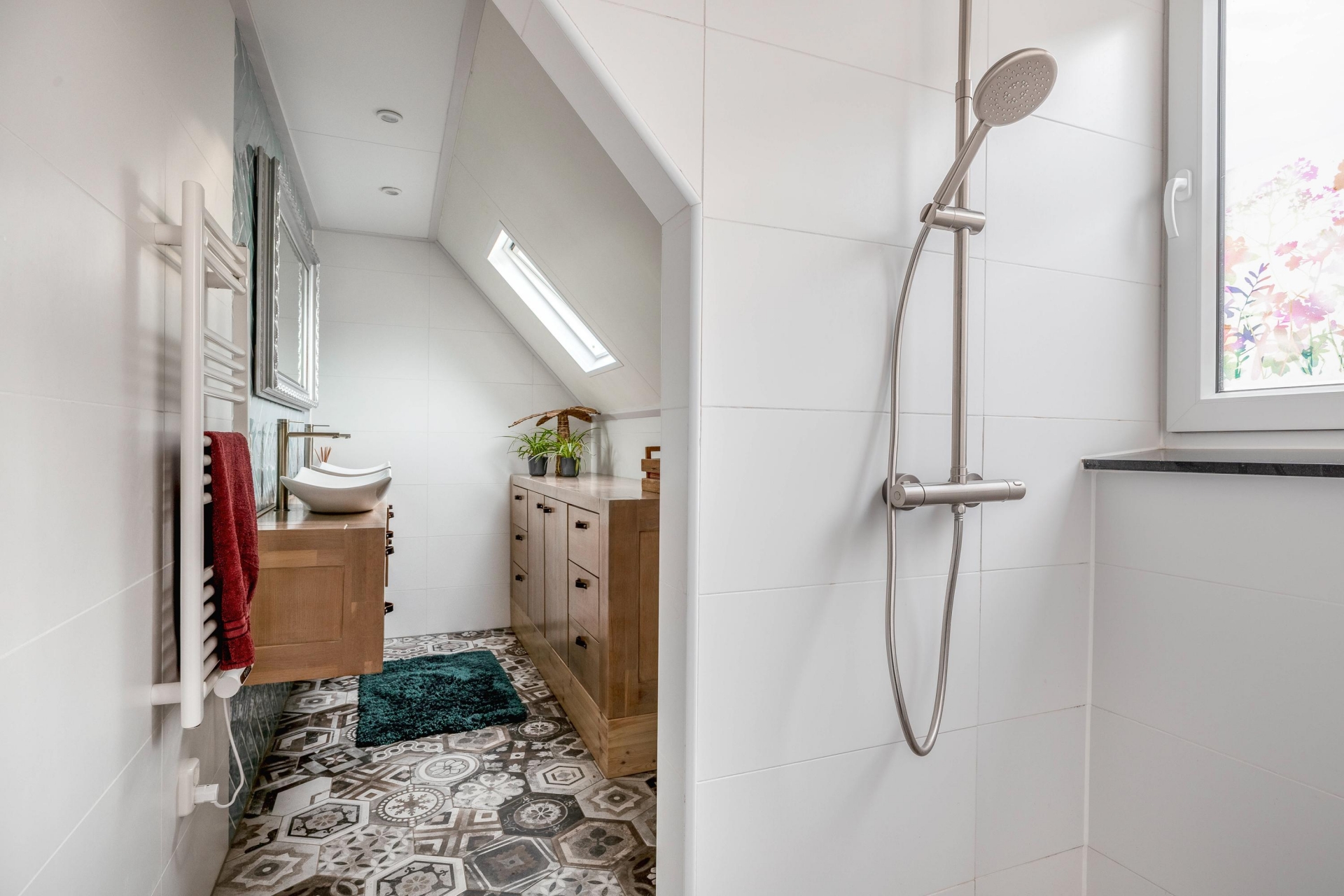 De badkamer is in 2023 vernieuwd en dat zie je direct terug. De ruimte is strak afgewerkt en voorzien van een inloopdouche en een modern wastafelmeubel. De combinatie van lichte kleuren en praktische indeling maakt dit een fijne ruimte om de dag te starten.