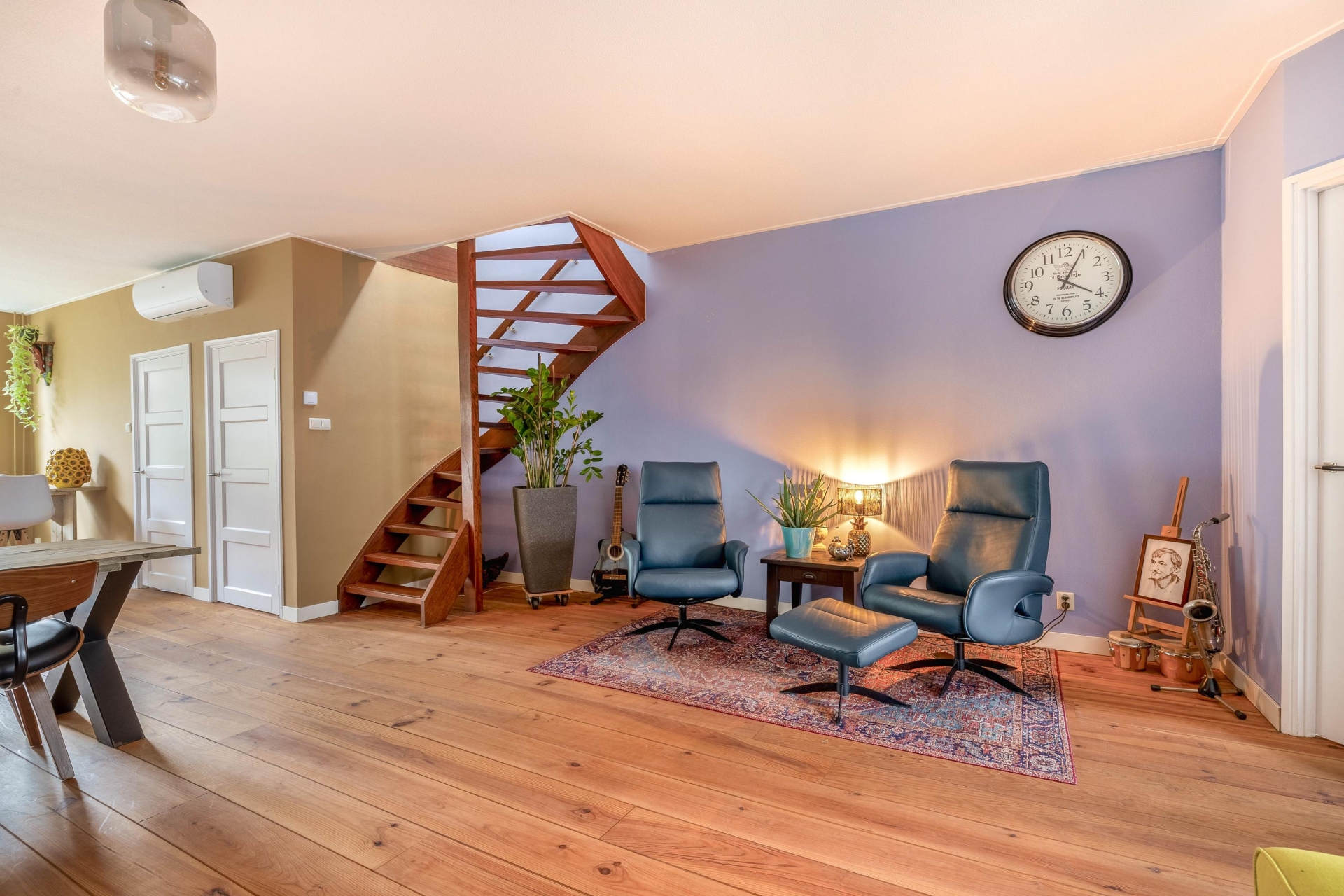 De woonkamer is een prettige en lichte ruimte met een warme uitstraling. De houten vloer en de grote raampartij zorgen voor een fijne sfeer en veel daglicht. Hier kun je eenvoudig een gezellige zithoek creëren met uitzicht naar buiten. De airco in de woonkamer zorgt daarnaast voor extra comfort tijdens warme dagen.