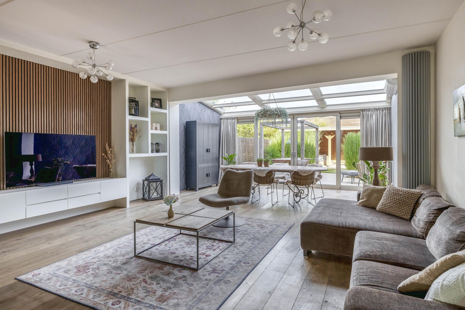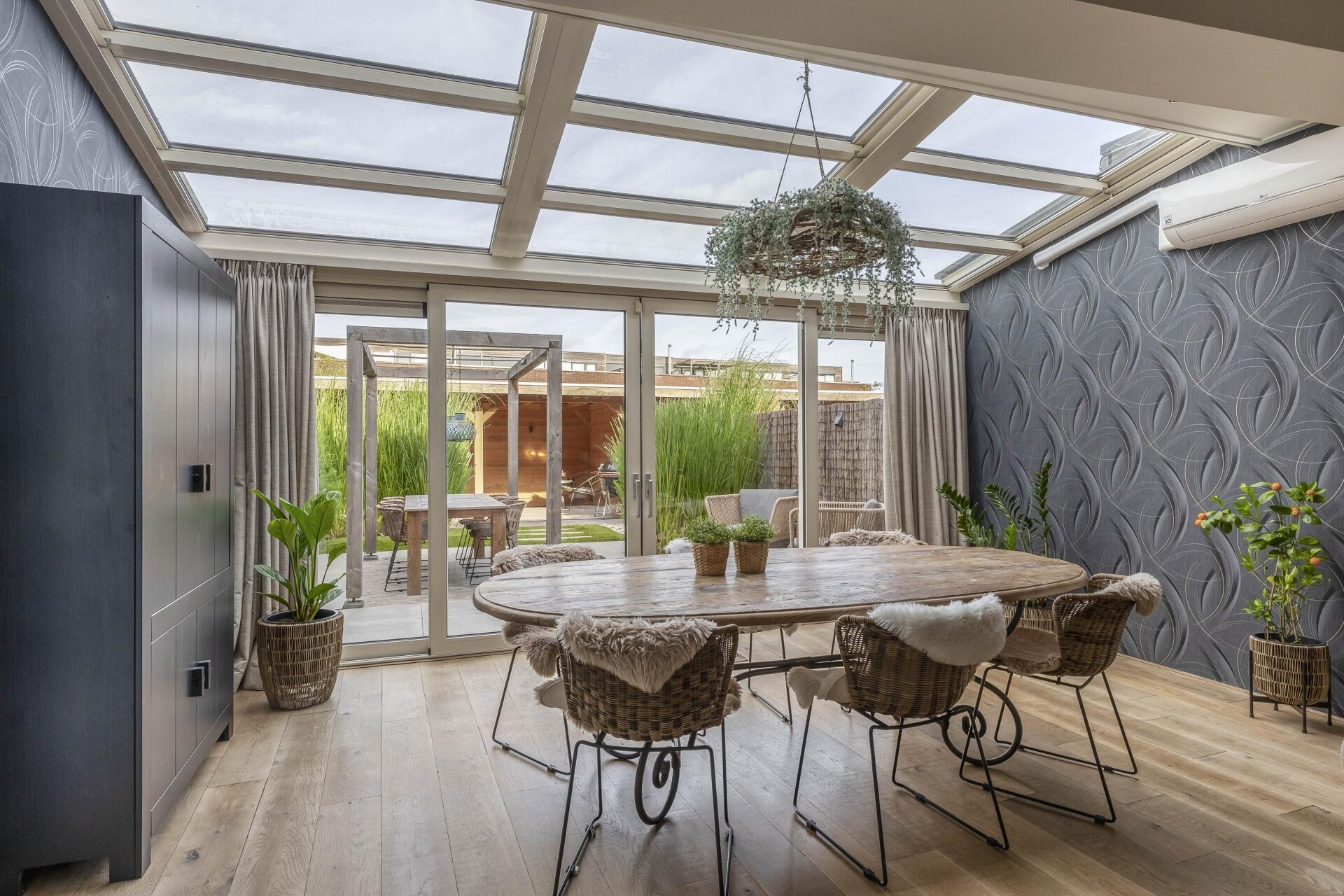 Met een woonoppervlakte van 160m² is dit huis verrassend ruim. Op de begane grond vind je een royale leefruimte met een fijne indeling en veel lichtinval. De tuingerichte woonkamer is voorzien van een prachtige serre, waarvan het dak elektrisch geopend kan worden. De brede schuifpui naar de fraai onder architectuur aangelegde achtertuin biedt genoeg plek voor meerdere zithoeken én een ruime eettafel. De open keuken aan de voorzijde is netjes en functioneel ingedeeld, met volop kastruimte en een prettig uitzicht op de voortuin en de rustige straat.