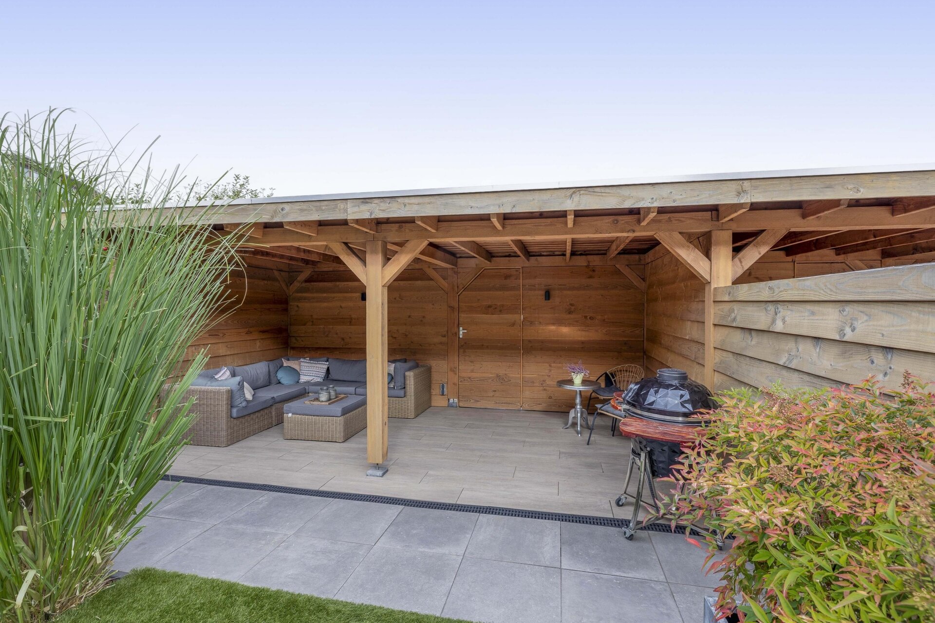 MODERNE TUIN MET OVERKAPPING EN PRIVÉPARKEERPLAATS
